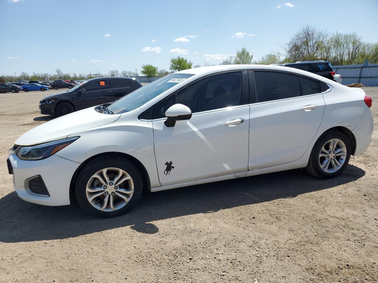 Fair2019 CHEVROLET CRUZE LT. This white sedan shows signs of vandalism. The car's exterior has visible damage, particularly to the body panels. The interior shows moderate damage as well. The wheels and lights appear to be intact. The glasses have tinted films. The car is drivable.