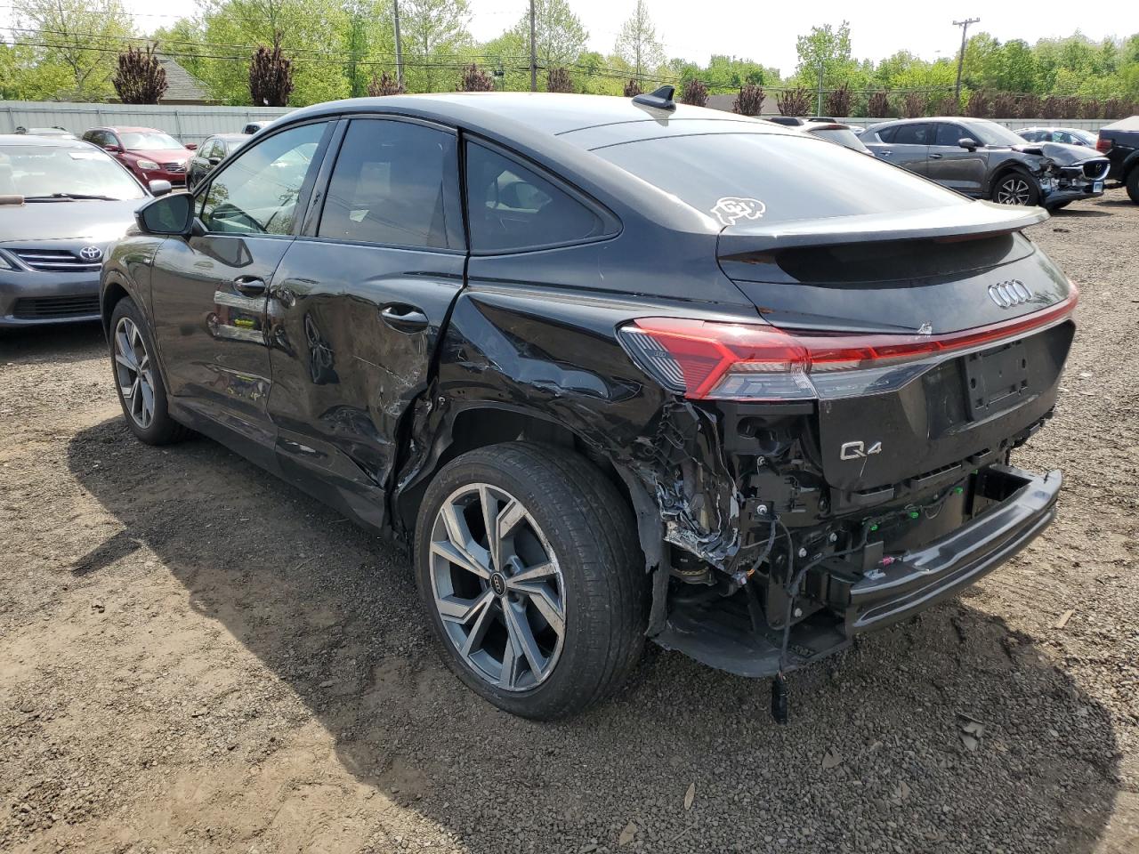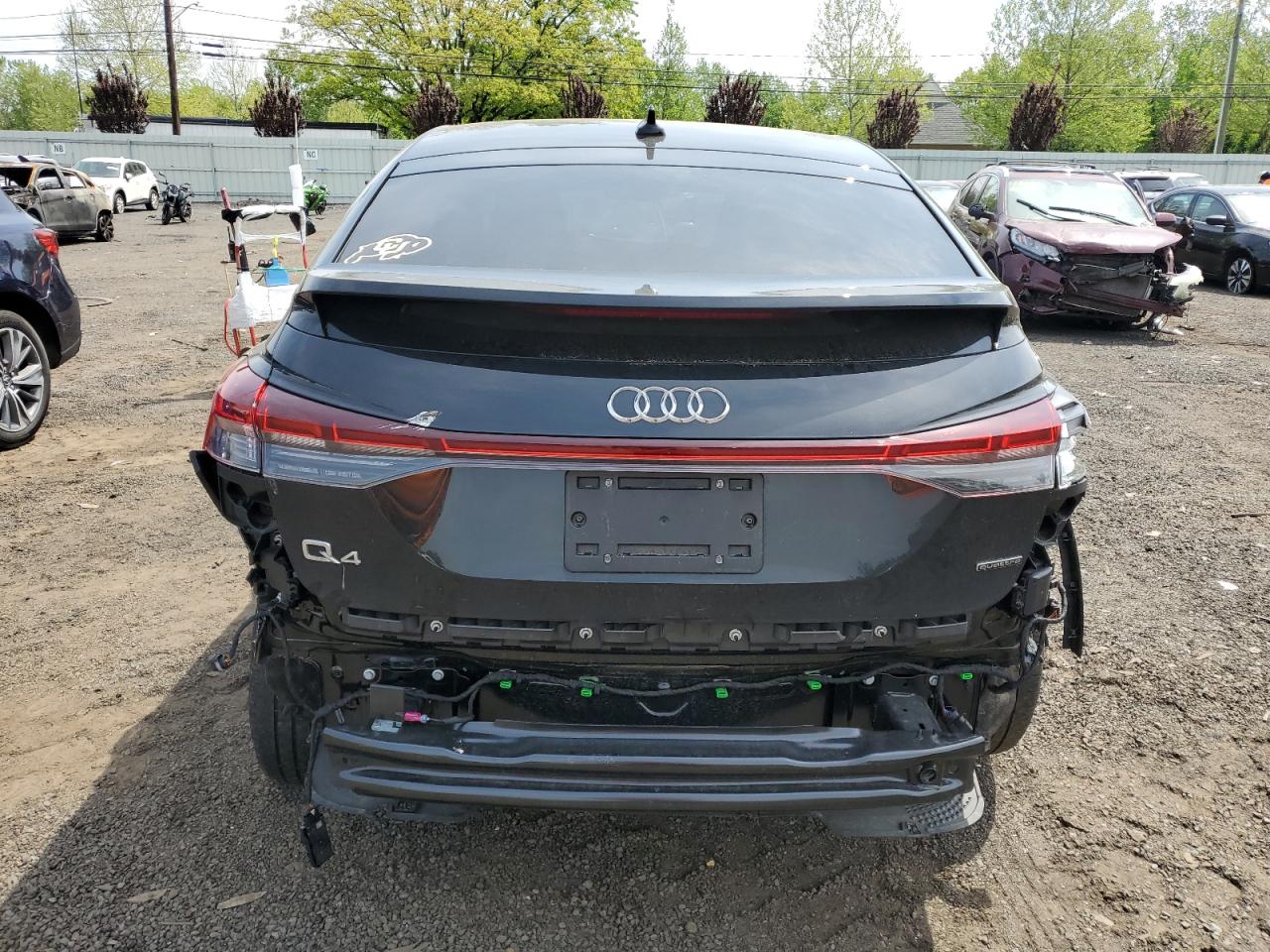 FairThe black 2023 Audi Q4 e-tron shows significant damage primarily to the side, indicating a body damage category. The car starts, but extensive body panel damage impacts its drivability. Despite this, the interior appears to be in good condition. The visible damage includes severe side damage, impacting the door, quarter panel, and possibly the rear suspension. The front end appears relatively intact, with no obvious damage to the lights or wheels. Interior damage is not apparent, the airbags seems to be untouched, with the dashboard and seats in the interior in good shape. The overall condition of the vehicle is fair, suggesting a need for substantial body repair. The summary includes key search terms such as Audi Q4 e-tron, 2023, body damage, side damage, repairable, and salvage to optimize search results.