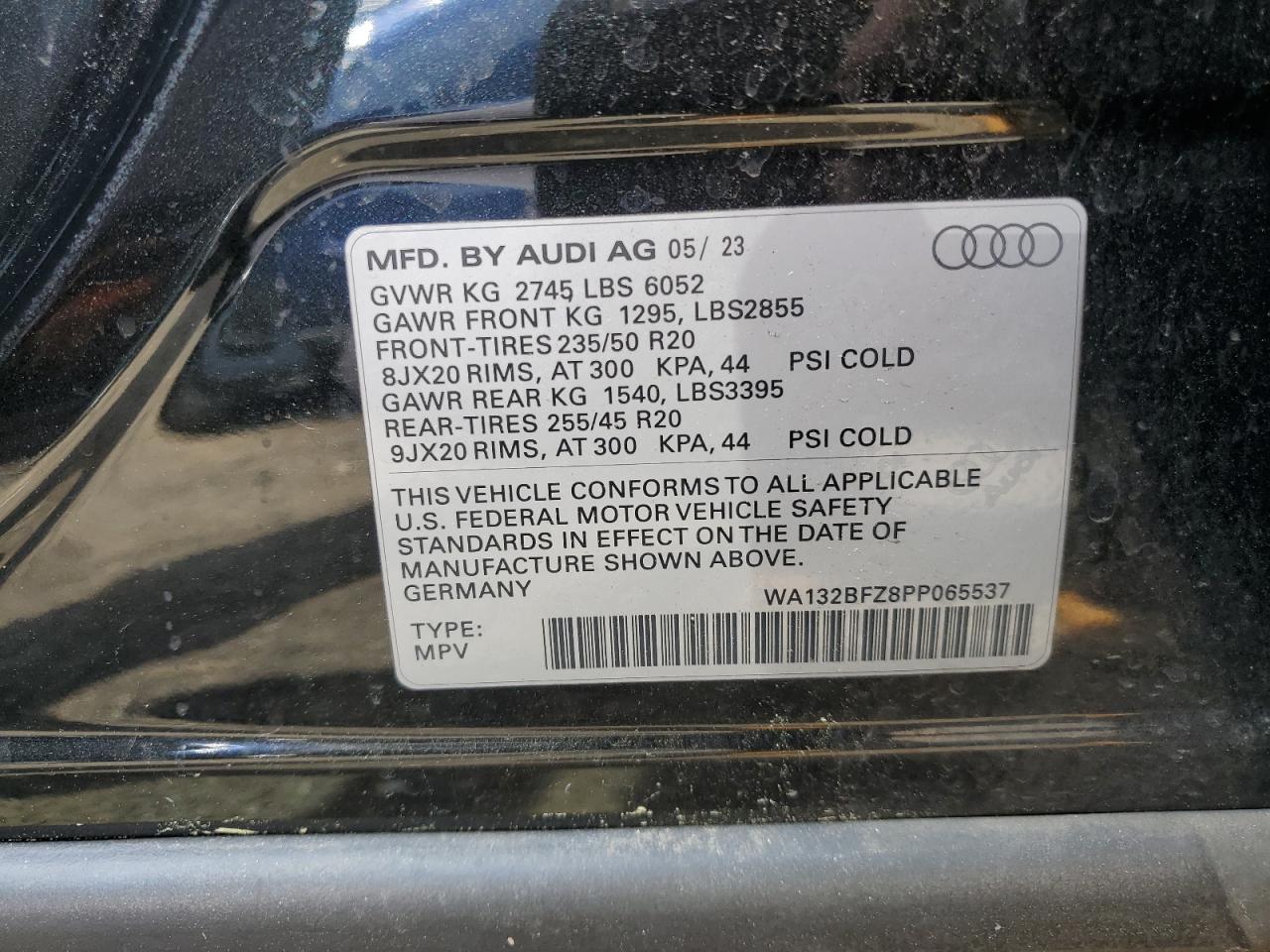 WA132BFZ8PP065537Final Bid