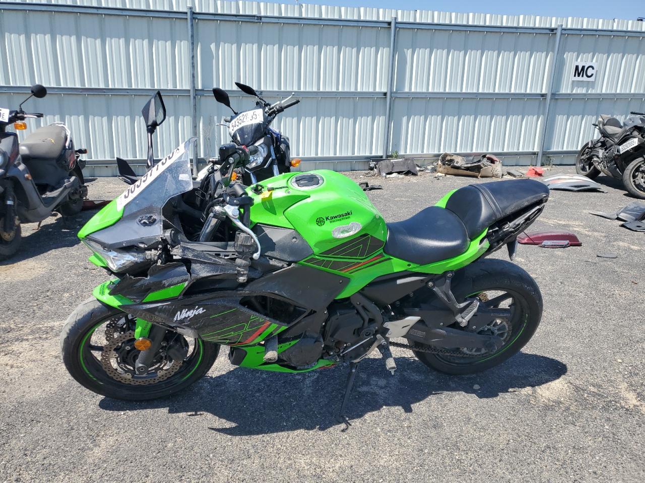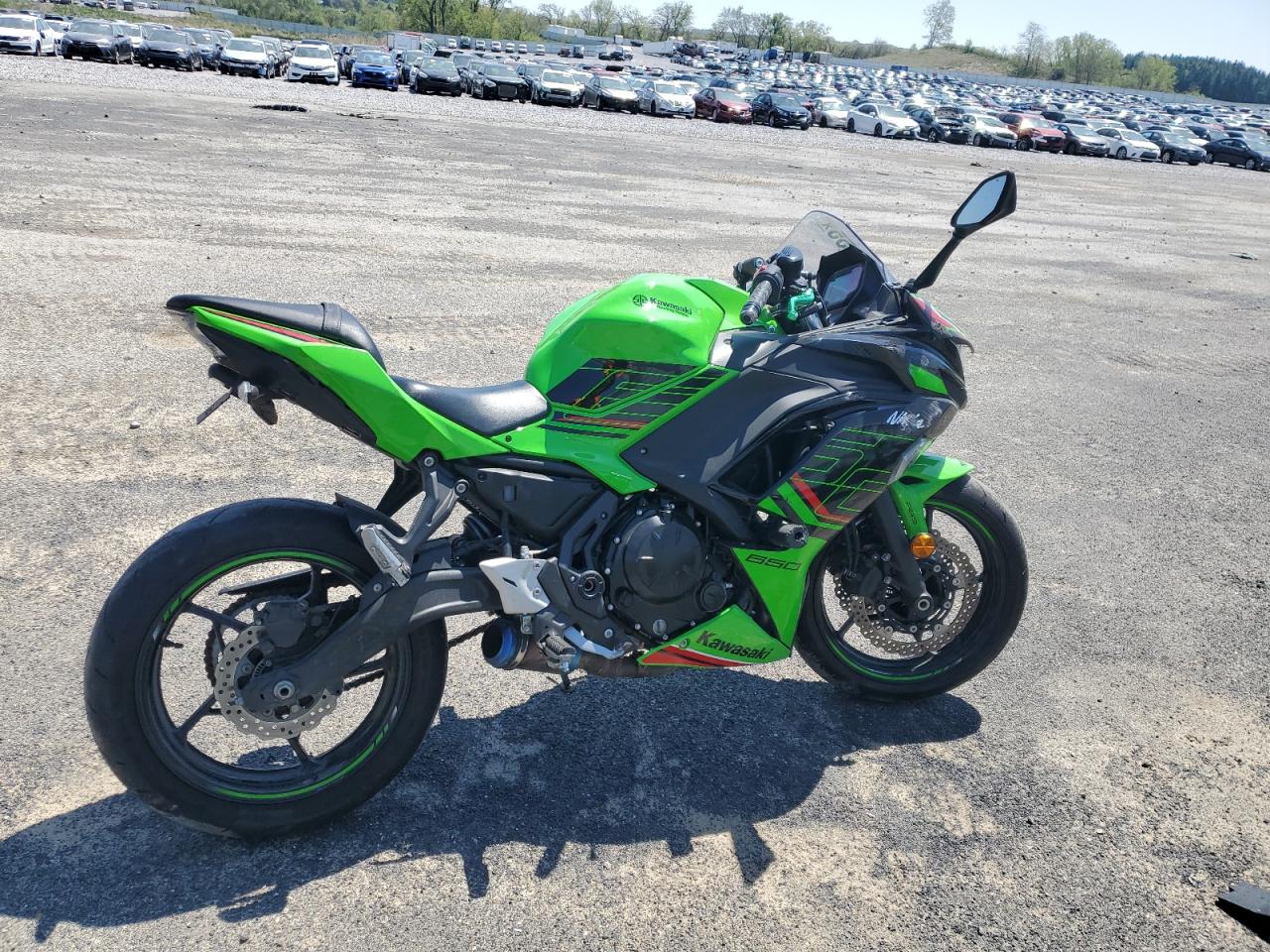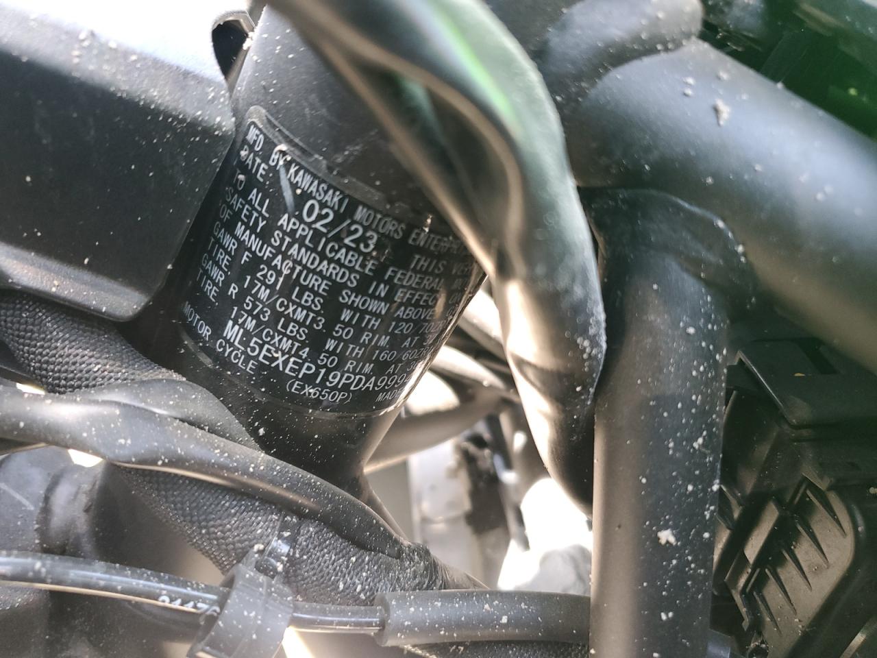 FairThe KAWASAKI EX650 P 2023 is a green motorcycle with visible damage to the body panels. The vehicle shows signs of impact, specifically affecting the exterior. The interior condition is fair, with moderate wear and tear. The overall state is fair, indicating the need for repairs. The vehicle's lights and glass components appear to be in fair condition. The damage is primarily body-related, indicating cosmetic and structural issues. The bike is drivable but requires considerable repair.