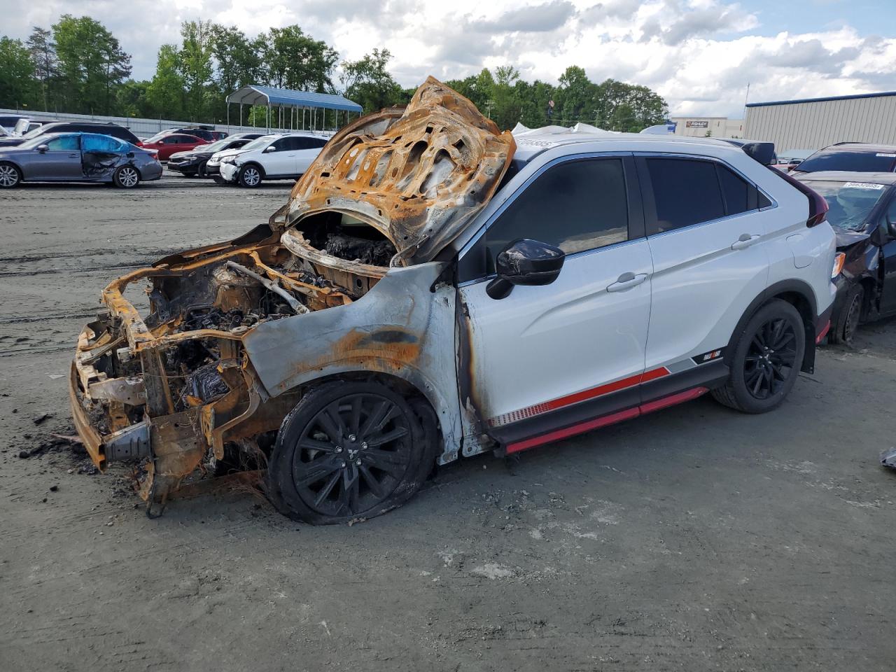 PoorThe 2023 Mitsubishi Eclipse Cross has sustained extensive fire damage. The primary damage is a severe engine burn, with the front end of the vehicle completely charred and structural components compromised. The white paint is heavily damaged, and the vehicle shows signs of intense heat exposure. Wheels appear intact, but likely damaged, and the glass is either missing or severely damaged. Interior damage includes burnt seats, melted dashboard components, and a severely damaged steering wheel and airbags. The car is not drivable and requires significant repairs.
