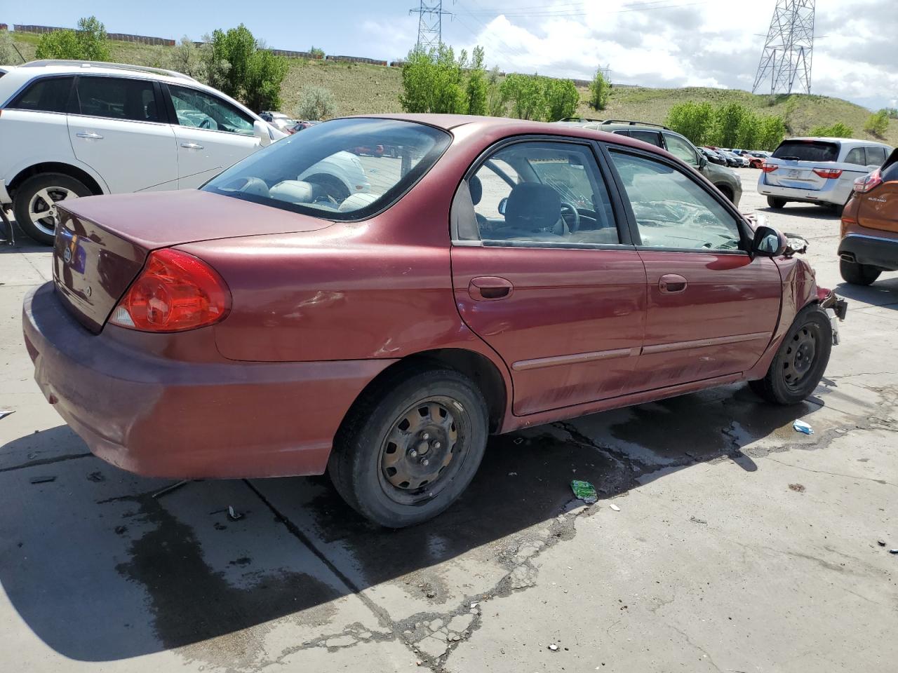 PoorThe images depict a severely damaged 2003 KIA SPECTRA. The primary damage is to the front end, with significant impact causing extensive body panel damage and possibly frame damage. The secondary damage is to the rear end. The vehicle is red. The wheels are visibly present but the condition is unknown. The lights and glasses are damaged. Interior photos show damage to the dashboard, airbags deployed, and general wear and tear. The car is unlikely to be drivable.