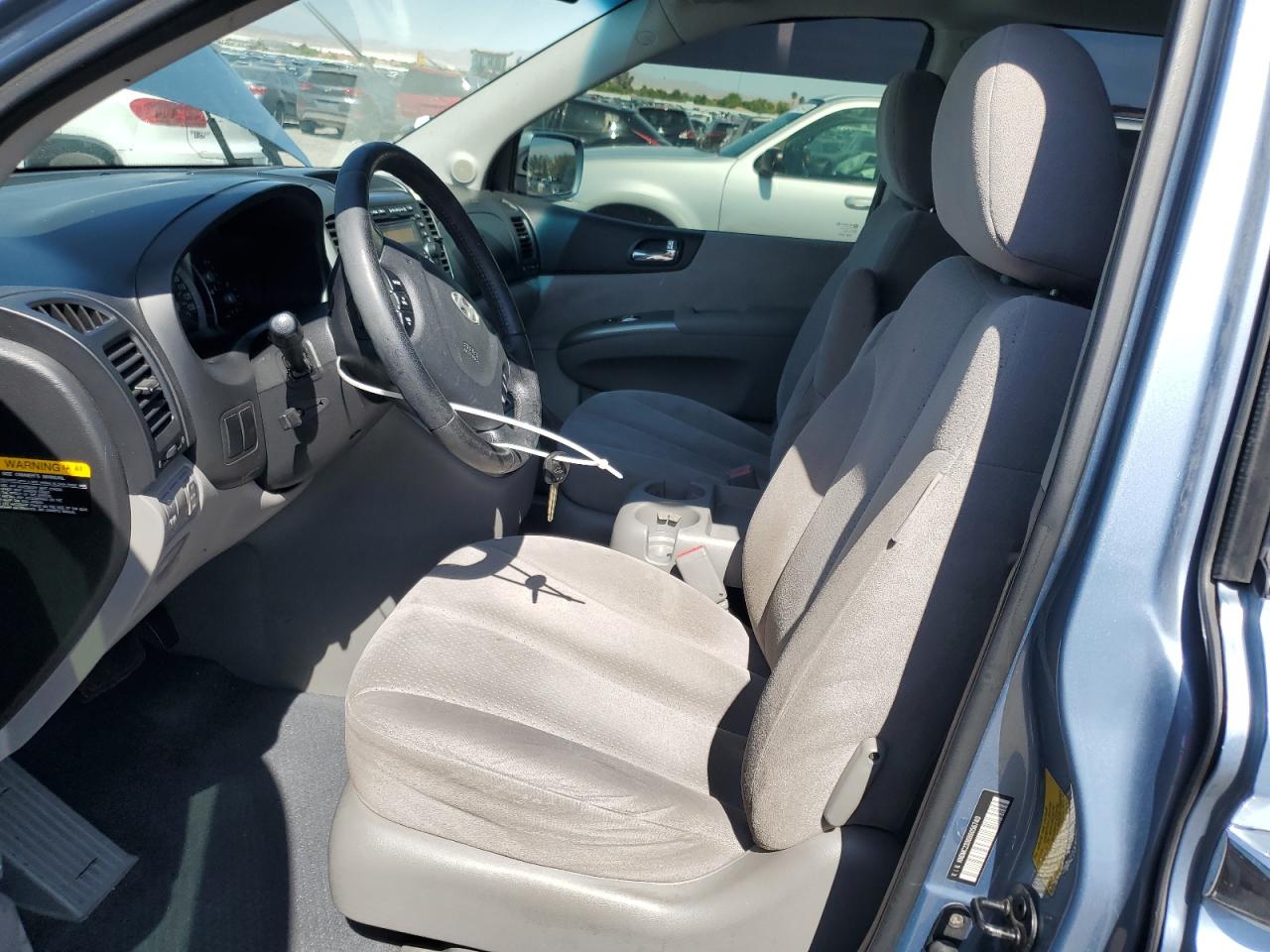 FairThe 2008 Hyundai Entourage is a blue minivan with front and rear end damage. The front end has significant damage, with the bumper and front body panels missing. The rear end shows moderate damage. The car is drivable, as indicated by the "Run & Drive Verified" status, but needs repairs. The wheels appear to be in good condition. The interior shows some wear and tear. The vehicle's damage primarily affects the body panels.