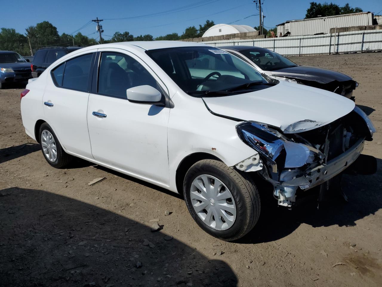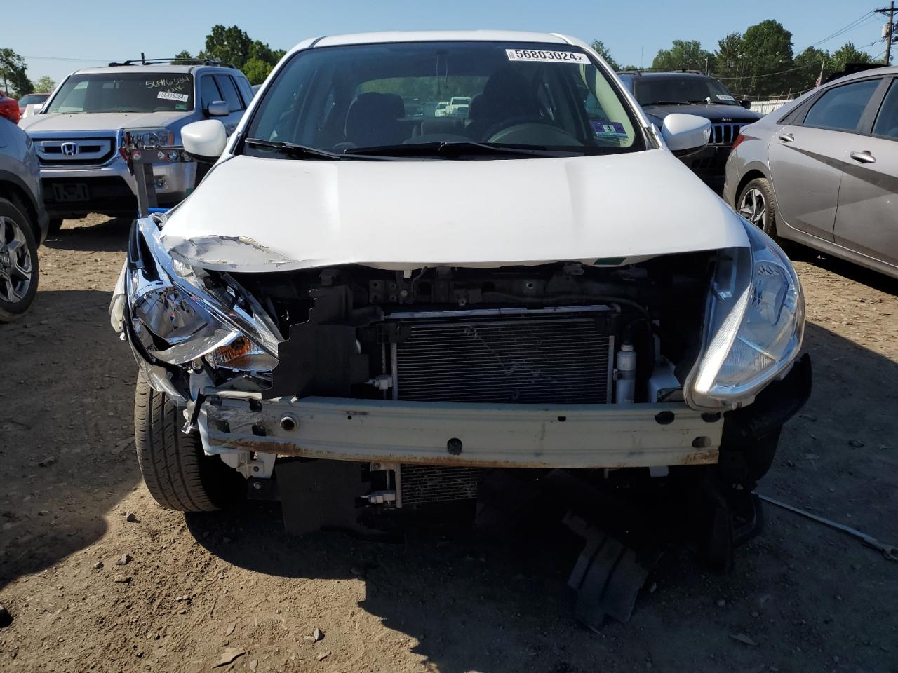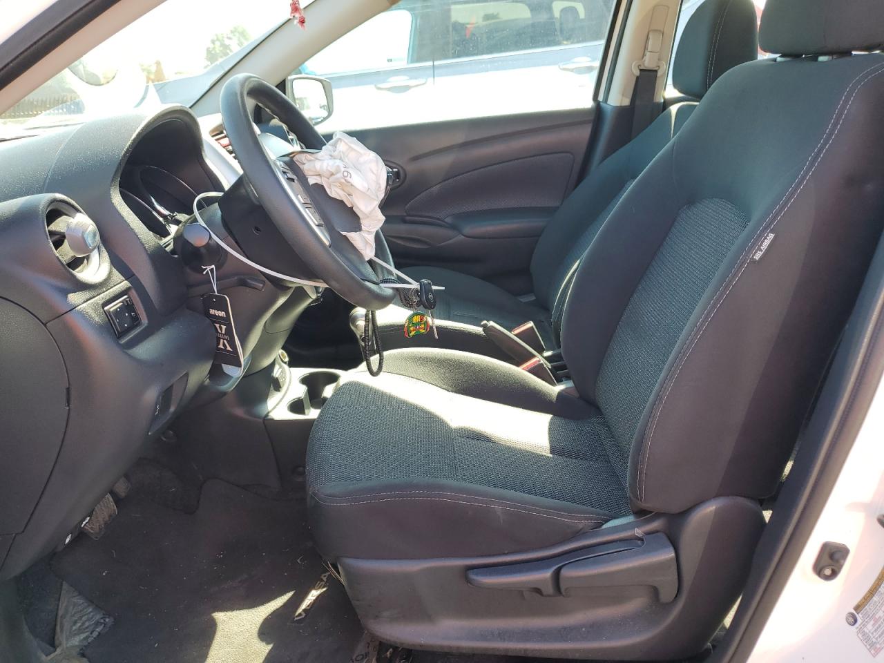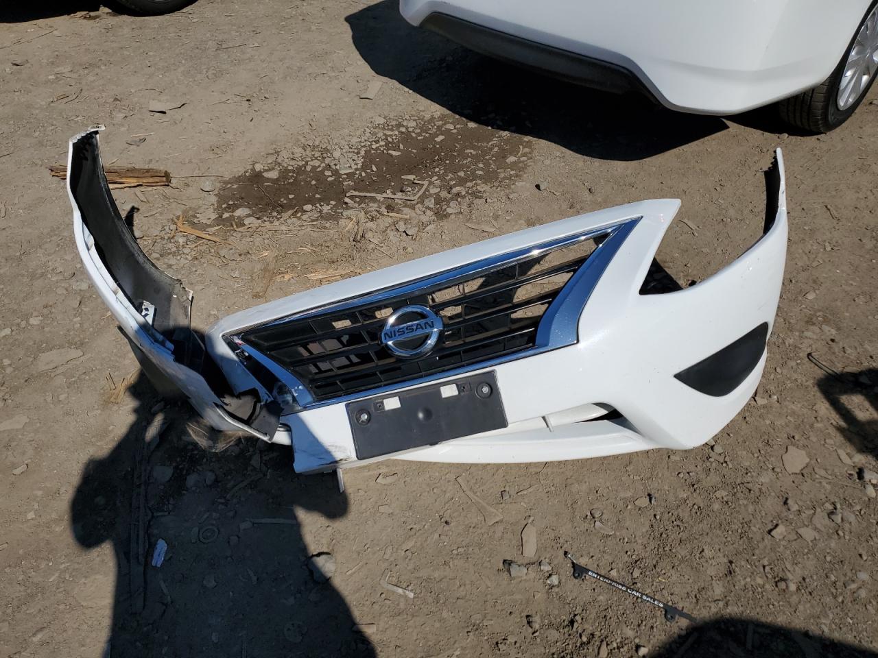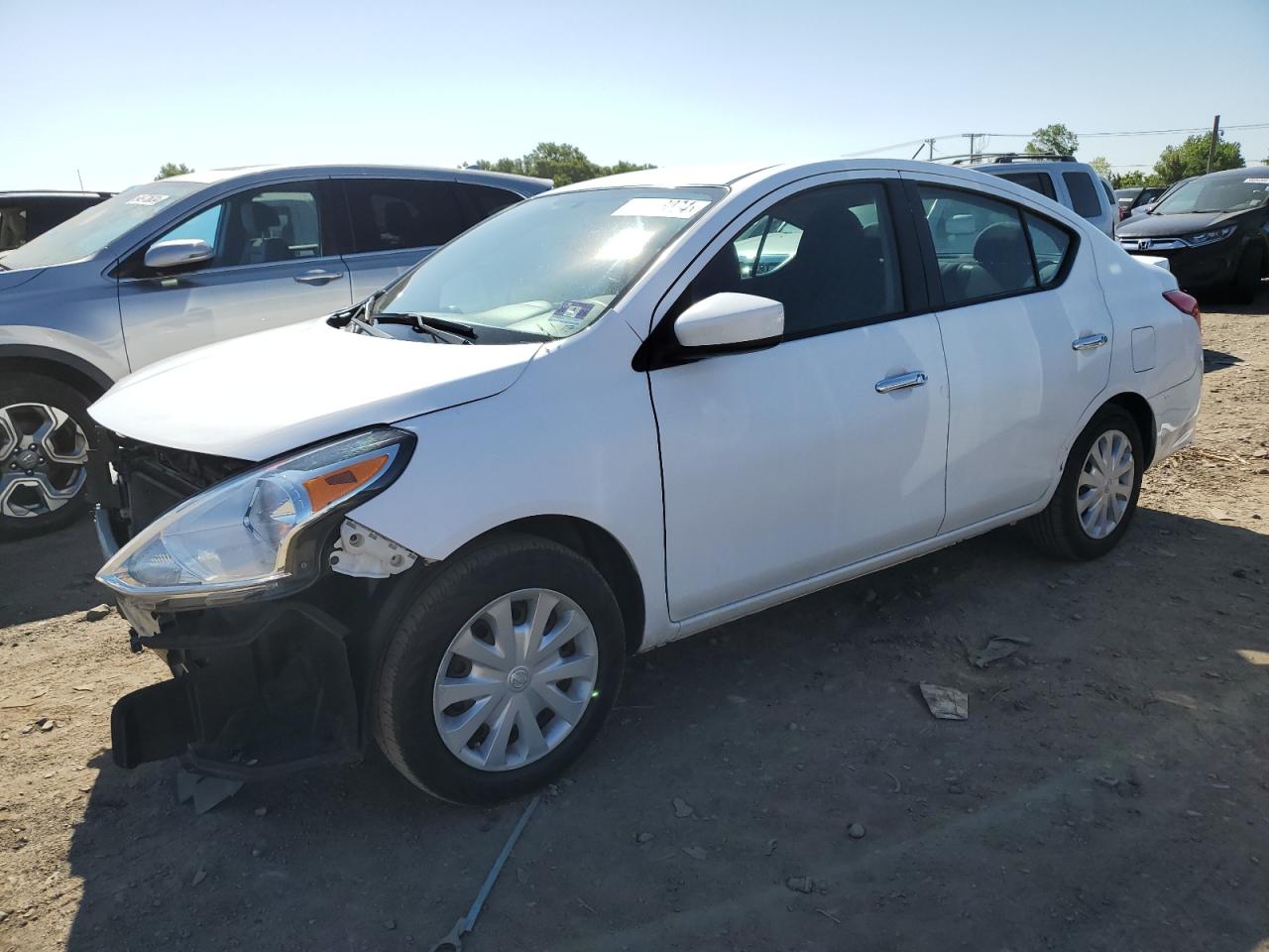 FairThis white 2019 Nissan Versa S has sustained significant front-end damage. The front end is severely damaged, with the bumper, hood, and front lights affected. The vehicle shows no damage.