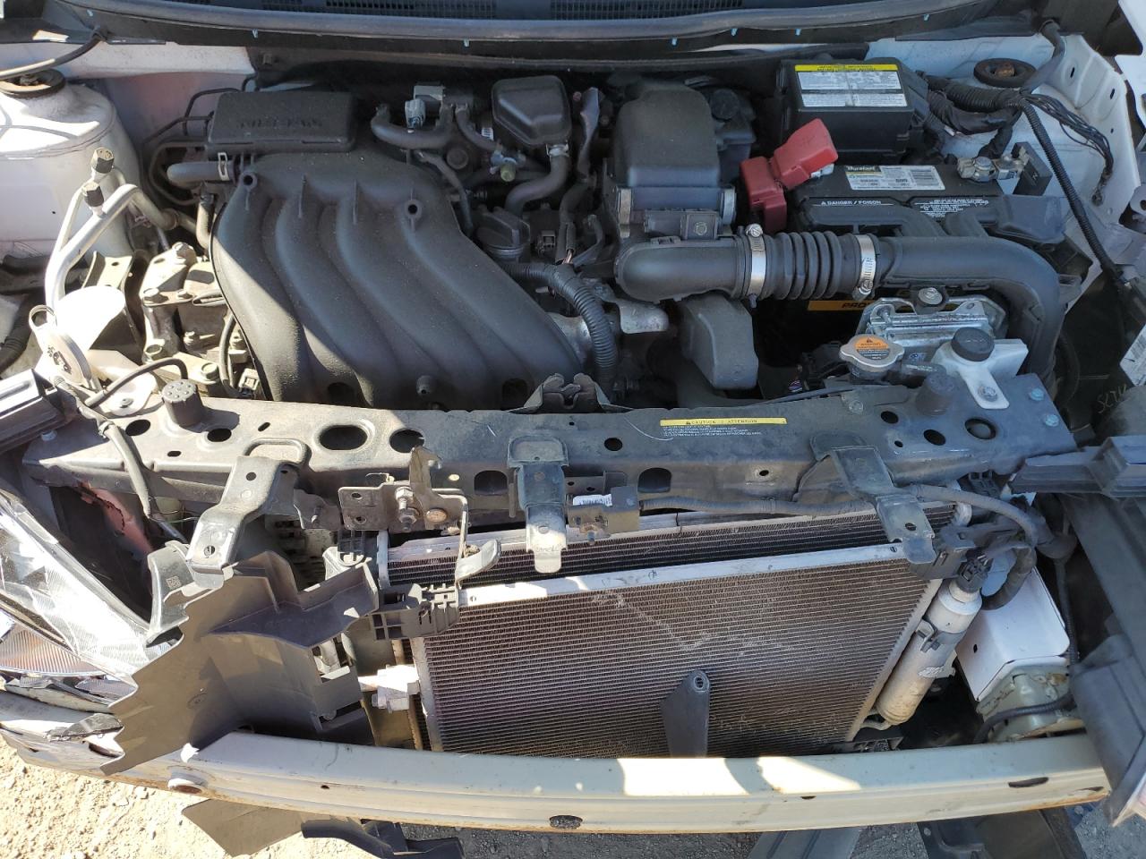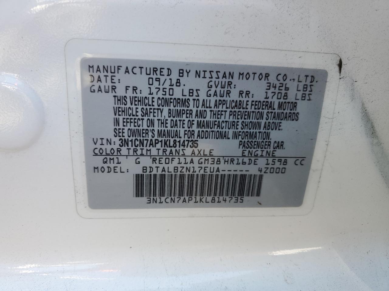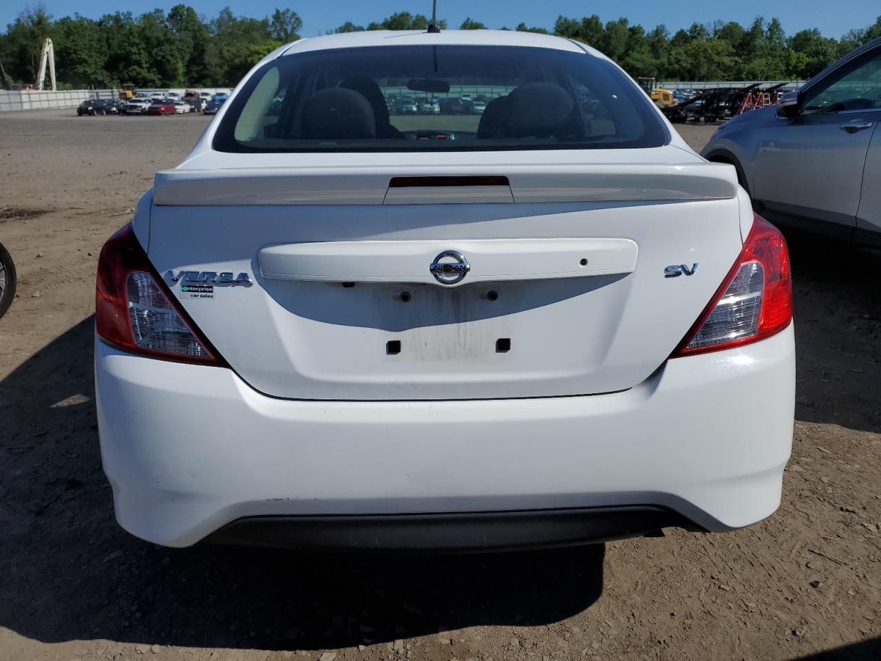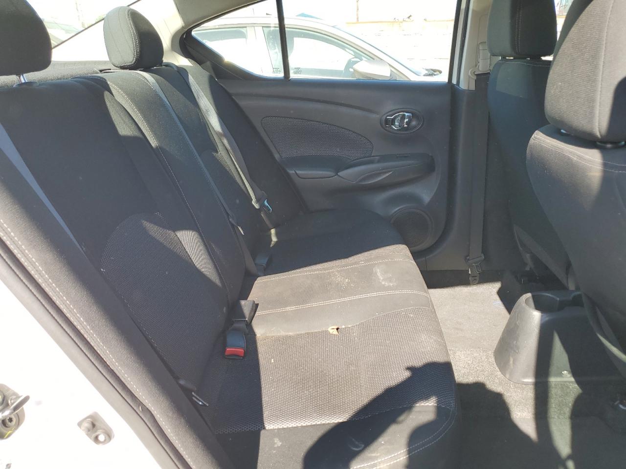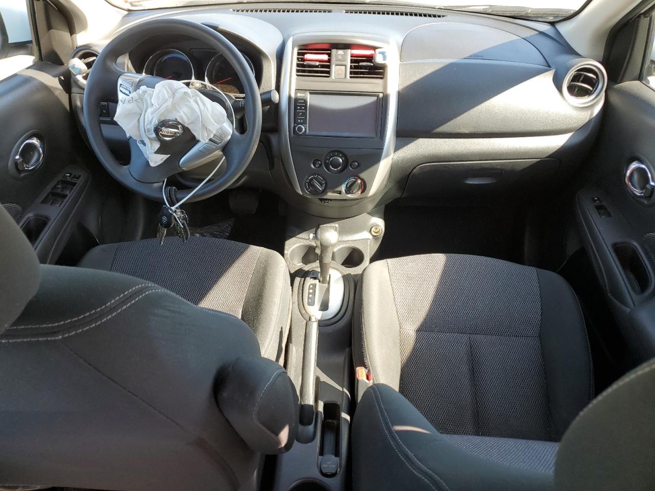 FairThis white 2019 Nissan Versa S has sustained significant front-end damage. The front end is severely damaged, with the bumper, hood, and front lights affected. The vehicle shows no damage.