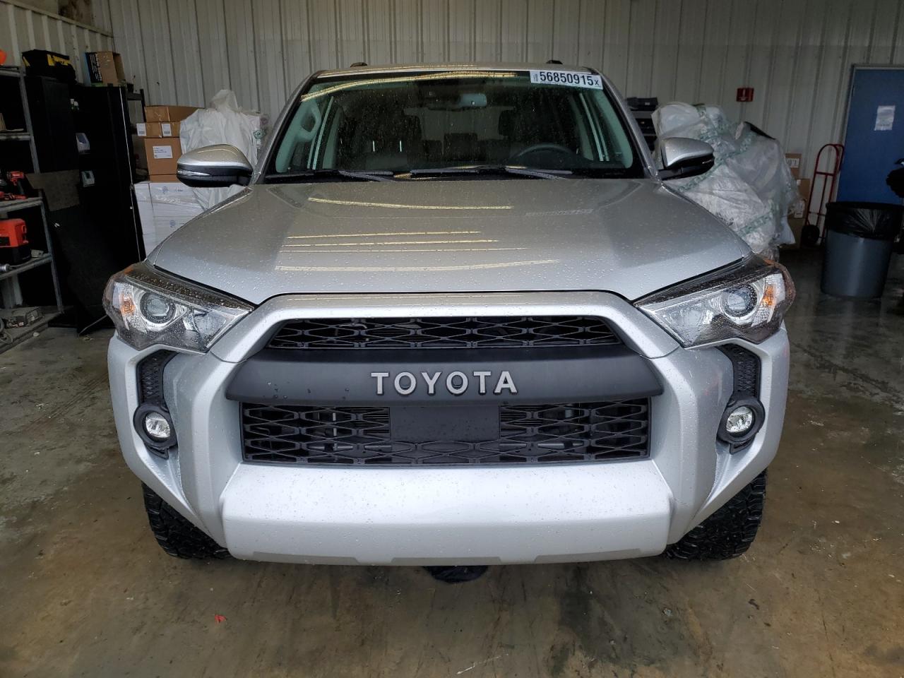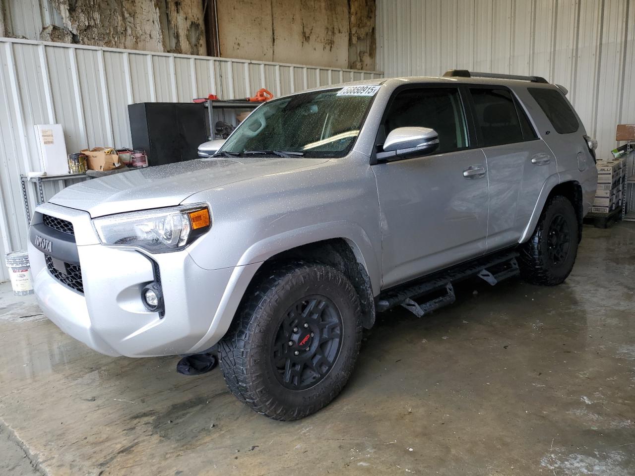 FairSilver 2022 TOYOTA 4RUNNER SR with side body damage, verified as Run & Drive. Damage primarily to the side panels. Interior shows minimal wear. Wheels and lights appear intact. The vehicle's glass is undamaged. The damage is visible, indicating body issues.
