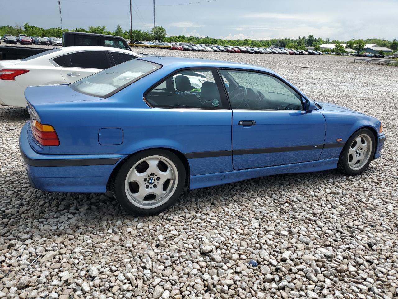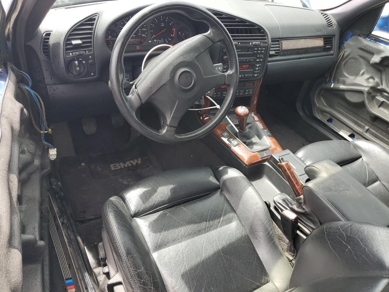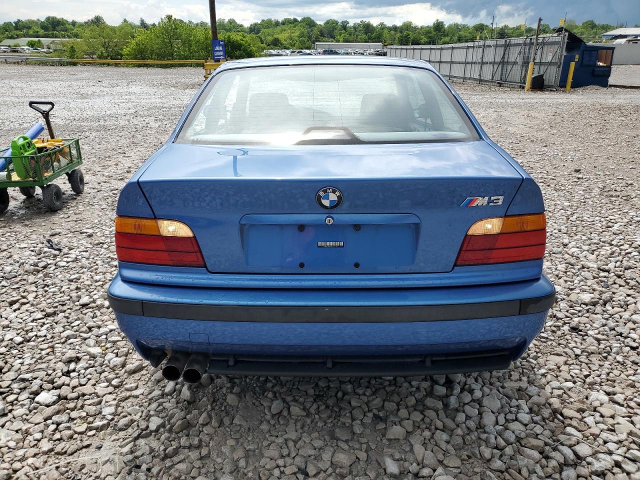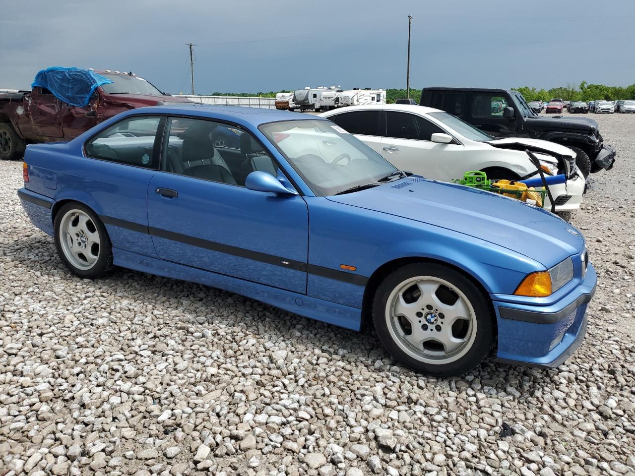FairThe 1997 BMW M3, in a striking blue, exhibits significant damage to the side of the body. Despite the damage, the car is reported to be 'Run & Drive Verified'. The wheels and lights appear to be intact, but the car shows signs of wear and tear. The interior has damage, and it is not possible to determine the status of the airbags from the provided images.