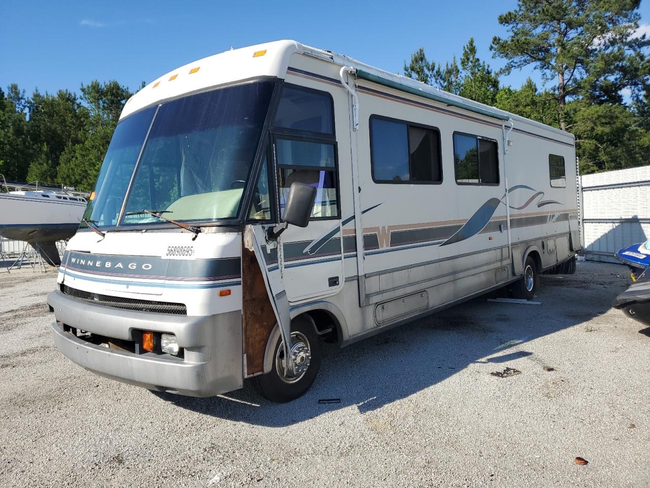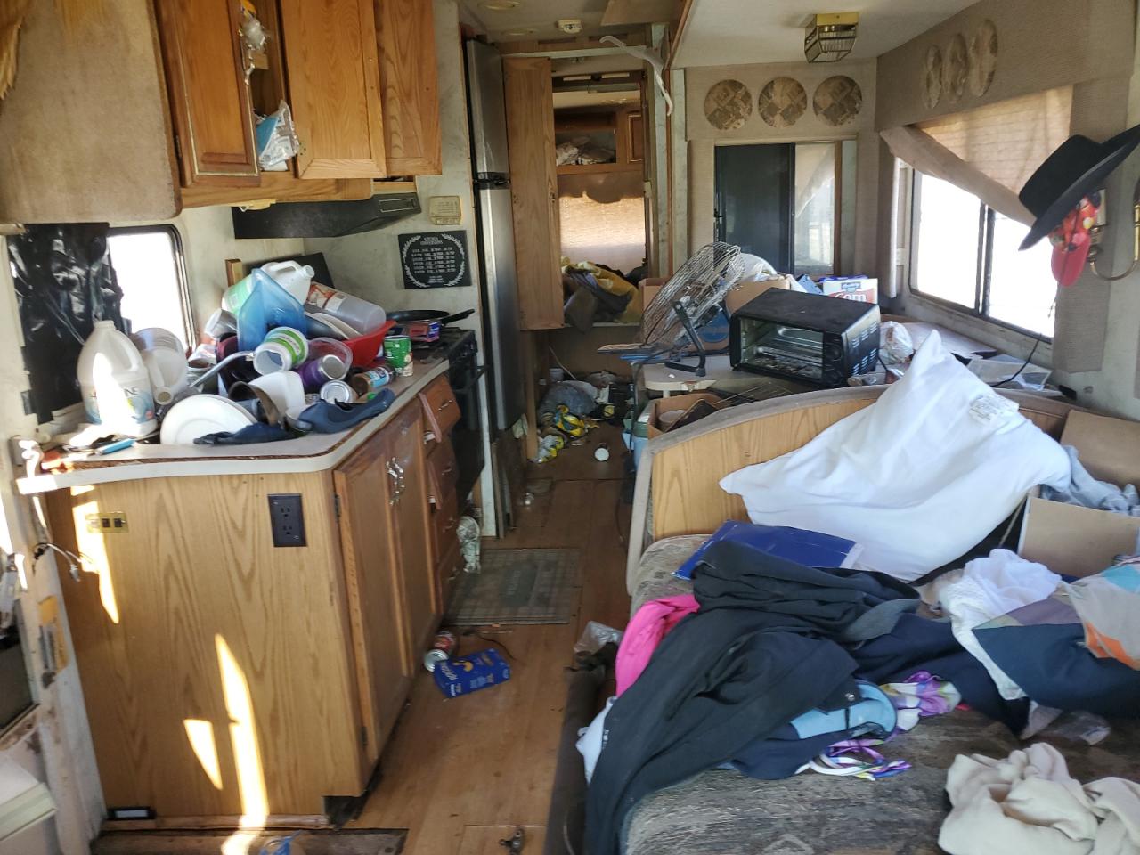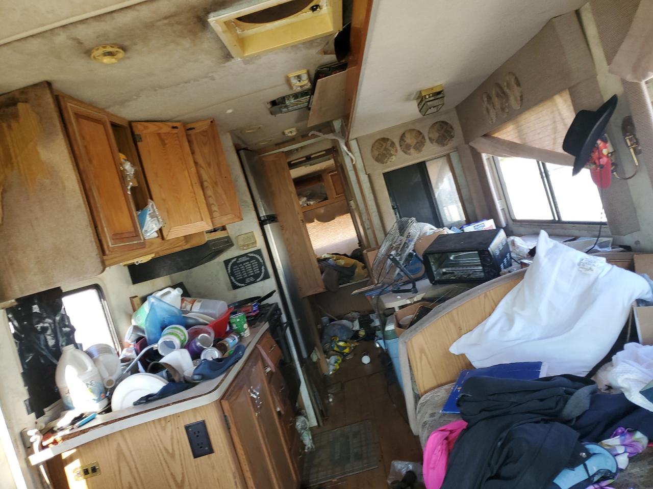 FairThis is a 1996 FORD F530 SUPER, with visible damage. The exterior shows moderate damage including BIOHAZARD/CHEMICAL contamination and MINOR DENT/SCRATCHES. The white body of the RV exhibits signs of wear. Interior damage is also evident. The wheels and glasses appear to be intact. The vehicle's condition suggests it may require repairs.