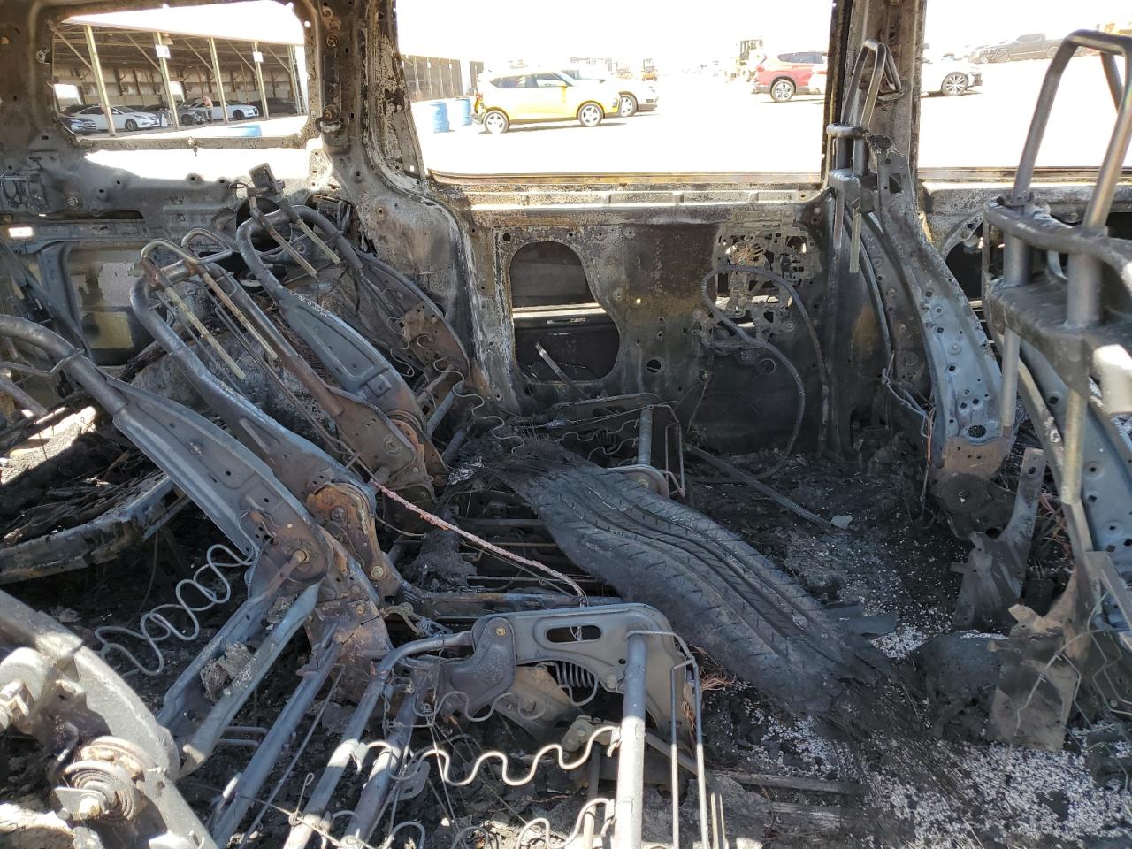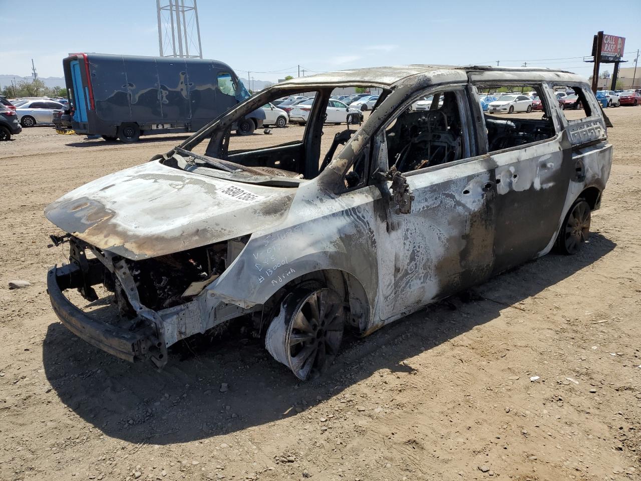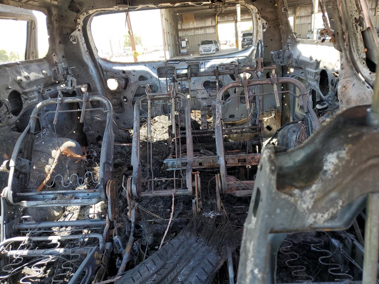 PoorThe 2016 KIA SEDONA LX, primarily damaged by fire, presents a significant loss. The vehicle is extensively burned, with visible damage to the body panels, engine, and interior. The black exterior is heavily charred. The wheels are visibly damaged. The lights and glasses are missing or destroyed. The interior damage includes the dashboard, seats, and potential airbag deployment. This car is not drivable.