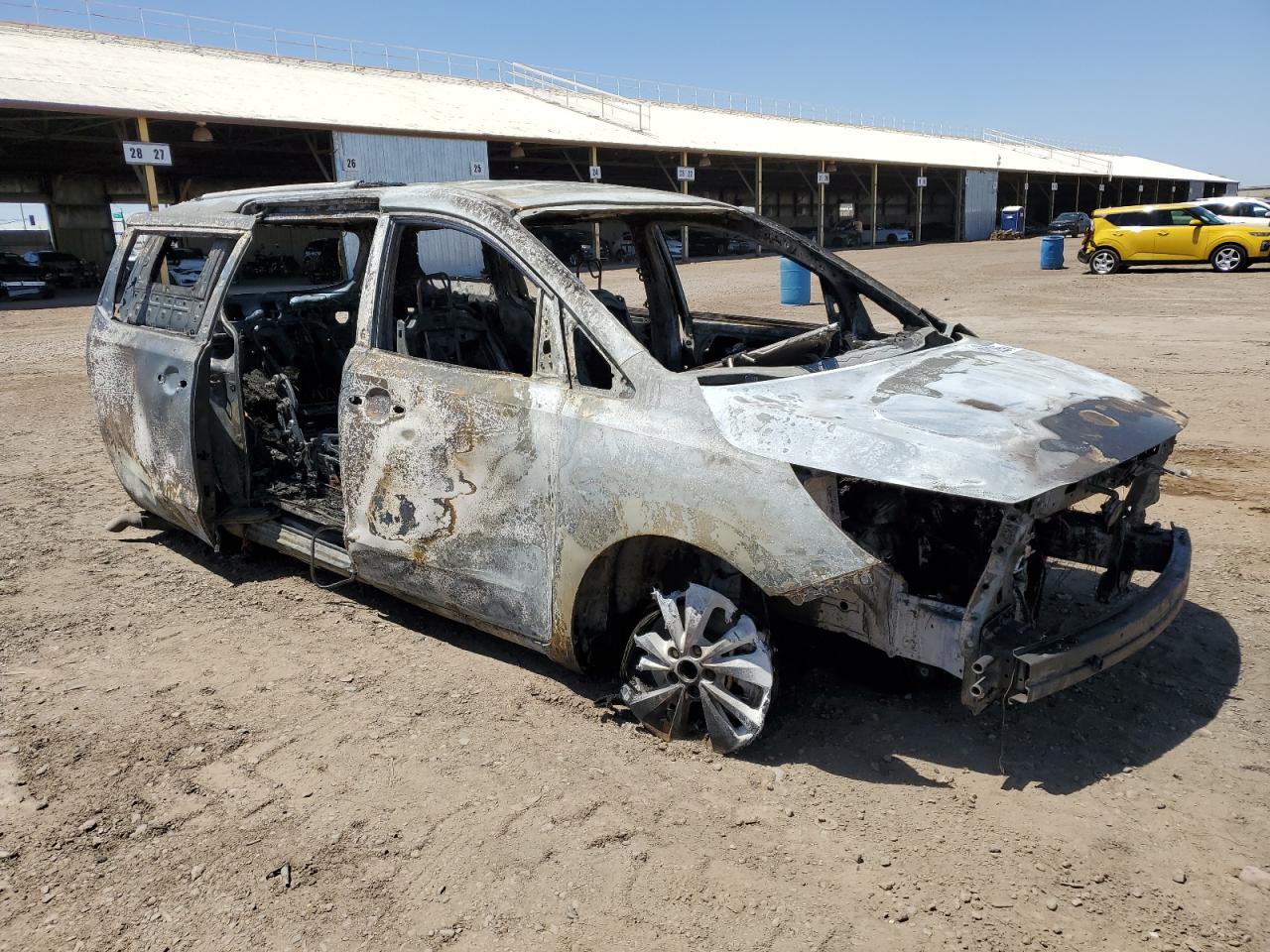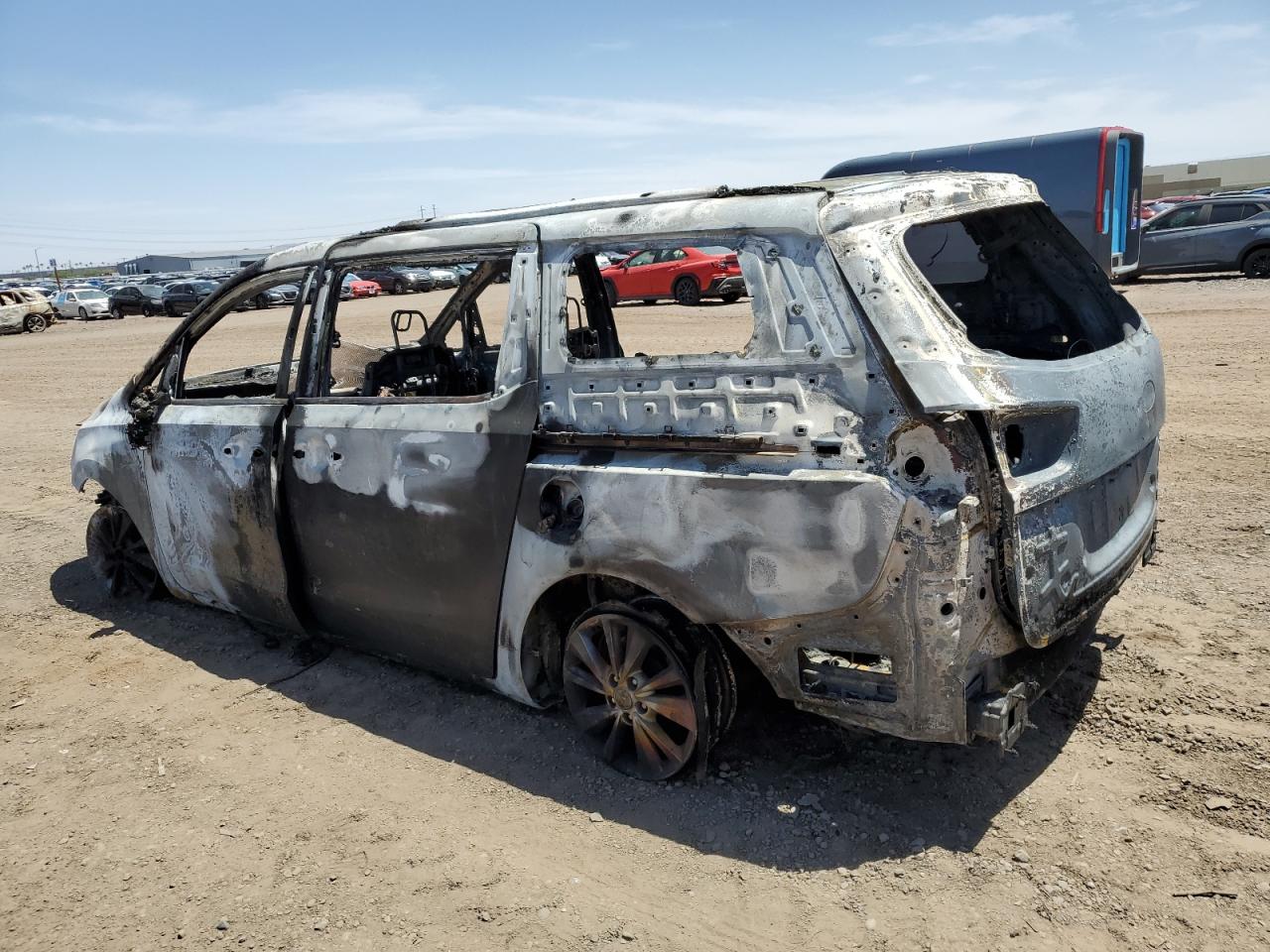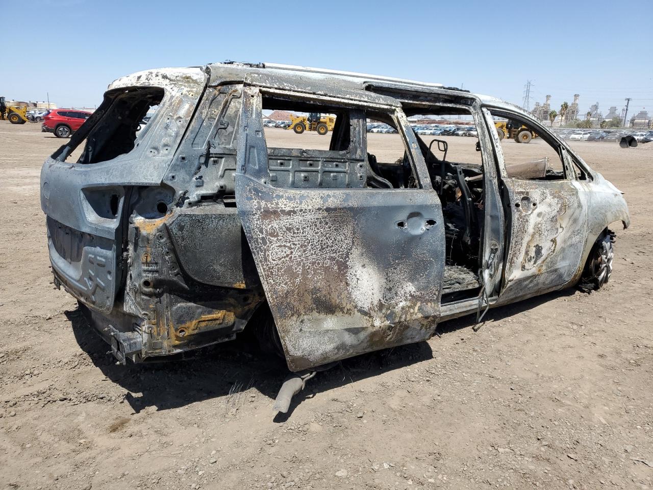 PoorThe 2016 KIA SEDONA LX, primarily damaged by fire, presents a significant loss. The vehicle is extensively burned, with visible damage to the body panels, engine, and interior. The black exterior is heavily charred. The wheels are visibly damaged. The lights and glasses are missing or destroyed. The interior damage includes the dashboard, seats, and potential airbag deployment. This car is not drivable.