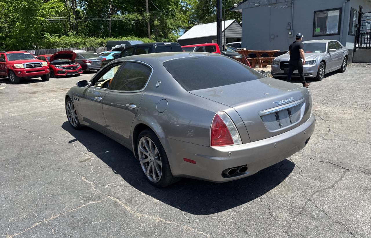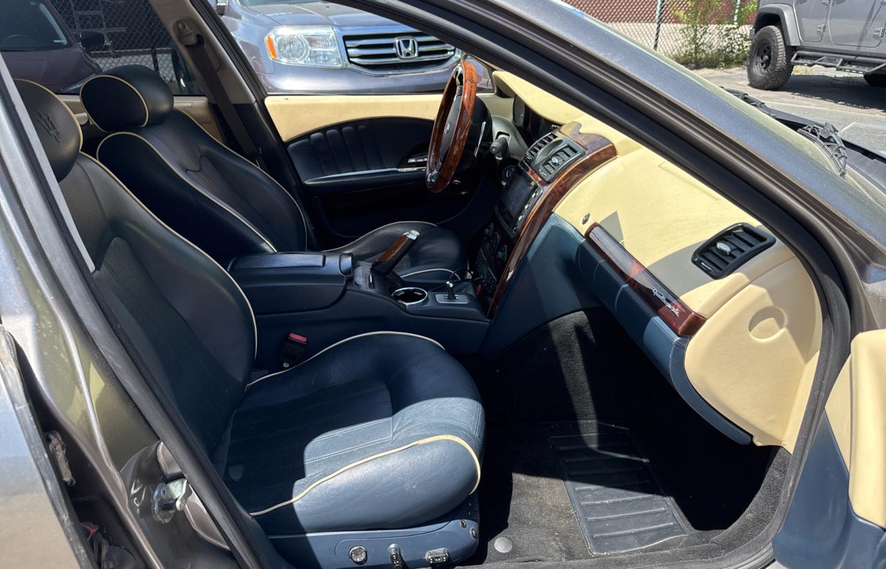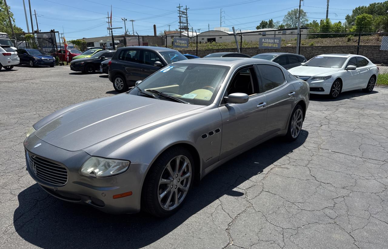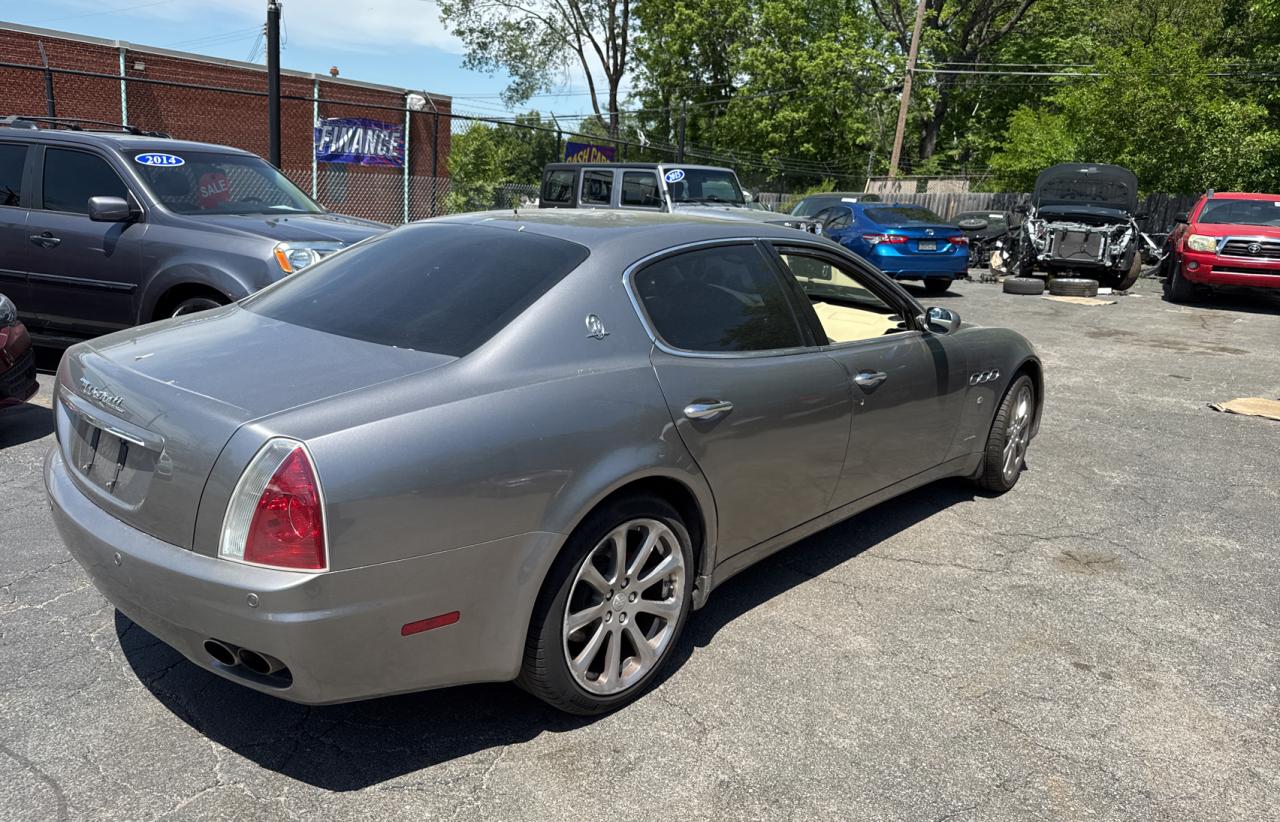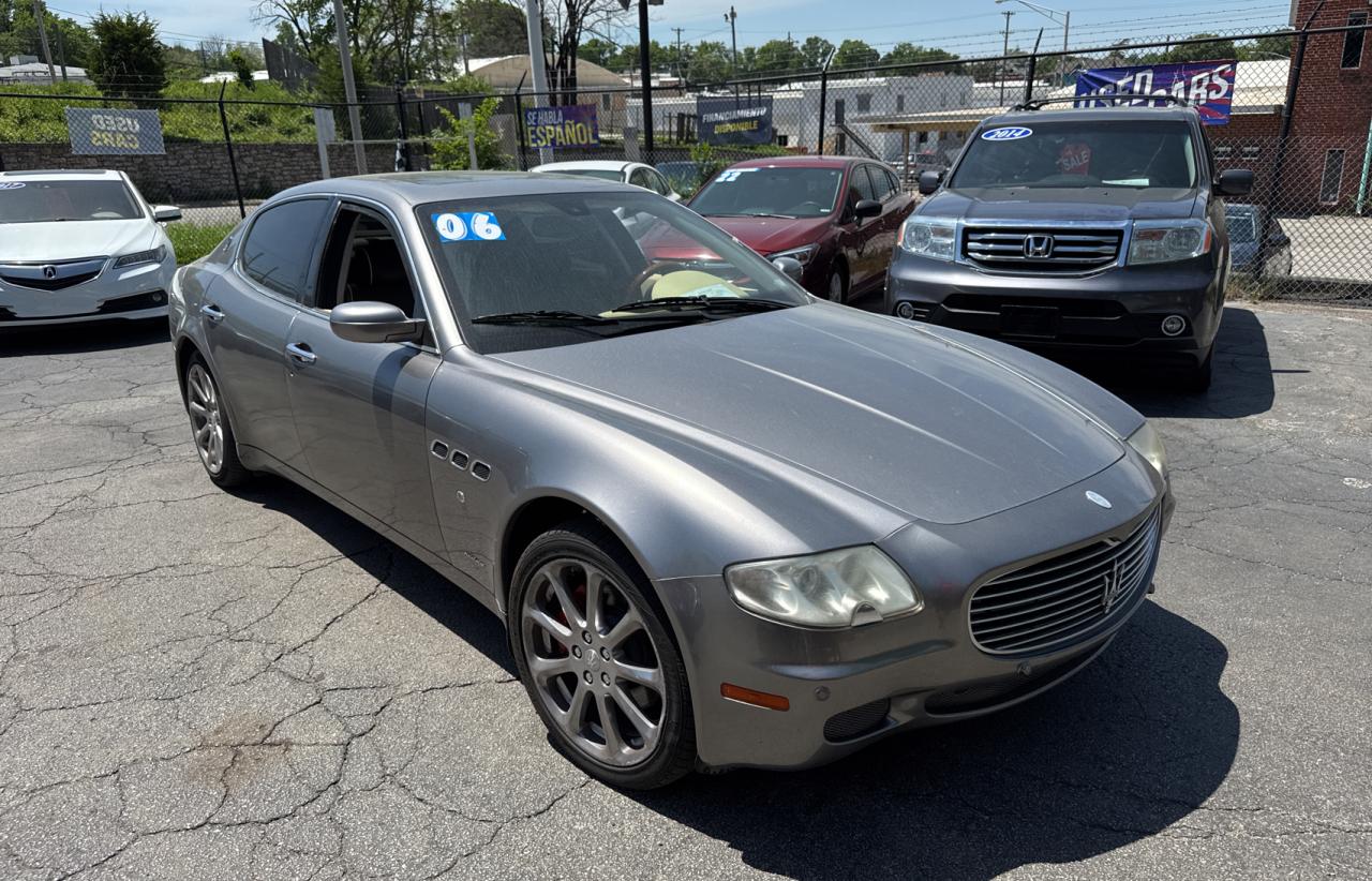 GoodThe 2006 Maserati Quattroporte, a silver luxury sedan, exhibits normal wear and tear with minor dents and scratches. It is a Run & Drive Verified vehicle. The exterior shows minor imperfections, while the interior presents wear consistent with its age and mileage. The vehicle is drivable.