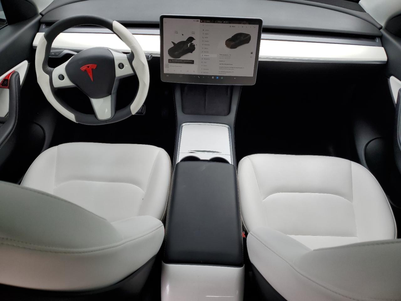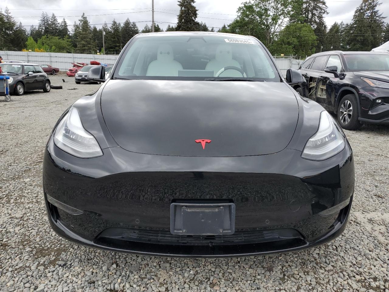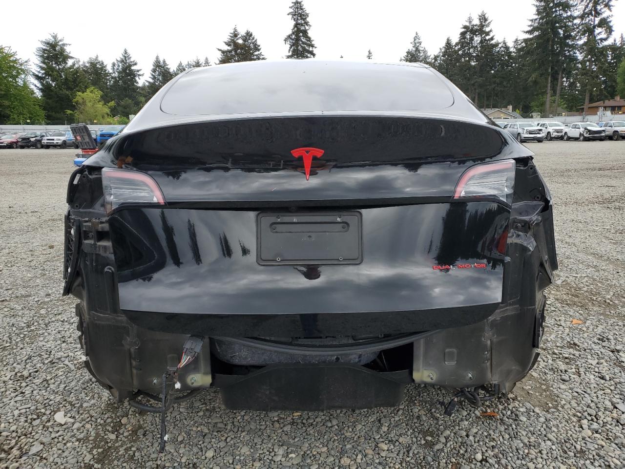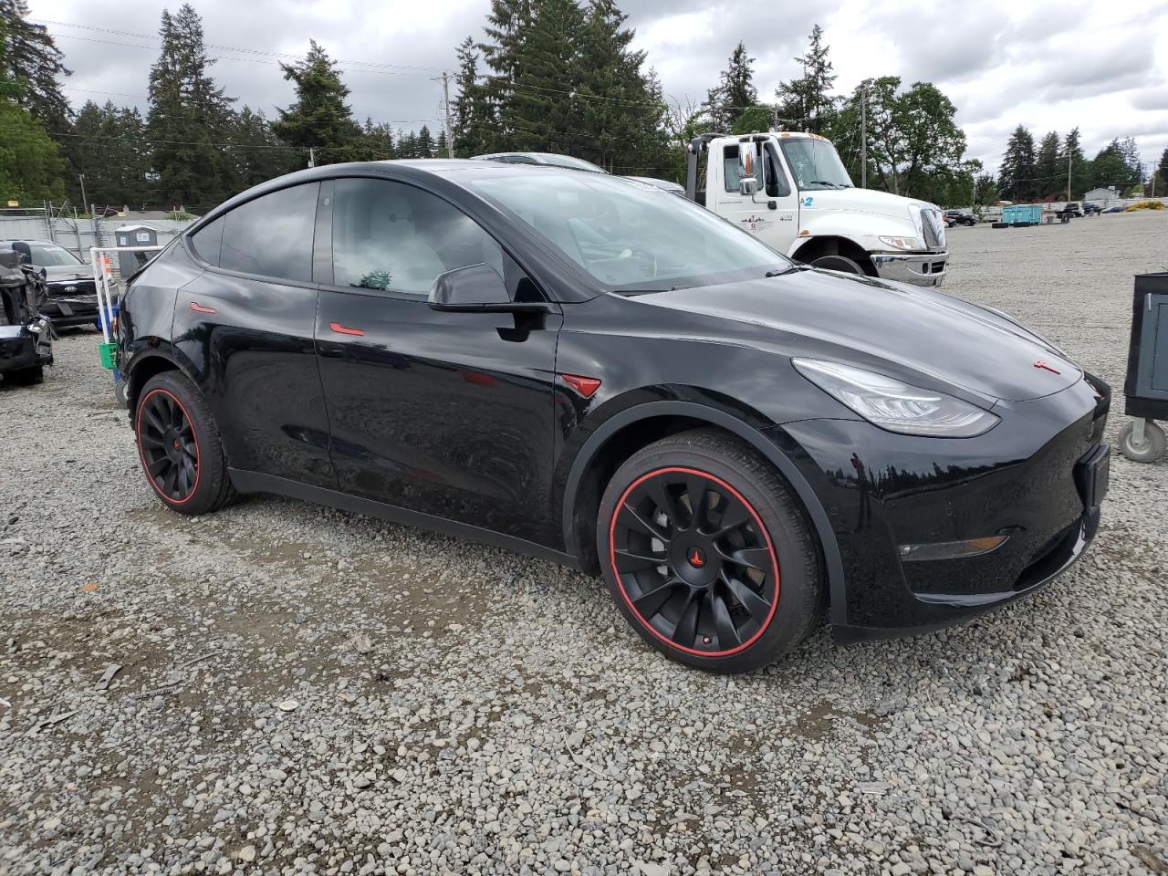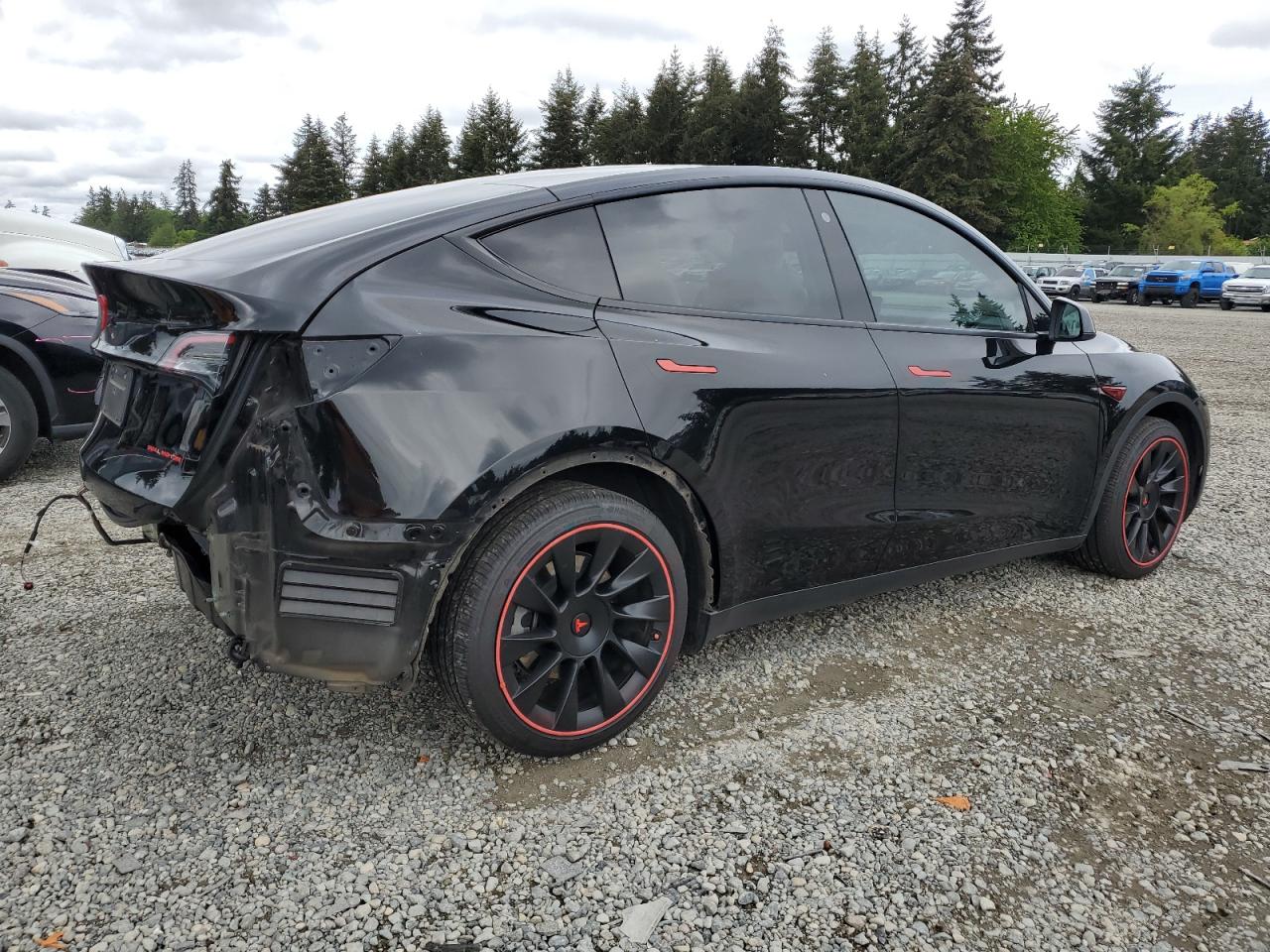 FairThe black 2022 Tesla Model Y presents with significant rear-end damage and some side damage. The wheels have red accents, but the rear of the vehicle has sustained substantial impact damage. The interior appears to have white seats.