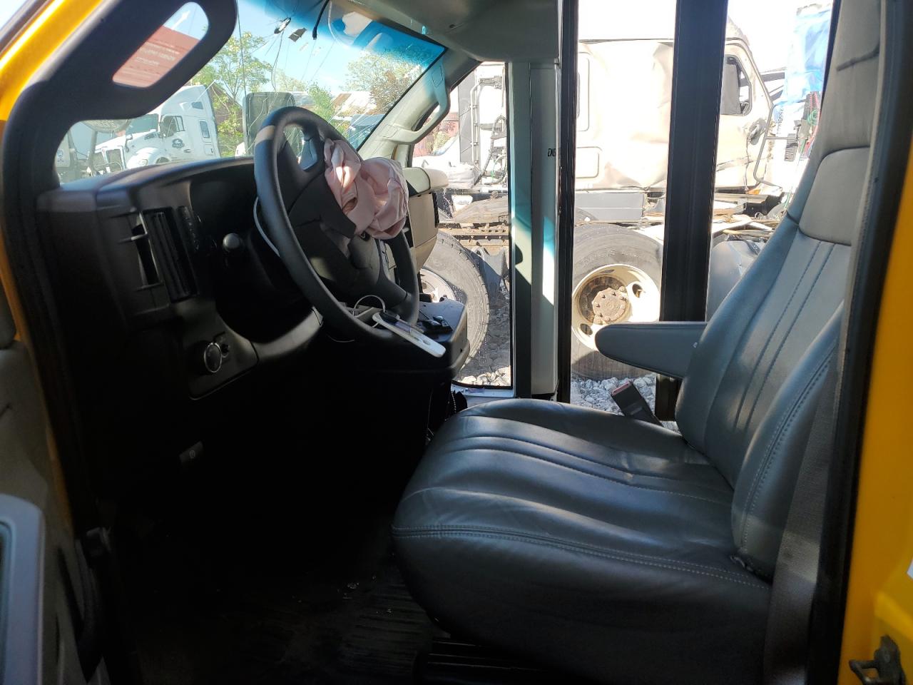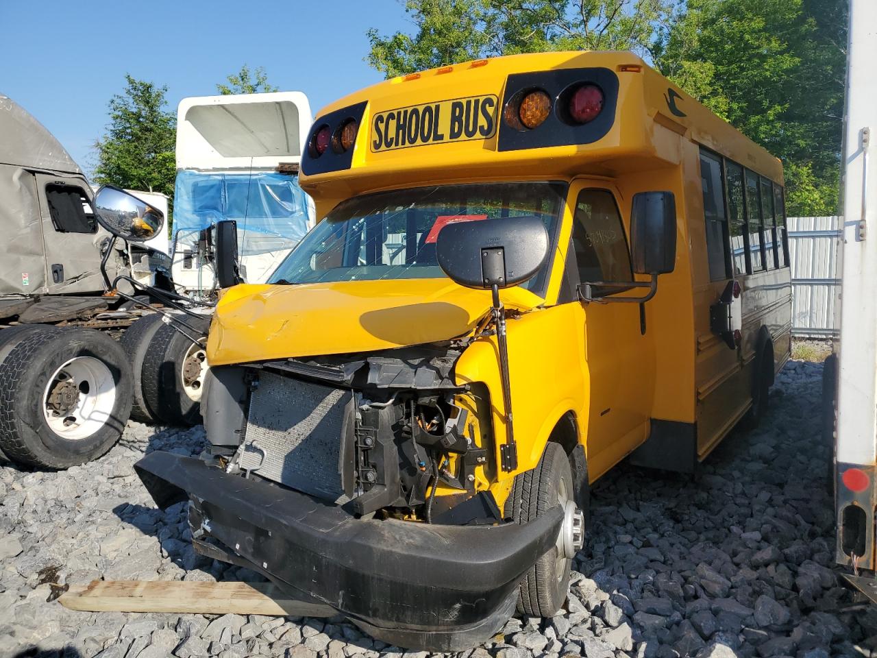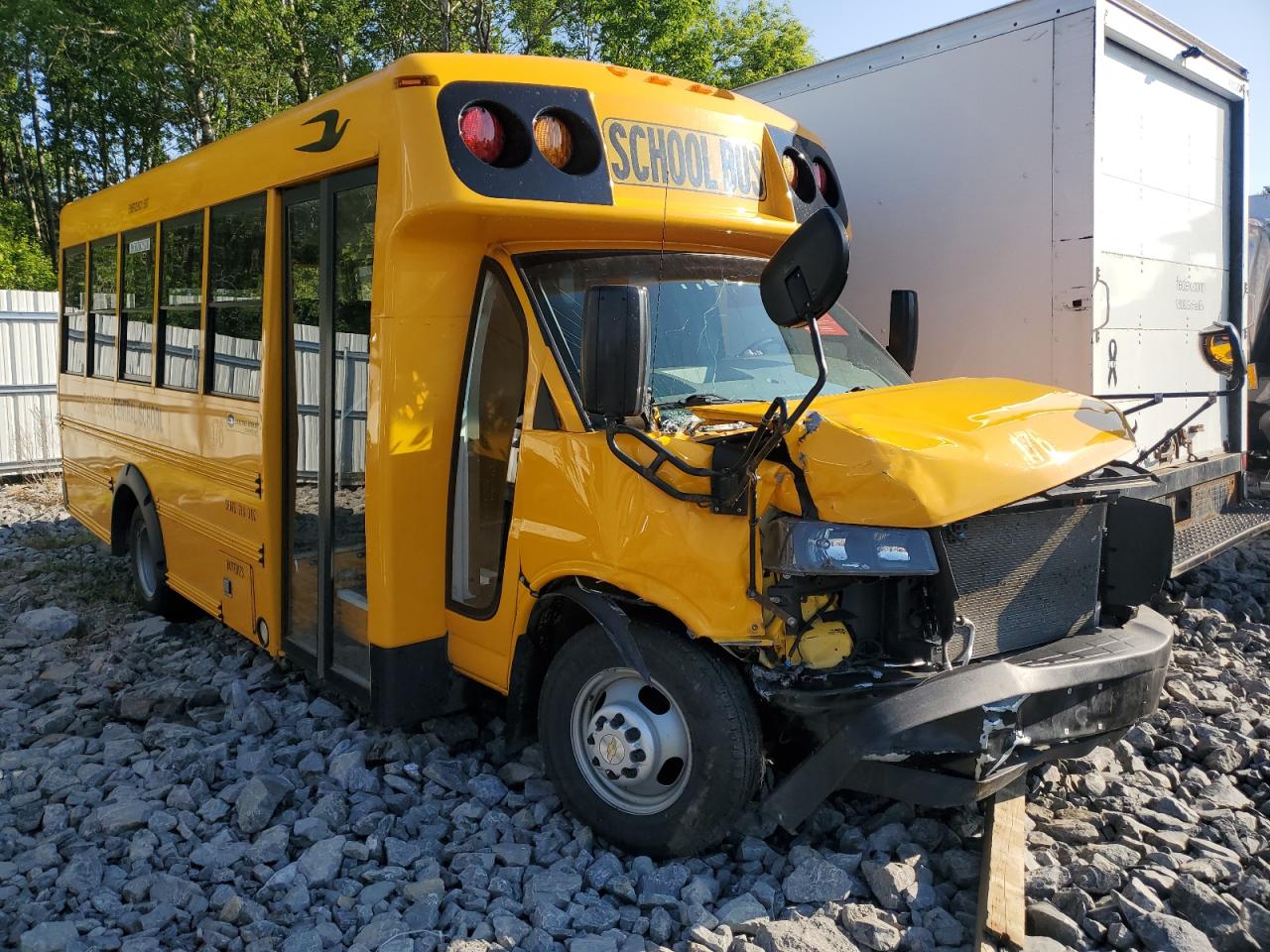 FairThis is a 2022 CHEVROLET EXPRESS G3 school bus, presenting with significant front-end damage. The primary damage is to the front end, impacting the bumper, grille, and body panels. The vehicle's yellow paint shows signs of wear and tear. The interior appears to be in good condition, with no immediately visible significant damage. The wheels appear to be intact and the lights and glasses may be affected by the front end damage. This bus has sustained damage to the front of the vehicle.