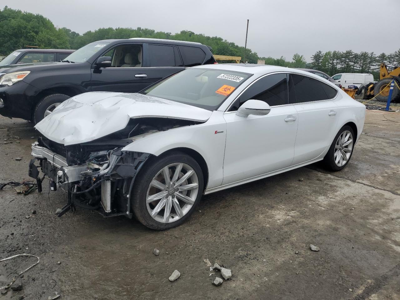 FairThe white 2015 Audi A7 Premium exhibits significant front-end damage, indicating a serious collision. The body panels, front lights, and possibly the windshield are affected. Interior shows deployed airbags and related damage. The wheels appear to be intact despite the impact. This car has extensive damage requiring significant repairs.