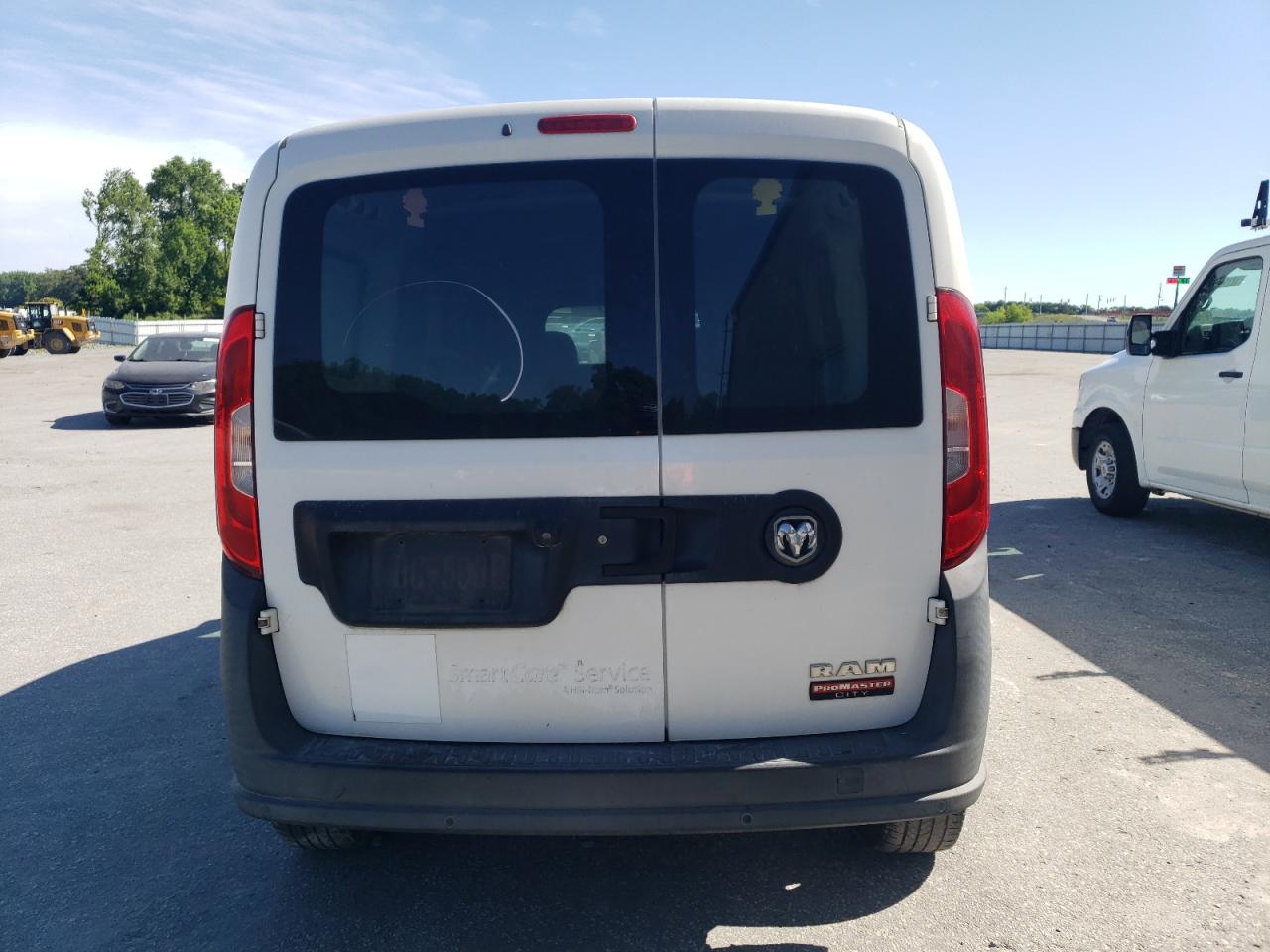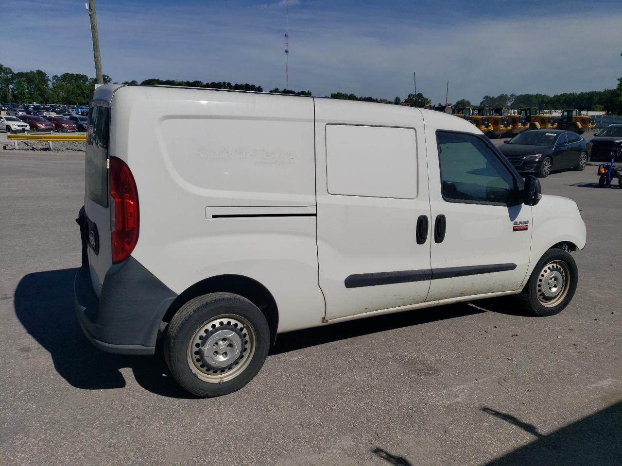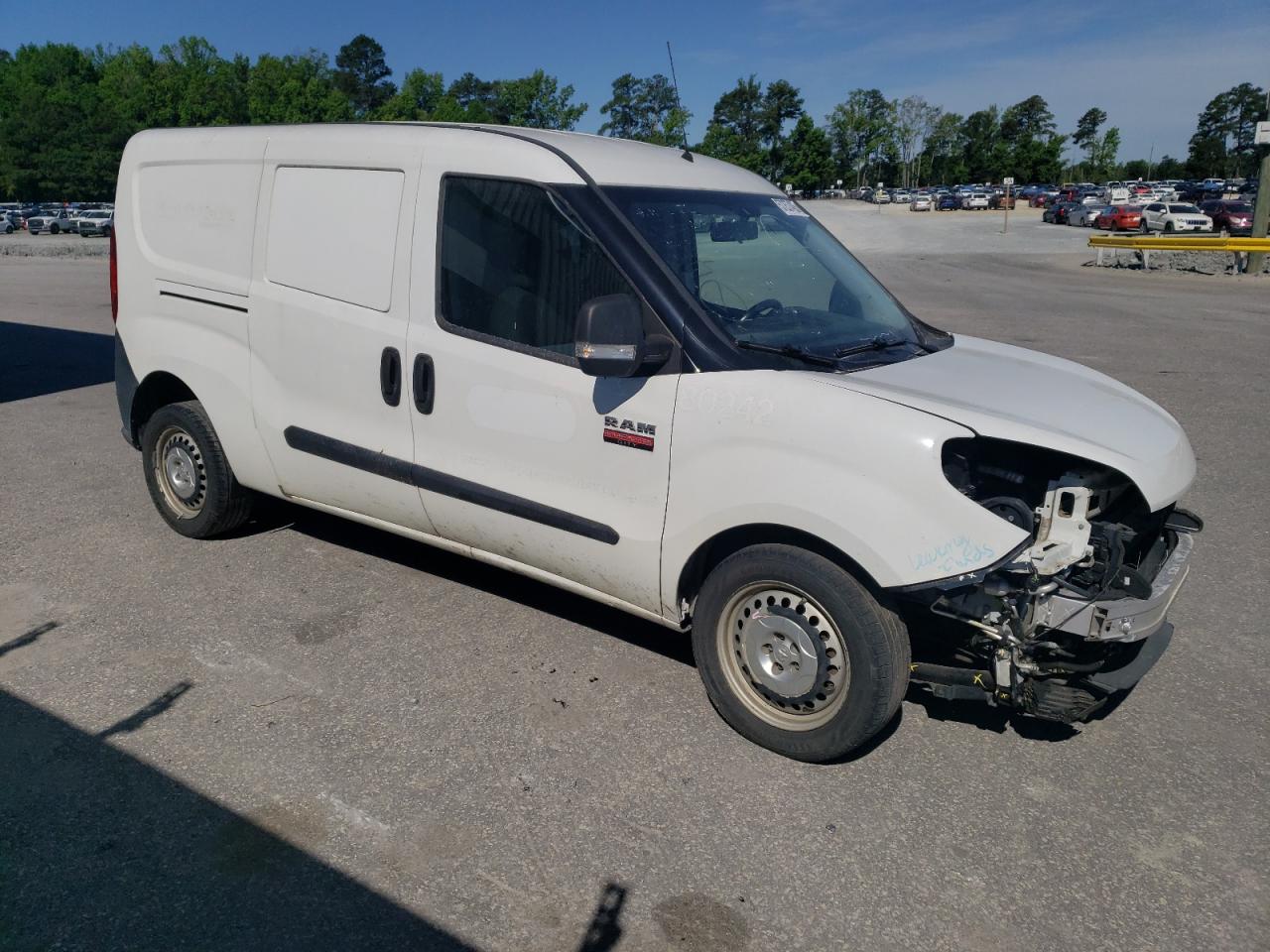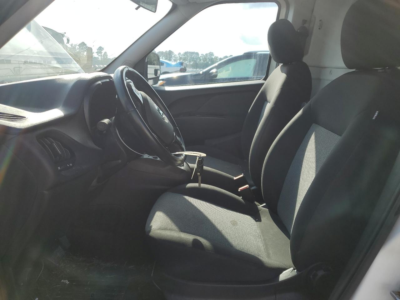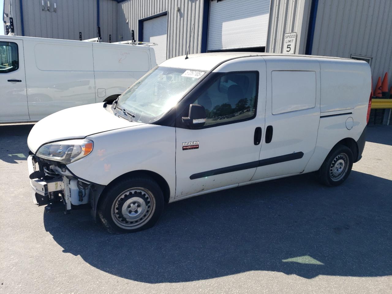 FairThe 2017 RAM ProMaster City is a white cargo van with significant front-end damage, including a missing bumper and other components. The vehicle's interior appears to be in decent condition with some wear and tear. The vehicle is likely drivable but requires significant repairs due to the body damage.