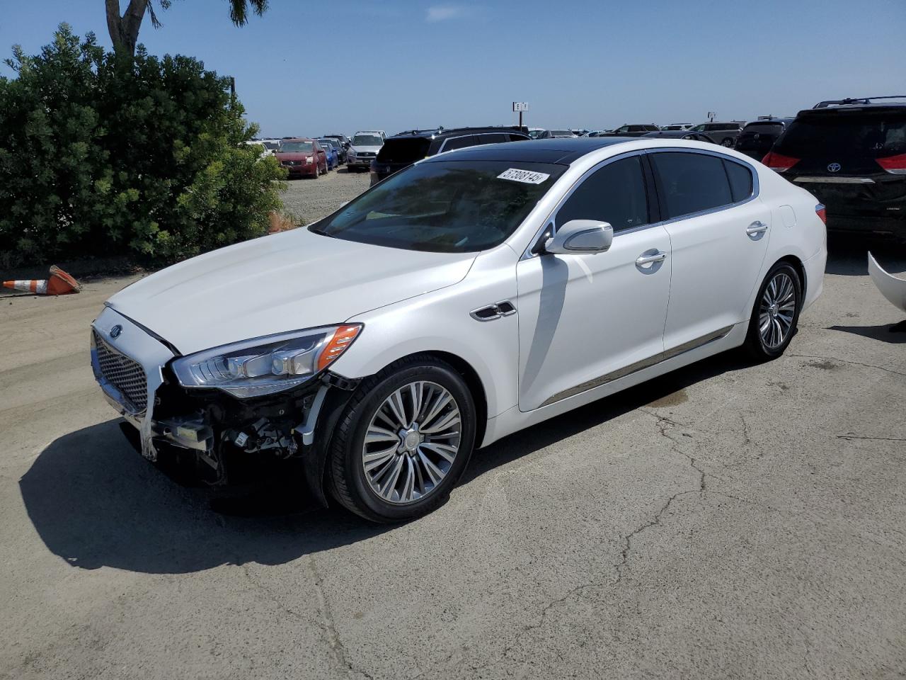 FairThis 2017 KIA K900 in white has sustained front-end damage, indicated by the 'Run & Drive Verified' start code. The primary damage is to the front end, with no secondary damage reported. The exterior condition is considered 'Fair', reflecting moderate visible damage requiring some repairs. The interior condition is 'Good', with minor wear and tear. The car appears drivable, but the damage assessment suggests that the front end needs considerable repair. The damage includes elements of the front bumper, the front of the car. The car's wheels, lights, and glasses are assumed to be in the condition. The vehicle's color is white, which has body panel damage. The car's overall state is rated as 'Fair'.