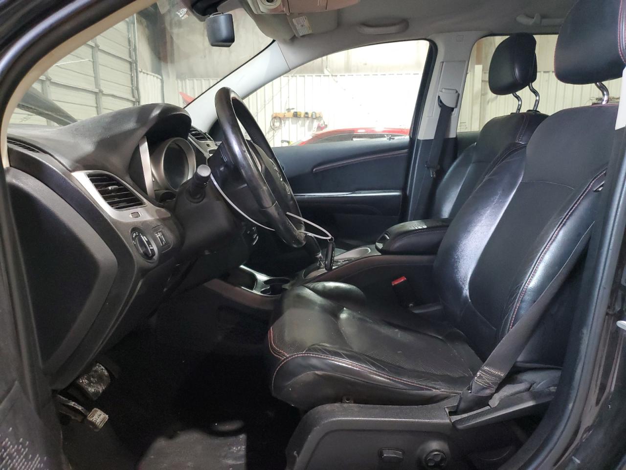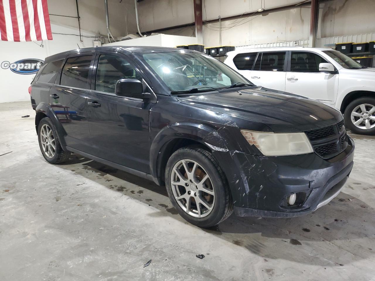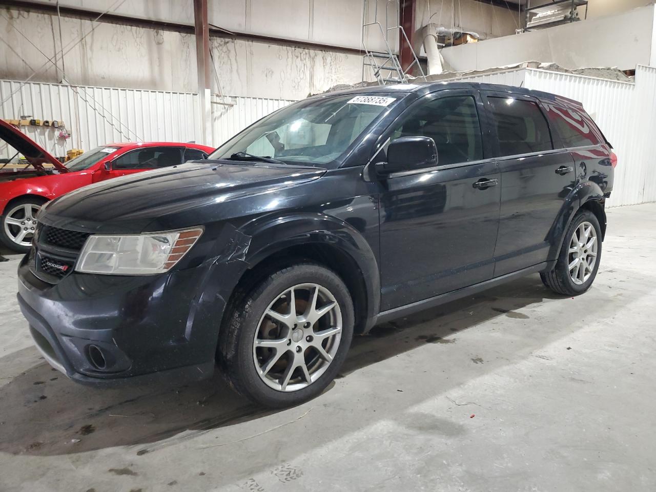 FairThe black 2013 Dodge Journey R/T has suffered significant rear-end damage, evident in the crumpled body panels. Secondary hail damage is also present. The vehicle starts and runs. Interior damage is not significant. The vehicle's condition suggests it requires considerable repair, but the interior appears in relatively good condition. The wheels look fine and are not damaged. The lights and glasses do not appear to be significantly damaged based on the images.