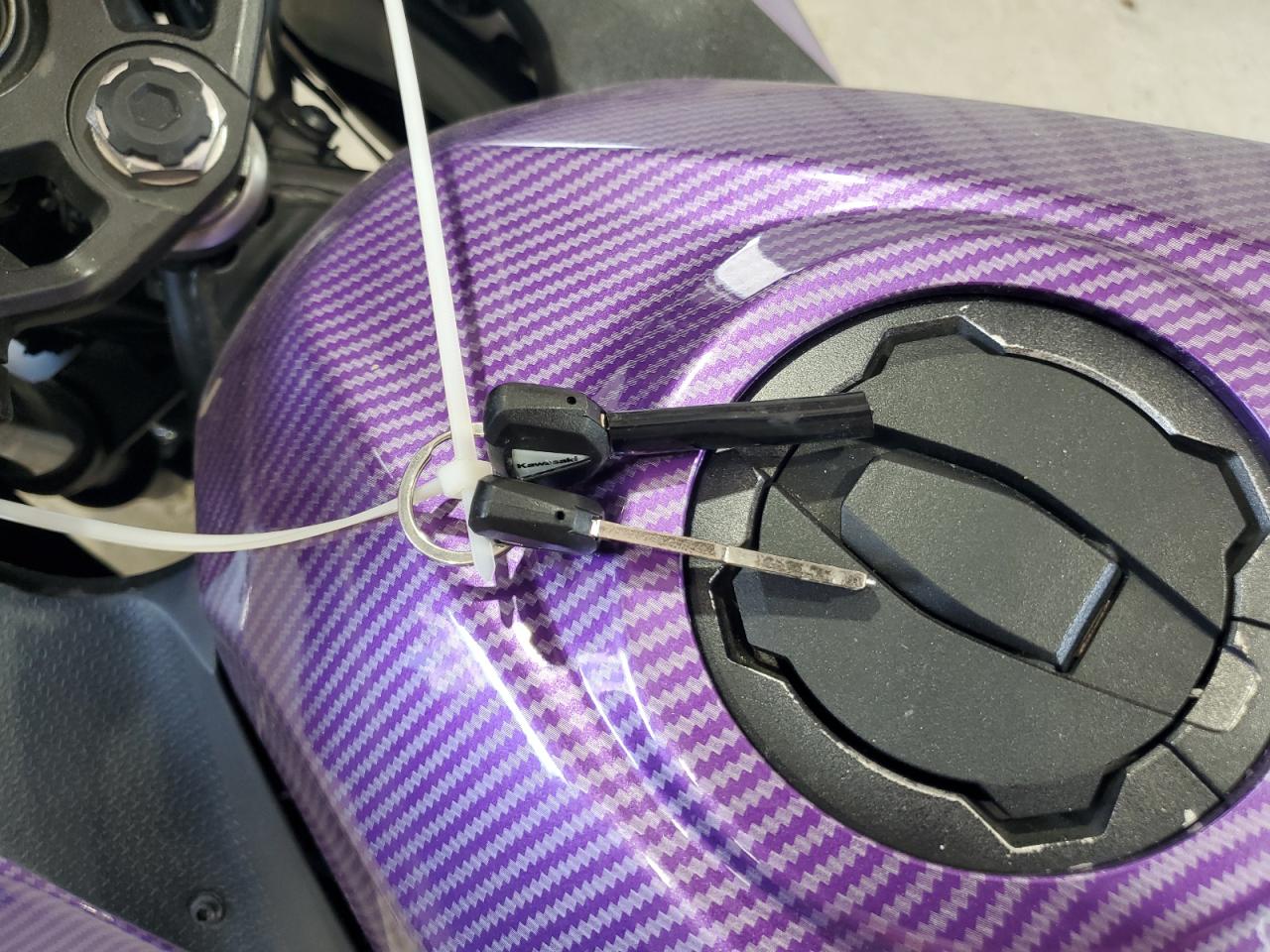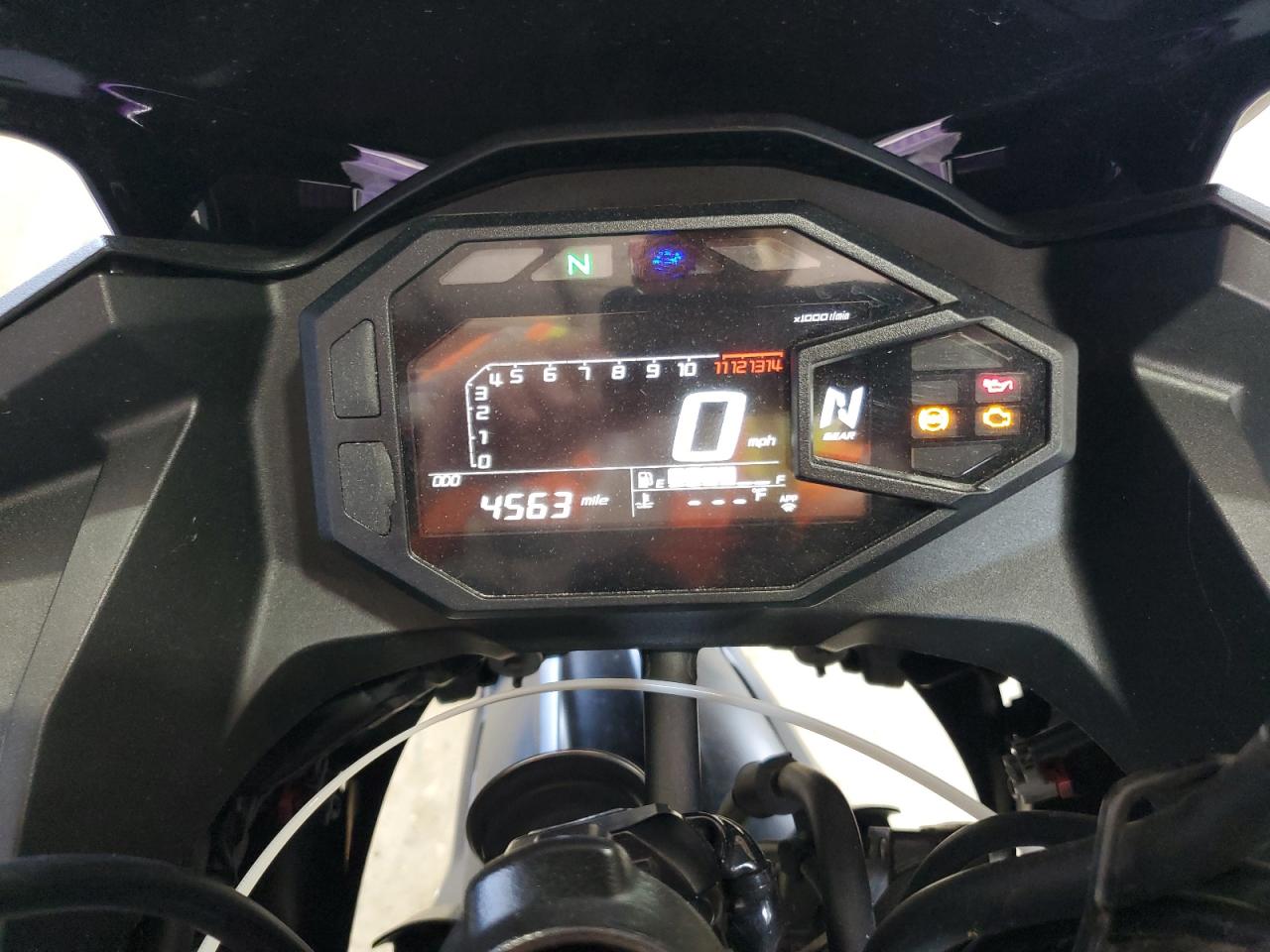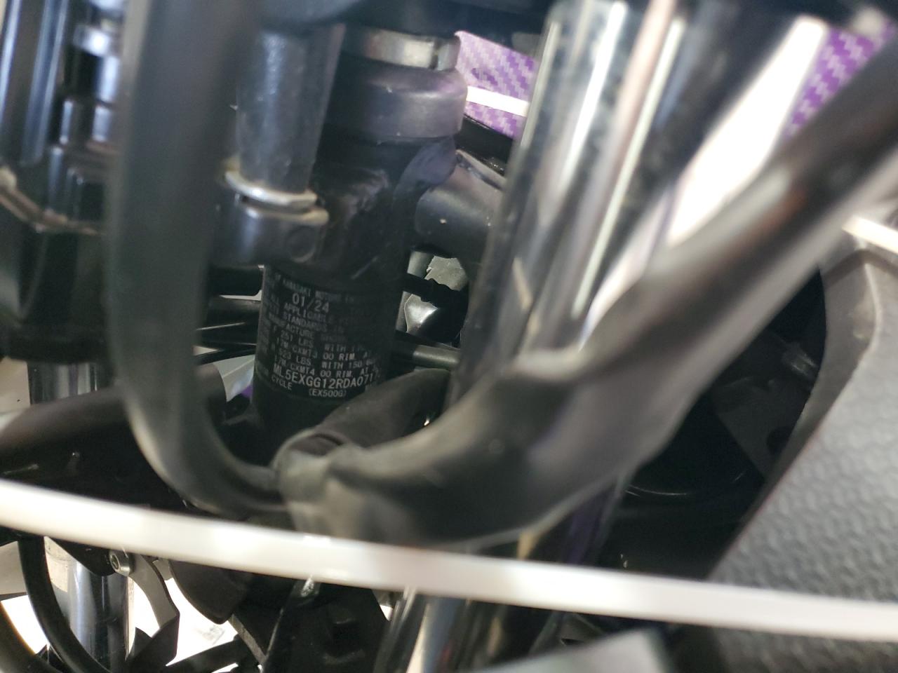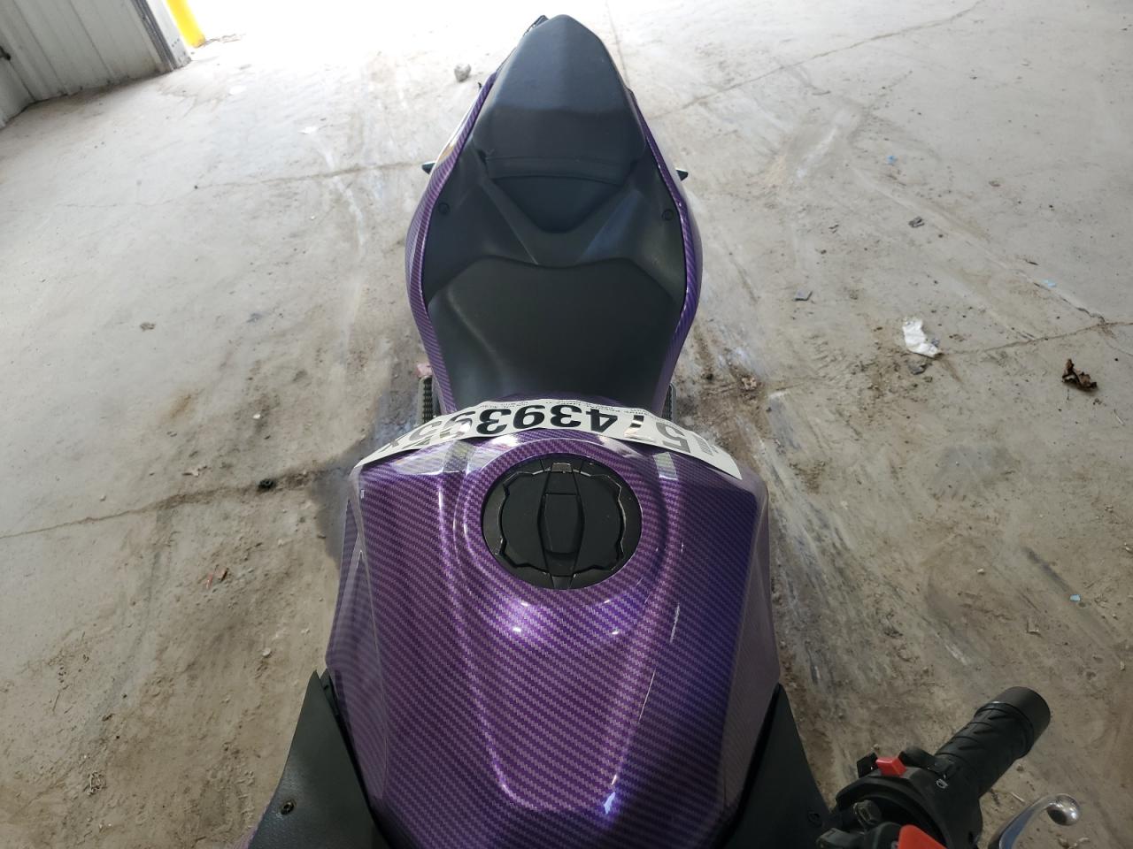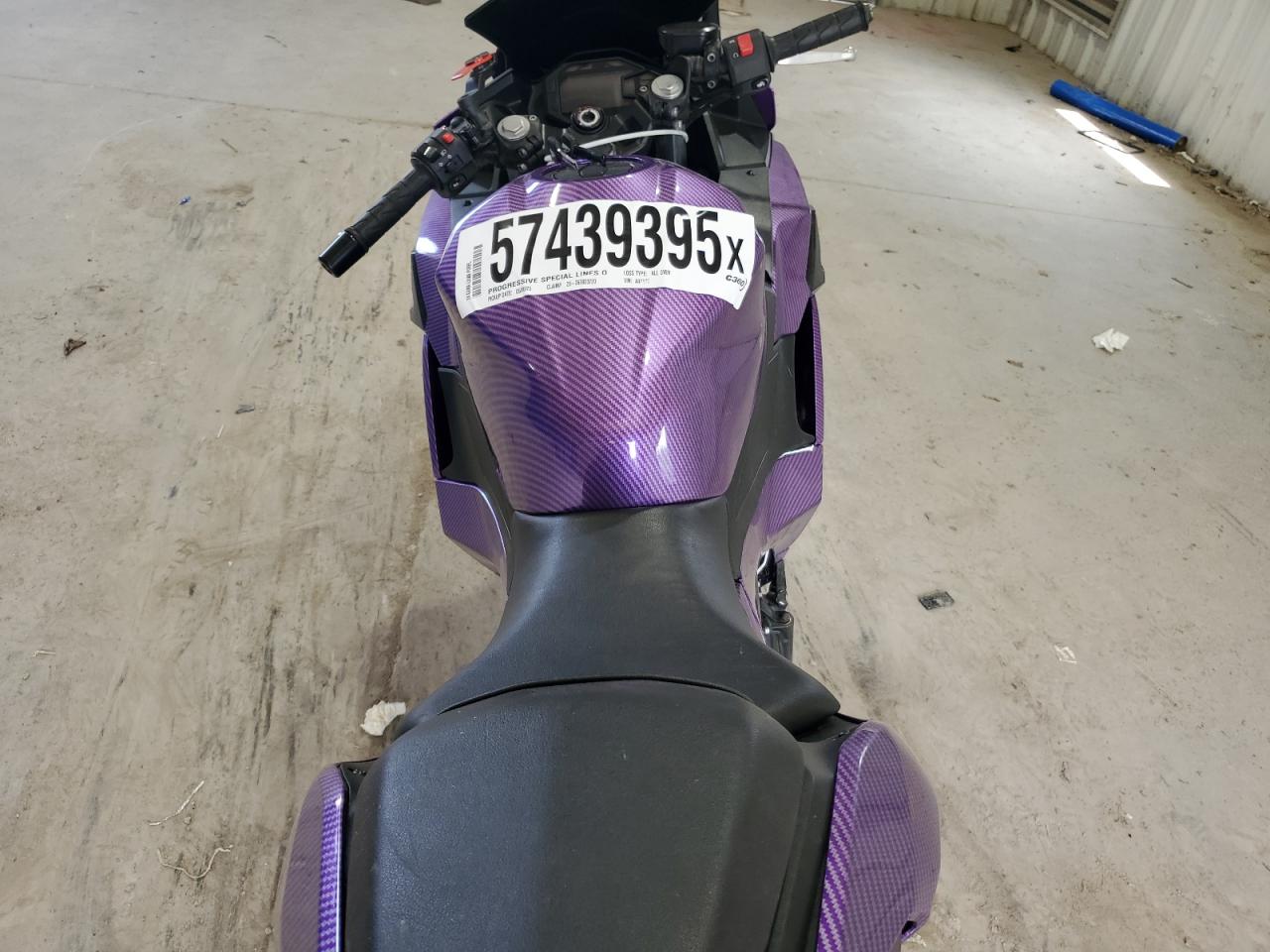 FairThis is a 2024 KAWASAKI EX500 motorcycle with purple body, start code is Vehicle Starts. Primary damage: SIDE, secondary damage: no damage. The motorcycle shows signs of cosmetic and body damage.