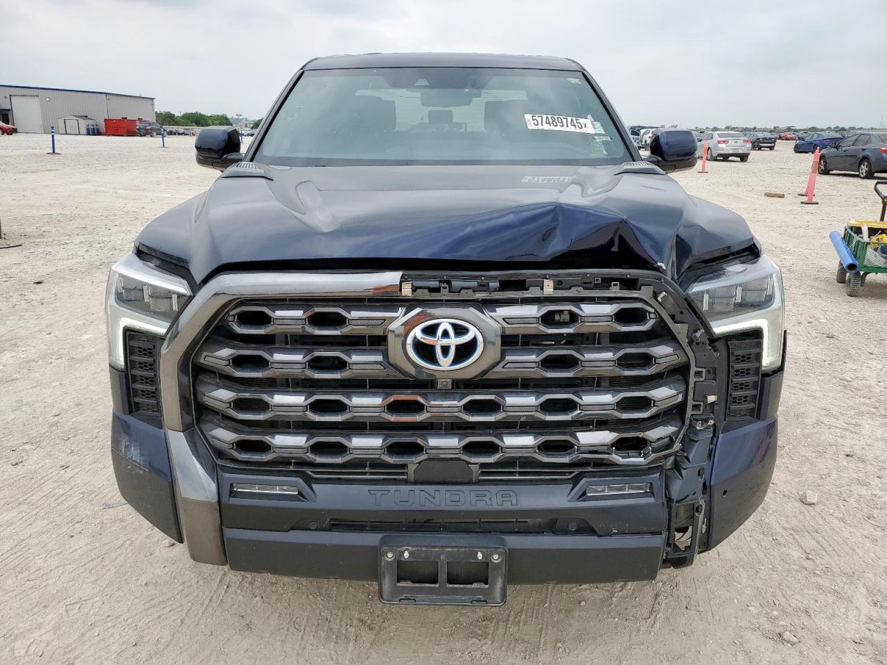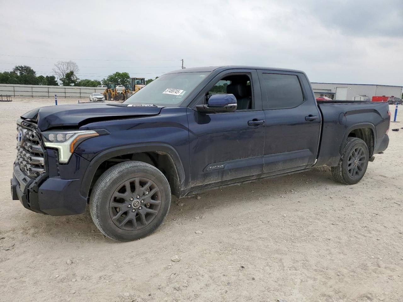 FairThe 2023 TOYOTA TUNDRA CRE has sustained front-end damage. The primary damage is to the front end, and there's no indication of secondary damage. The vehicle's color is blue, and its start code is "Run & Drive Verified". The interior shows signs of wear. The wheels appear to be intact. The vehicle is drivable, but needs some repairs, there are damages to the front end.