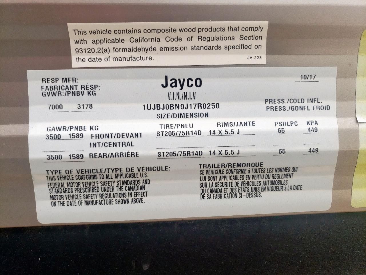 FairThe 2018 Jayco trailer shows signs of hail damage and minor dents/scratches on its white exterior. The vehicle's damage is categorized as Body. Interior appears to be in relatively good condition. Overall, the trailer is in Fair condition, indicating it may require some repairs but remains drivable. Keywords: Jayco trailer, hail damage, dents, scratches, body damage, drivable, Fair condition. Damage Summary: Exterior: Hail damage, dents, scratches Interior: No major visible damage. Visible Damage List: - Hail damage - Dents - Scratches