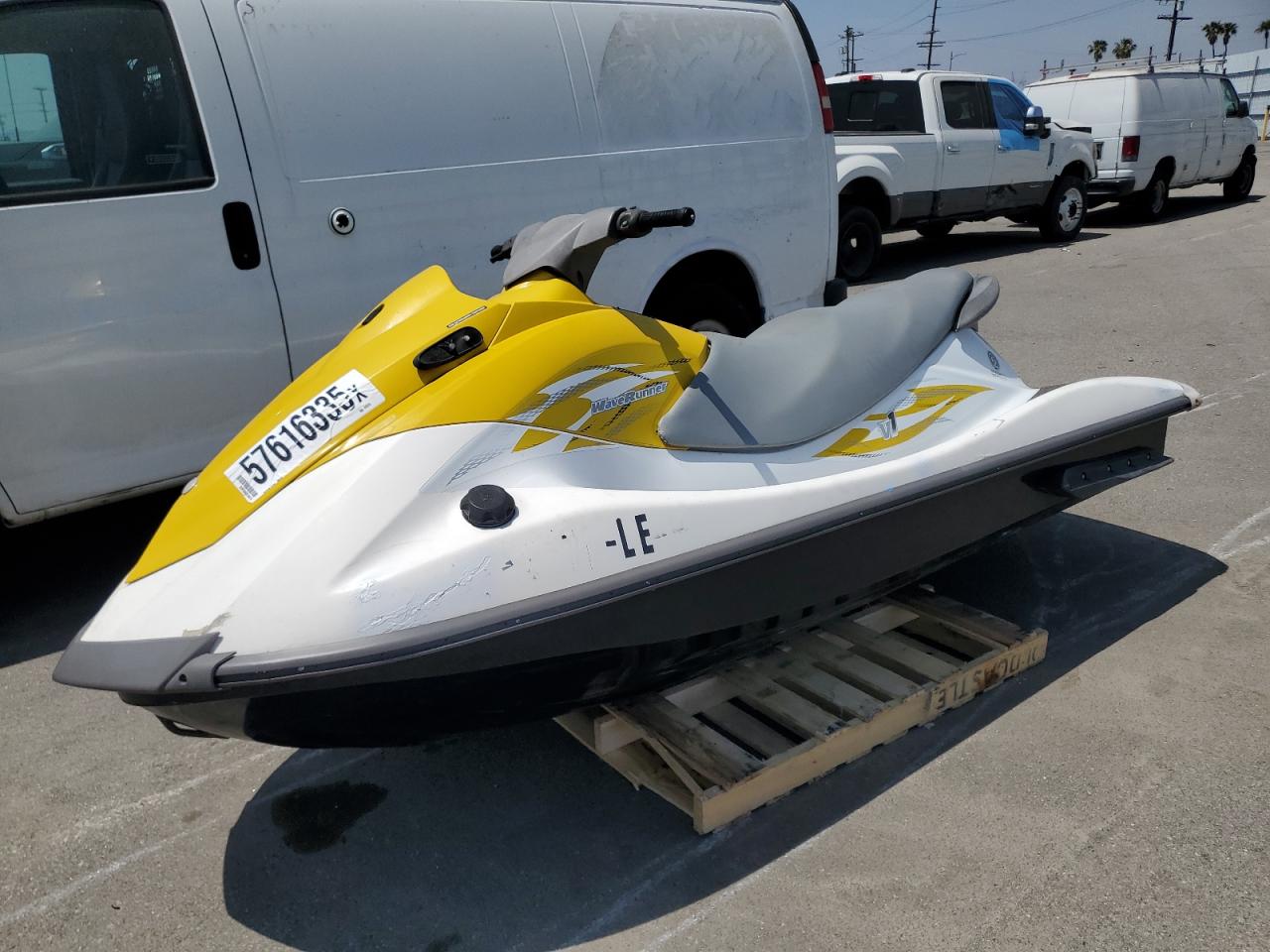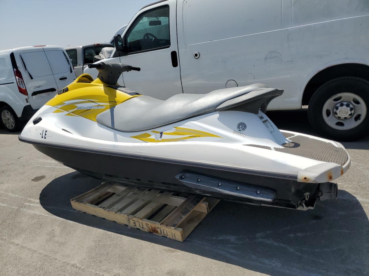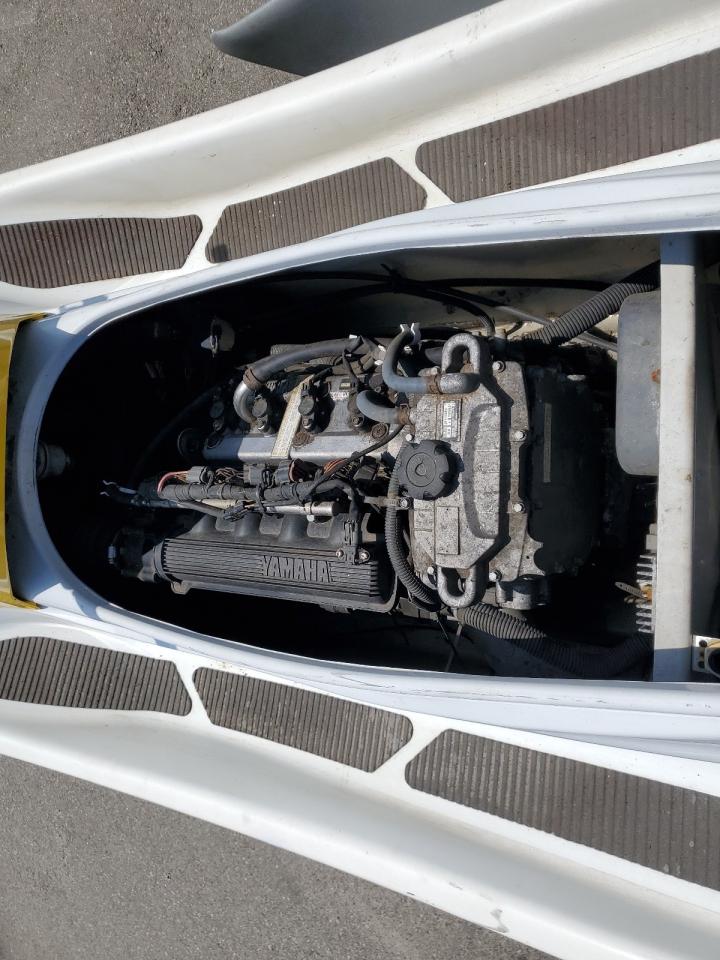 GoodThe jet ski is a Yamaha WaveRunner from 2015, primarily white with yellow accents. It shows cosmetic and body damage all over, but no apparent mechanical issues. The interior seems well-maintained.