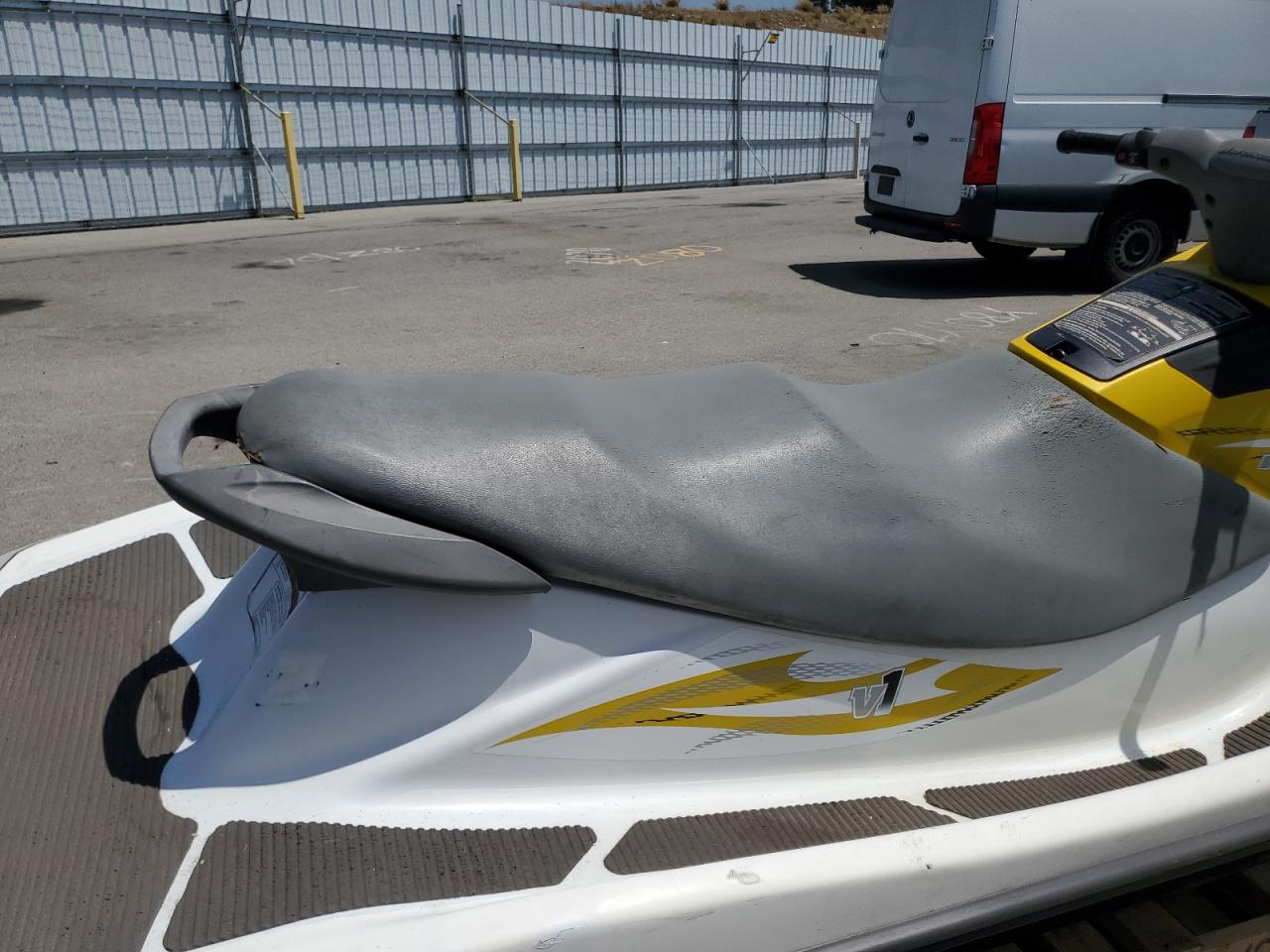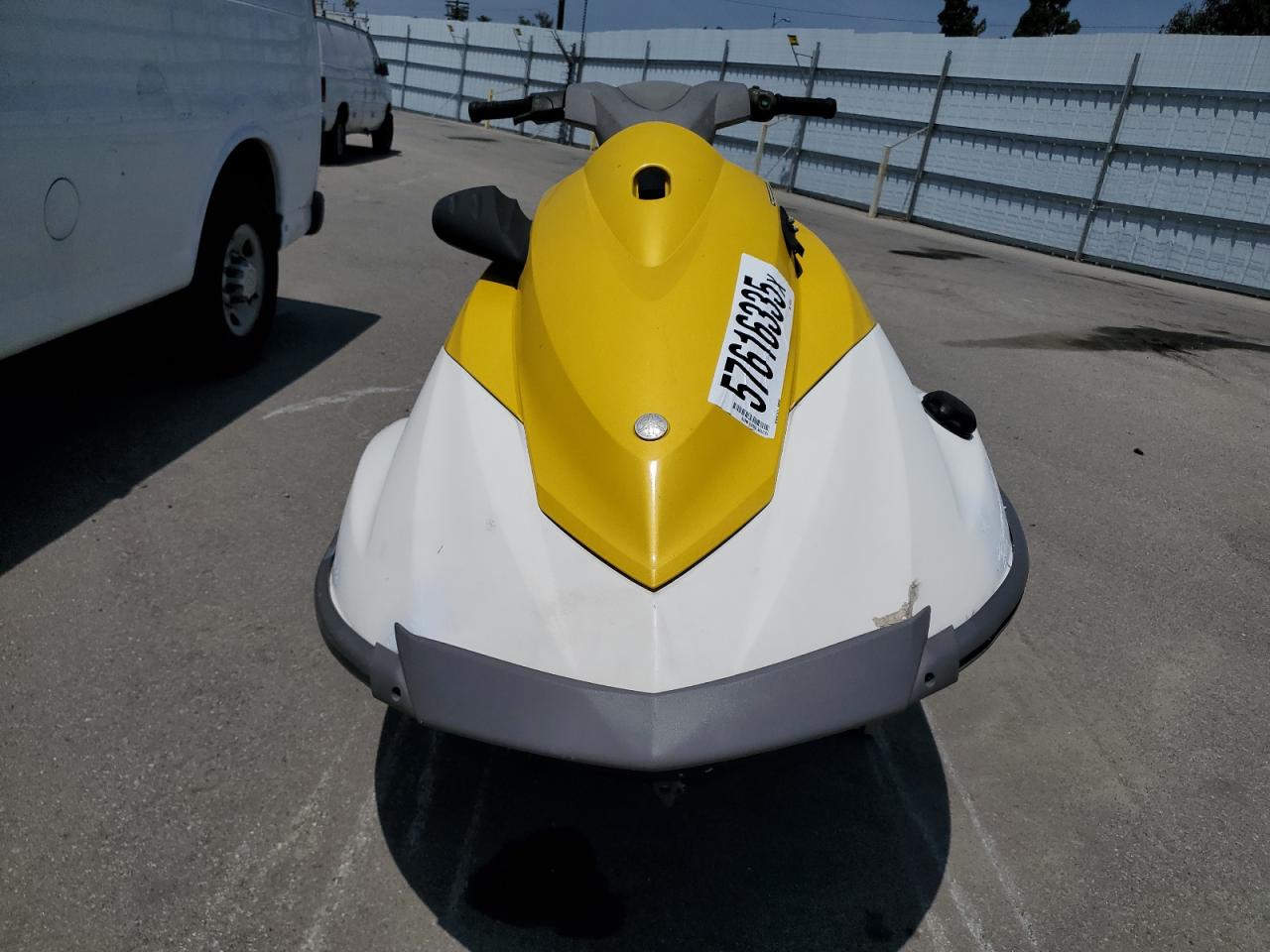 The jet ski has cosmetic damage, with visible body panel issues. There is no damage to the wheels or engine.