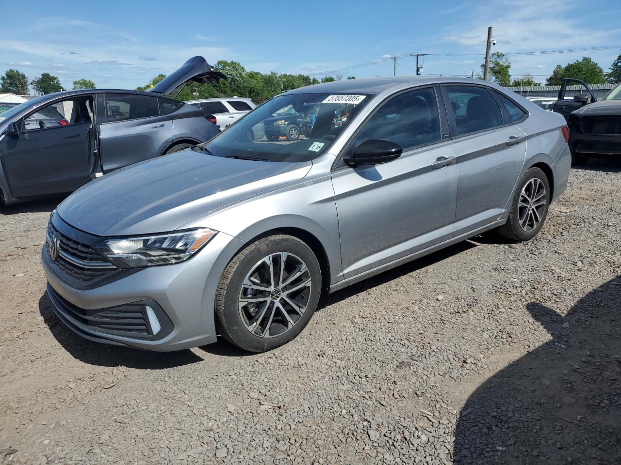 FairThe silver 2023 VOLKSWAGEN JETTA SPOR has sustained significant damage. The primary damage is on the side, and secondary damage is on the front end. The vehicle is drivable, with a Run & Drive Verified start code. The wheels appear to be intact. The lights and glass are damaged. The interior has damage as well. The airbags are not deployed.