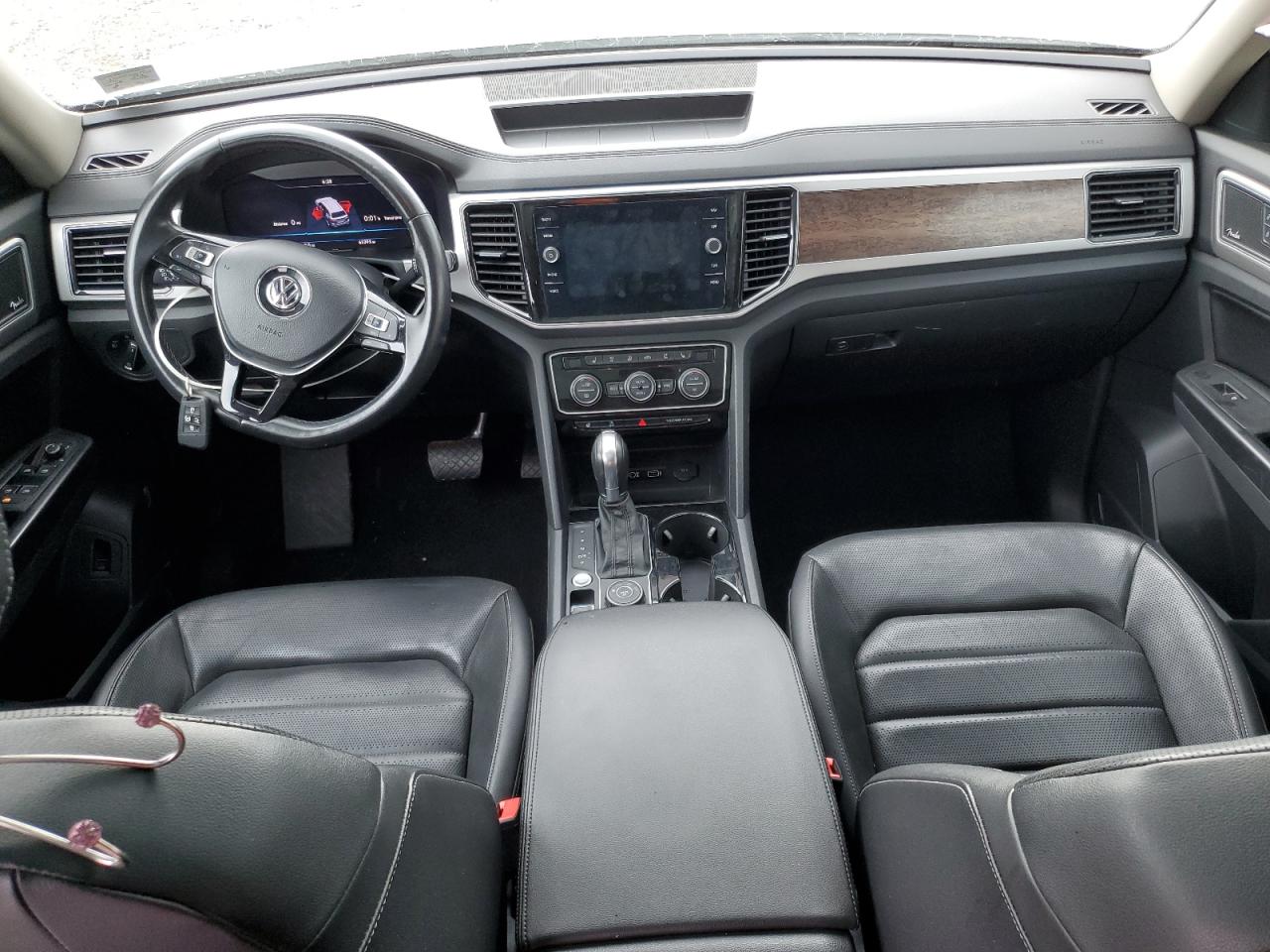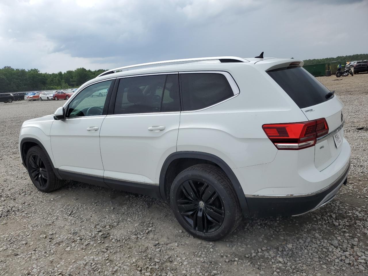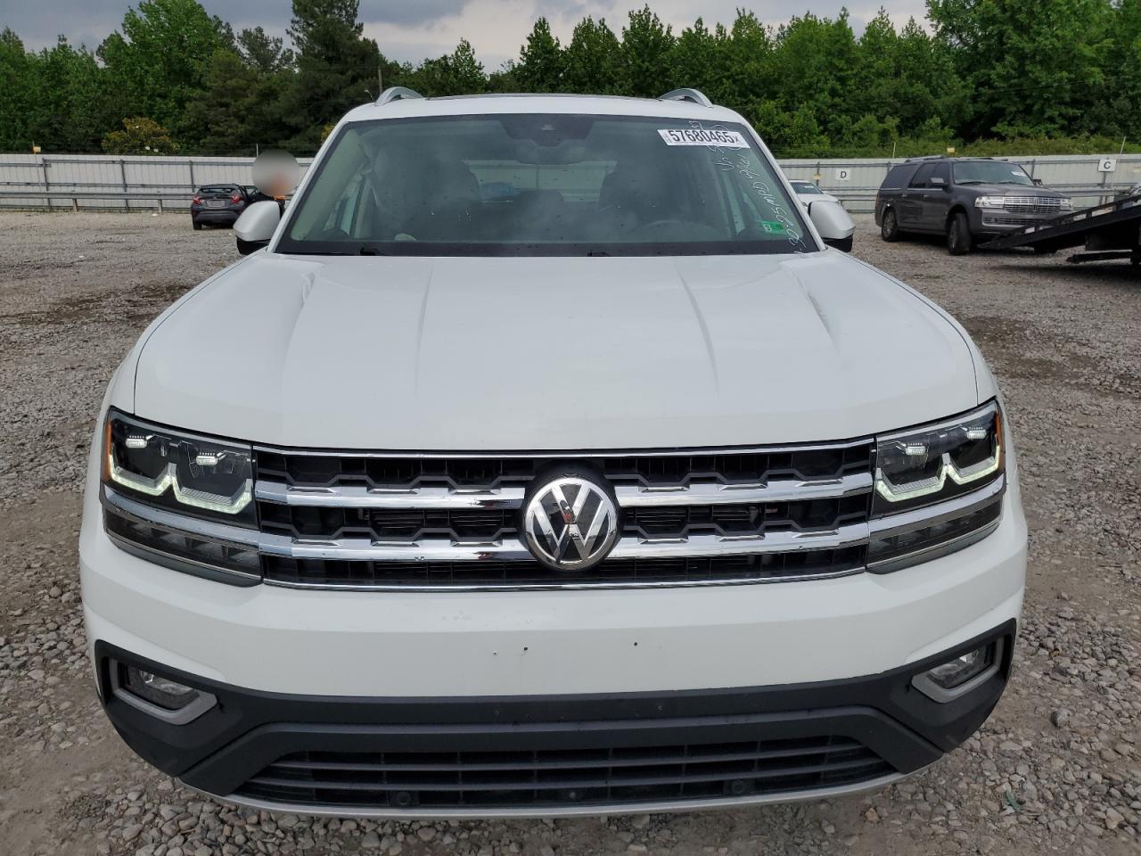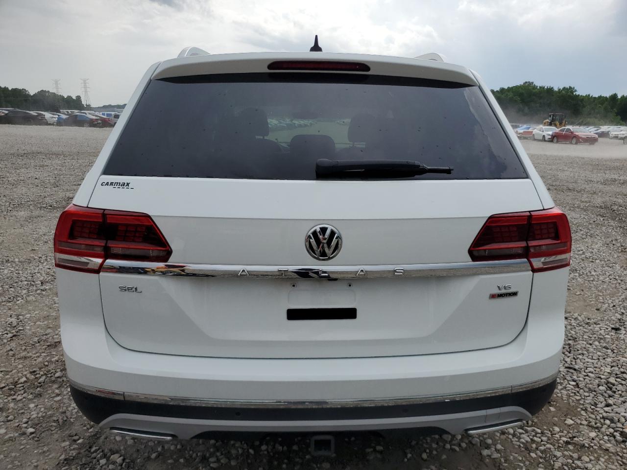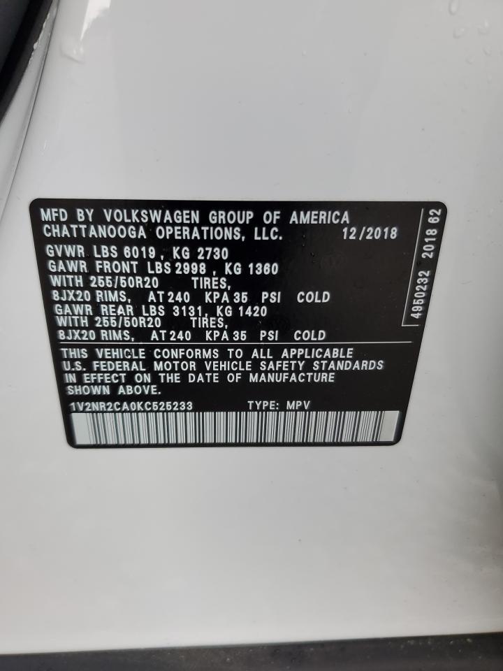 Fair2019 VOLKSWAGEN ATLAS SEL. The car is white and has a Run & Drive Verified status. The primary damage is SIDE, with secondary damage including MINOR DENT/SCRATCHES. The vehicle's body panels have sustained damage. Interior condition is rated as Good. The airbags have been deployed, indicating potential internal damage. The vehicle is drivable.