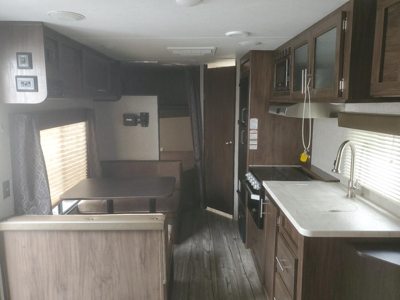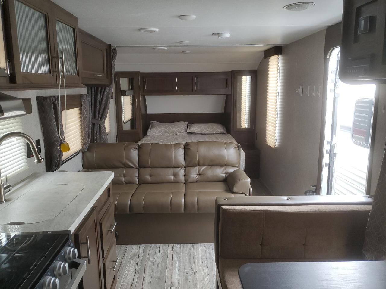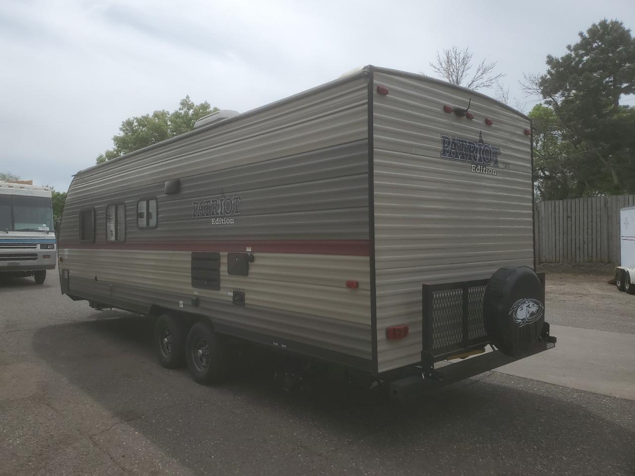 GoodThis is a 2019 Wildwood Patriot RV in cream color, exhibiting hail damage as the primary concern and no secondary damage. The exterior shows minor to moderate visible damage, potentially necessitating the replacement of some elements, while the interior presents minor visible damage consistent with its age and mileage. The vehicle's wheels and lights appear to be in good condition. Overall, the vehicle is drivable and in good condition, but may require some cosmetic repairs to bring it back to its best.