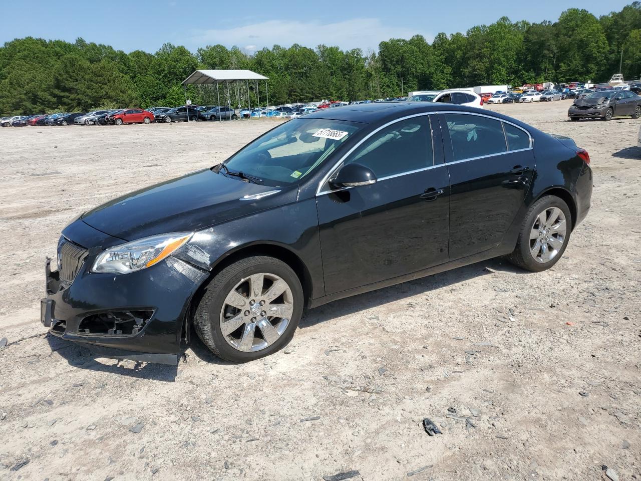 PoorThe 2017 BUICK REGAL PREM is a black sedan with significant front-end and undercarriage damage. The vehicle starts but has extensive visible damage. The car has visible damage to body panels, wheels, lights, and glasses. Interior damage is present, including deployed airbags.