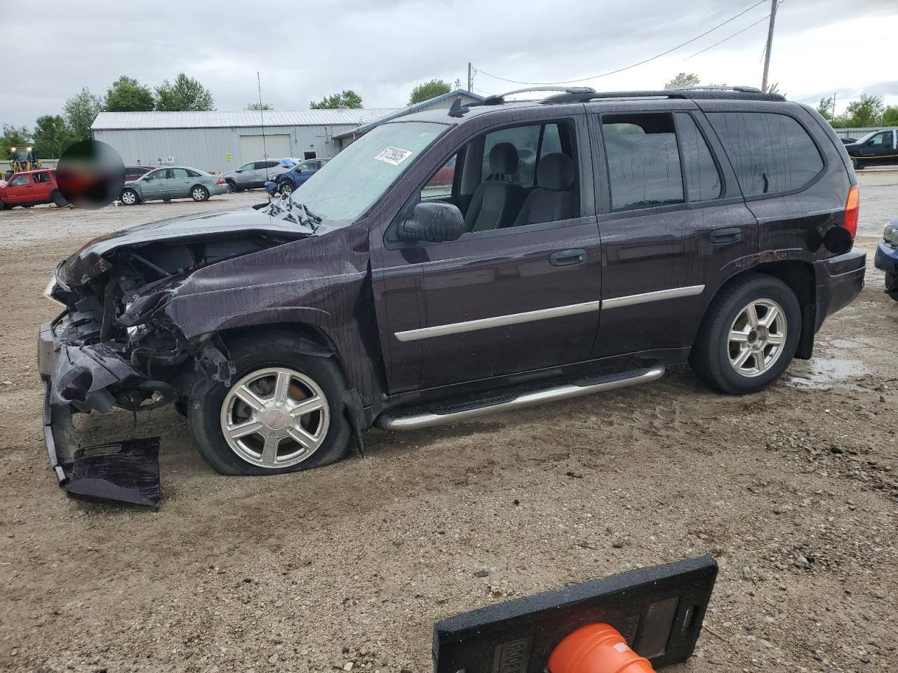 FairThe 2009 GMC Envoy SLE, appears in a damaged state. The front end exhibits significant damage. The car's body color is purple. The interior shows wear and tear. Regarding the damage, the front end is severely damaged, indicating a collision. The wheels appear to be intact. The lights and glasses are in an unknown condition due to the damage. Overall, the car requires considerable repair. There is no information about mechanical or other damages on this car. Vehicle Damage Category: Body. Overall Condition: Poor, encompassing front-end damage, interior wear, and overall state.