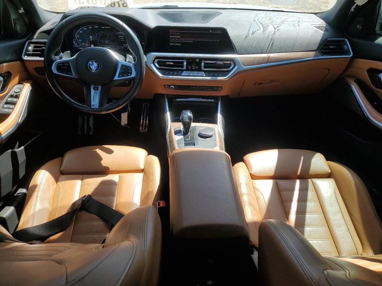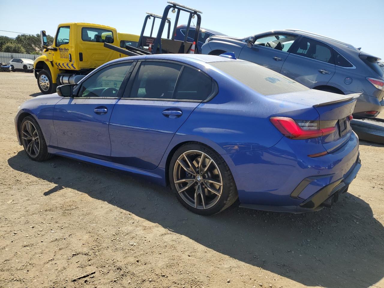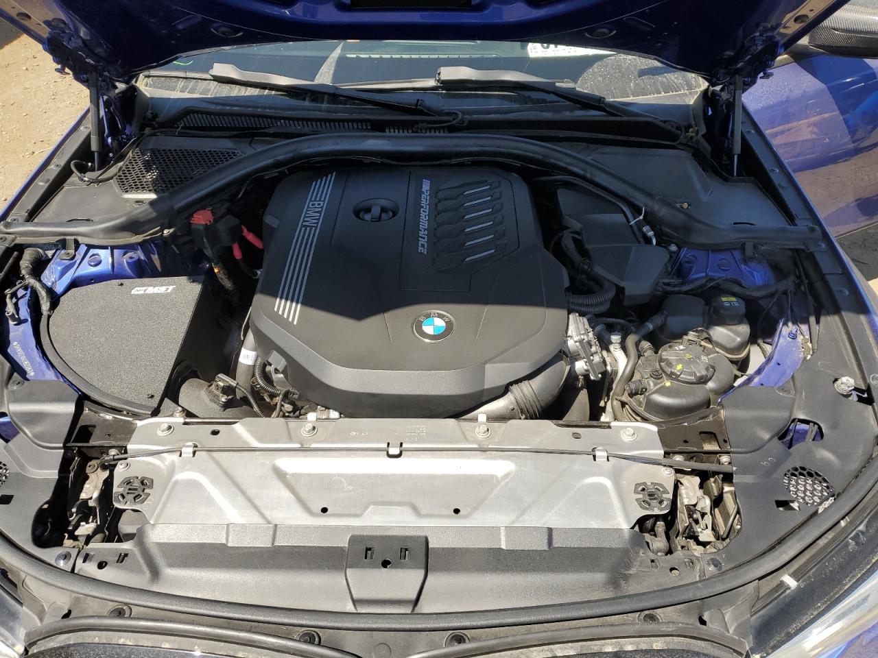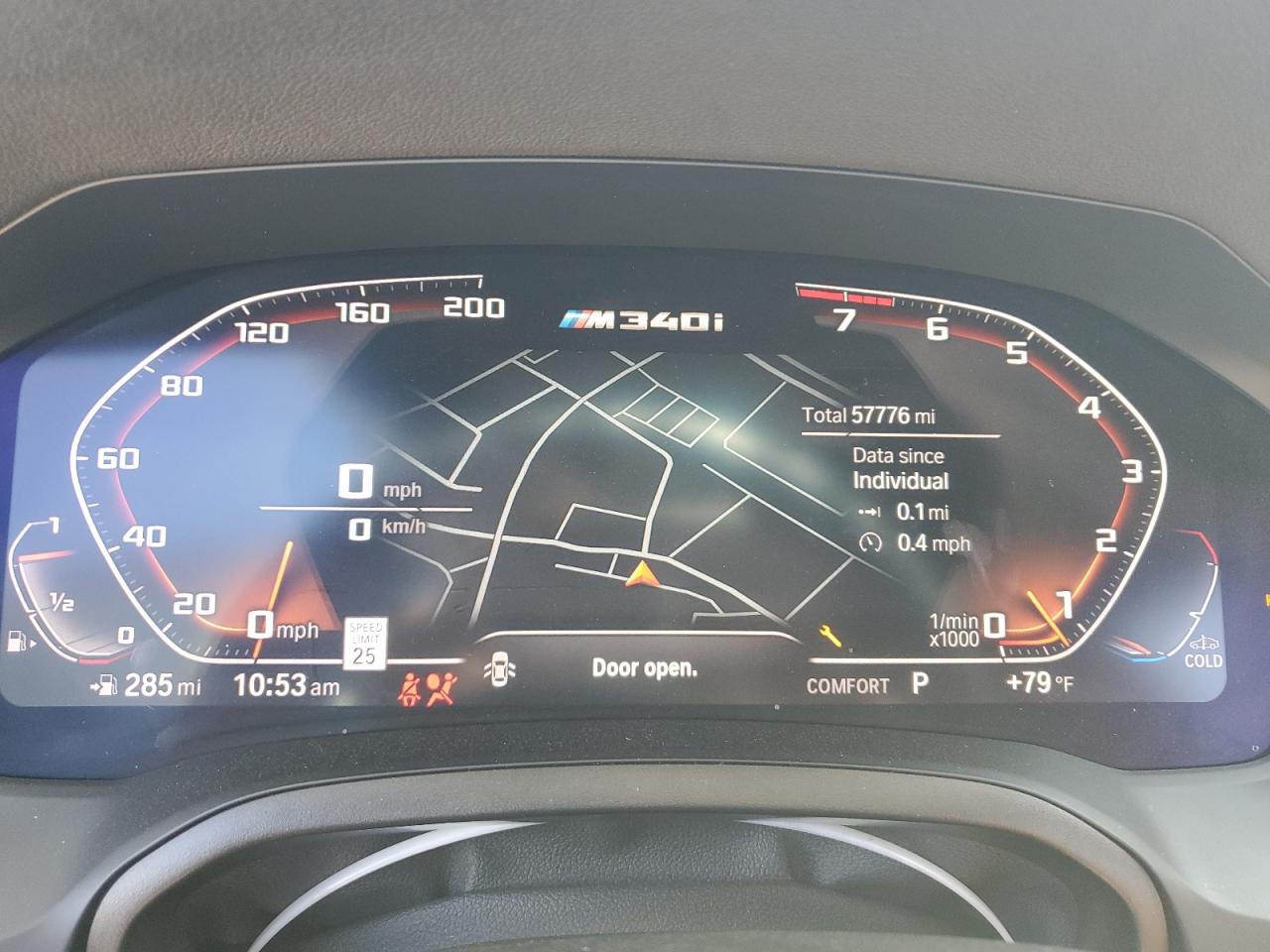 FairThis 2020 BMW M340i, a blue sedan with a Run & Drive Verified status, presents with significant side body damage. The primary damage is concentrated on the side, impacting the body panels. The interior appears to be in Good condition, with the wheels and lights intact. This M340i, despite the damage, retains its drivability.