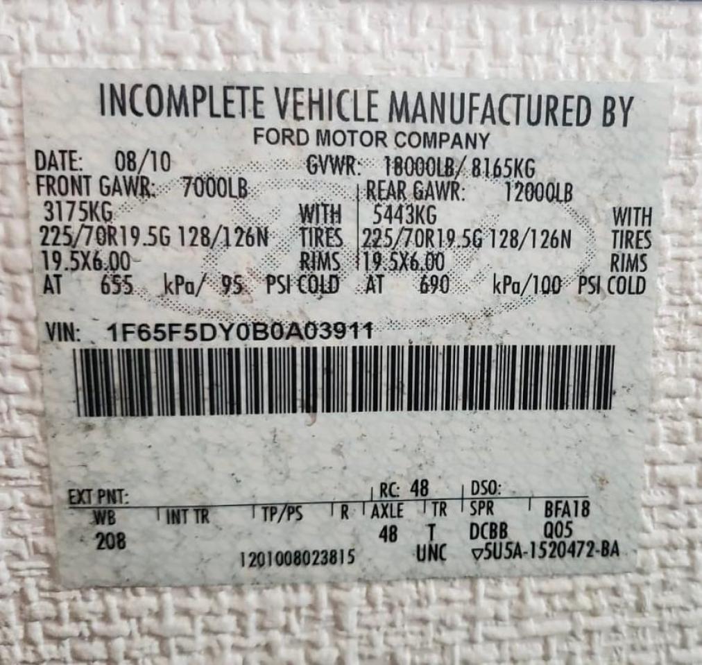 GoodThis is a 2011 FORD F53 RV, showcasing a two-tone exterior. The vehicle is verified as Run & Drive. Damage includes minor dents and scratches, along with normal wear and tear. The vehicle's condition appears well-maintained, with a focus on functionality. Interior photos show a clean and functional space. This RV features a two-tone paint scheme, enhancing its visual appeal. The interior appears clean and well-maintained, suggesting careful ownership. This RV is designed for comfortable travel and living on the road. The vehicle is in drivable condition with no apparent mechanical issues.
