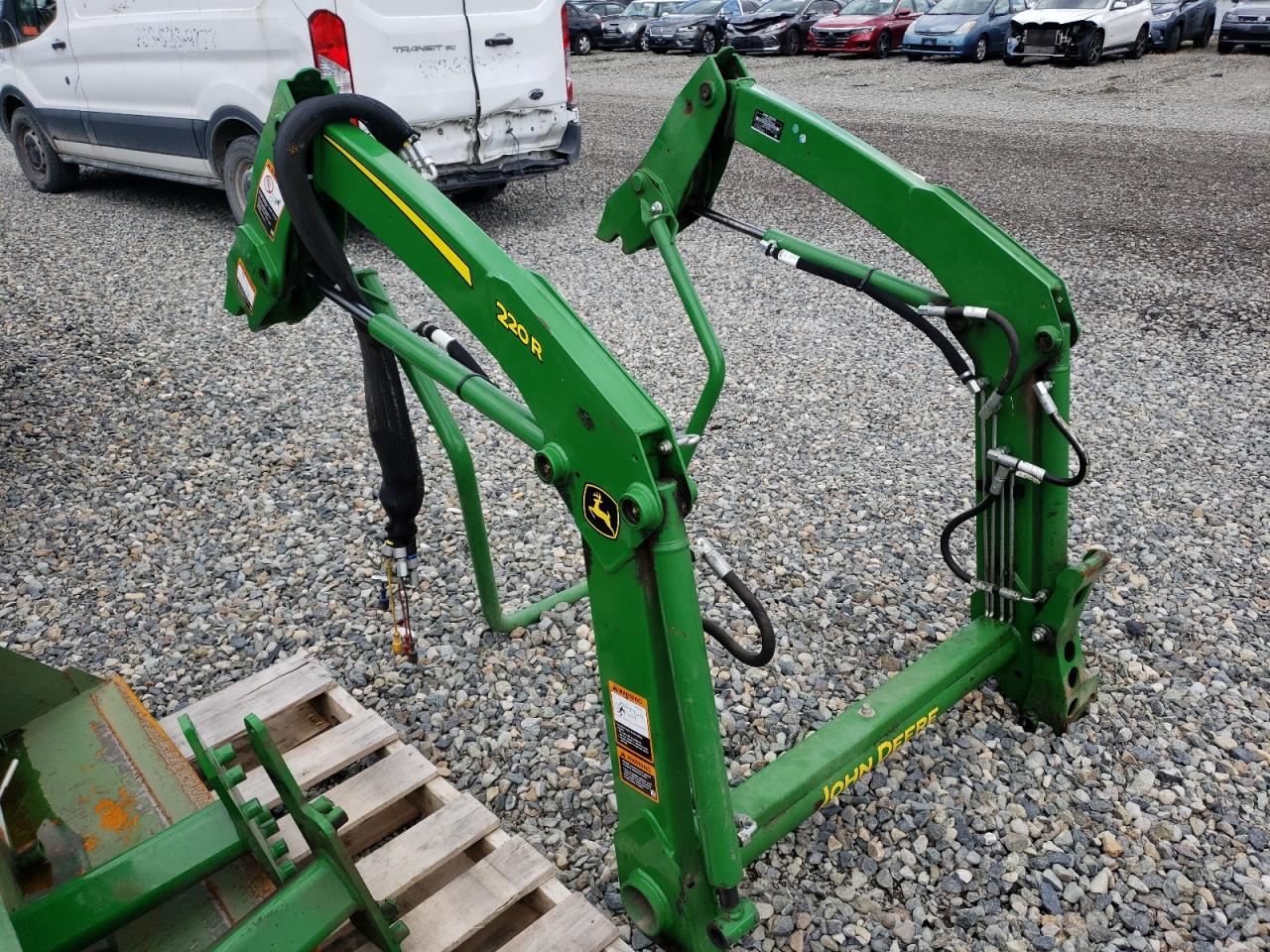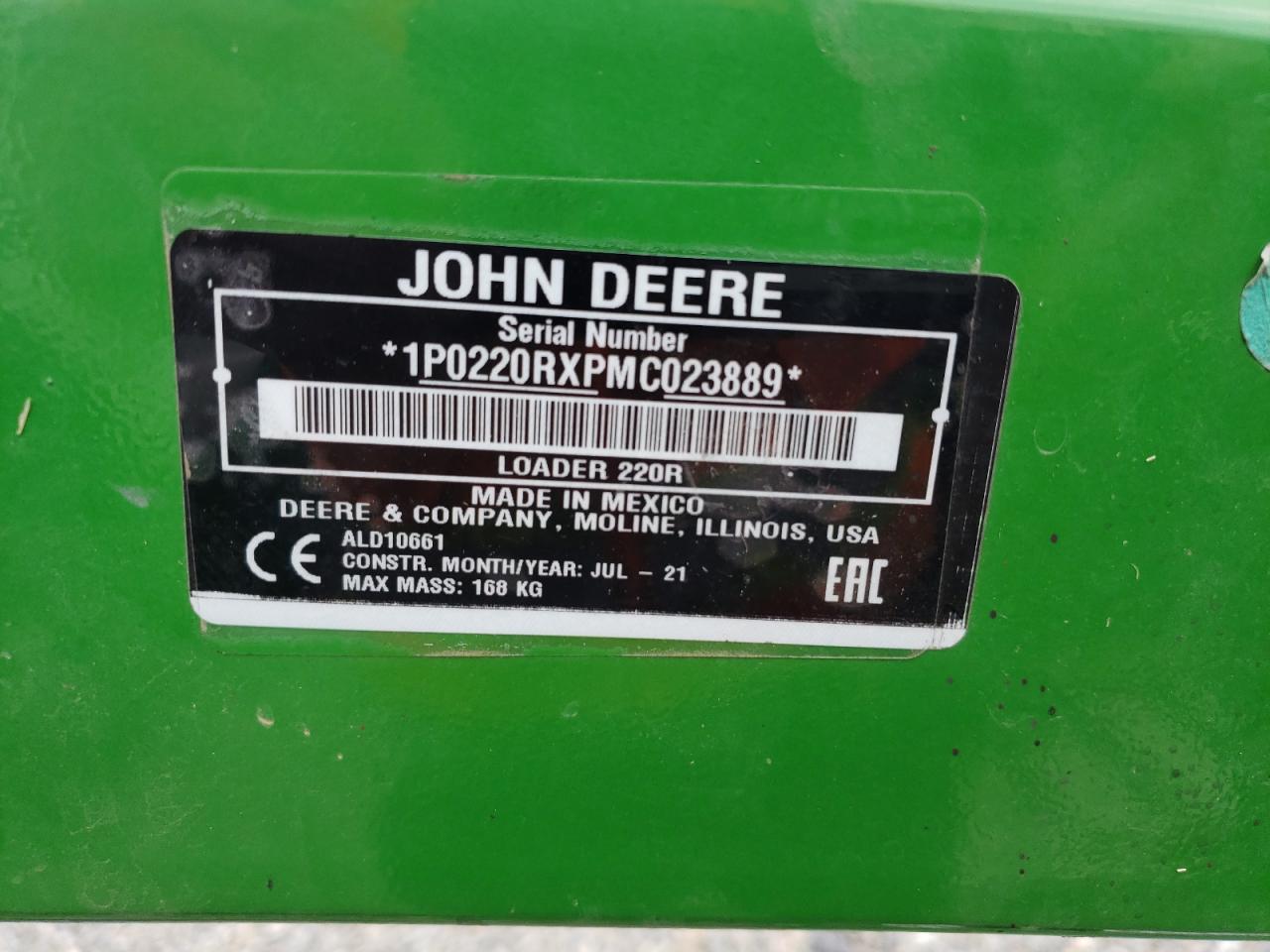GoodThe JOHN DEERE 220R 2021, shows signs of wear and tear with some visible damage. The undercarriage is the primary area of concern. The color of the car is green, and it starts with code DEFAULT. The vehicle is drivable. The interior condition is excellent. The exterior has some damage.