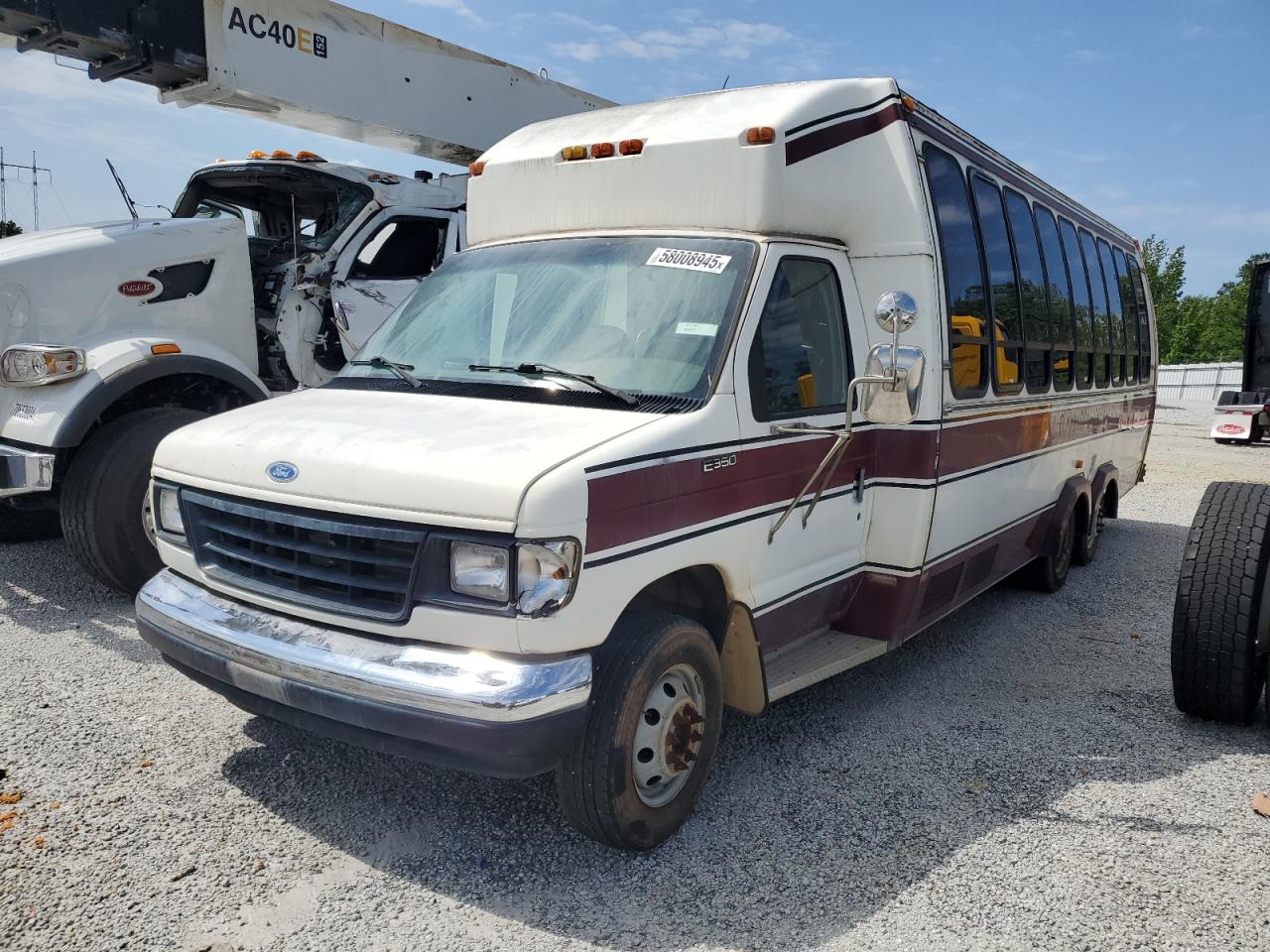 FairThis is a 1994 Ford Econoline bus. The primary damage is to the rear end, with no secondary damage. The car has a two-tone color scheme and has a DEFAULT start code. The vehicle appears to be drivable despite the rear-end damage.
