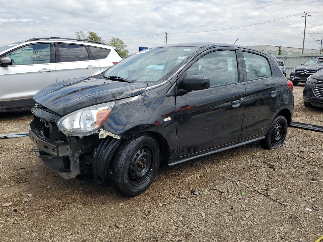FairThis is a 2018 Mitsubishi Mirage ES. The primary damage is to the front end, and secondary damage is on the side. The car is black. The engine starts and drives. The exterior shows moderate damage, including front-end impact and side damage. The interior has minor wear and tear. It needs some repair but is drivable.