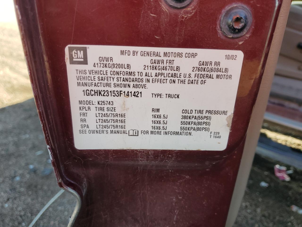 FairThis is a maroon CHEVROLET 2500 HD 2003. The primary damage is to the front end, with no secondary damage. The car's overall condition is fair, with visible damage to the exterior. The interior condition is good.