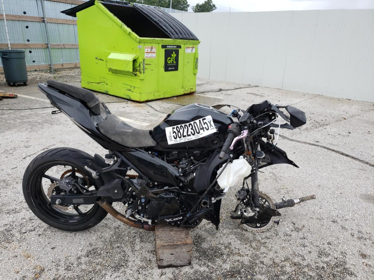 PoorThe KAWASAKI EX400 2018 is a black motorcycle showing significant damage. The primary damage is to the front end, with secondary damage on the side. The motorcycle appears to be in a state of disrepair, likely requiring considerable restoration. Its overall condition suggests it is not drivable and in poor condition.