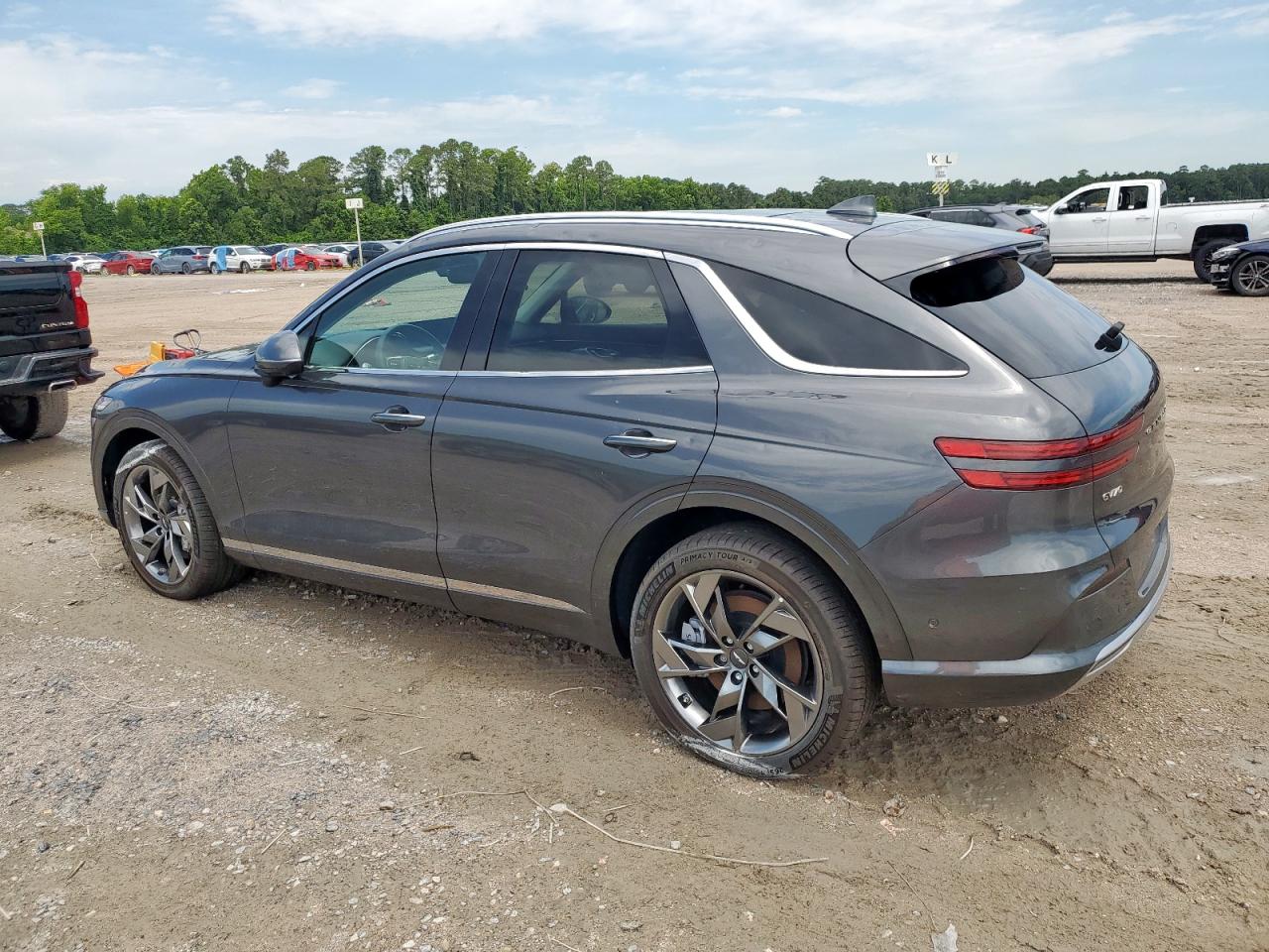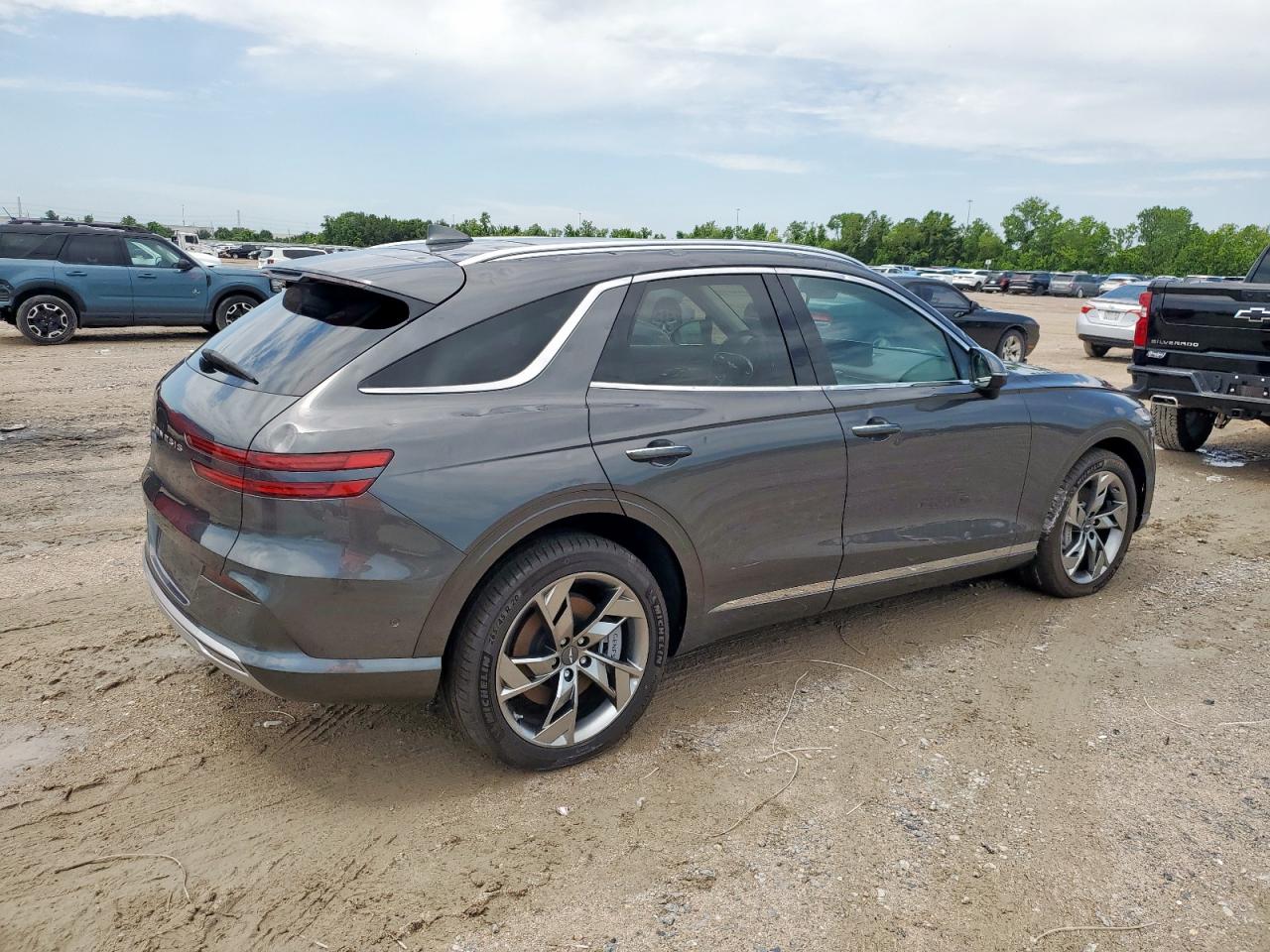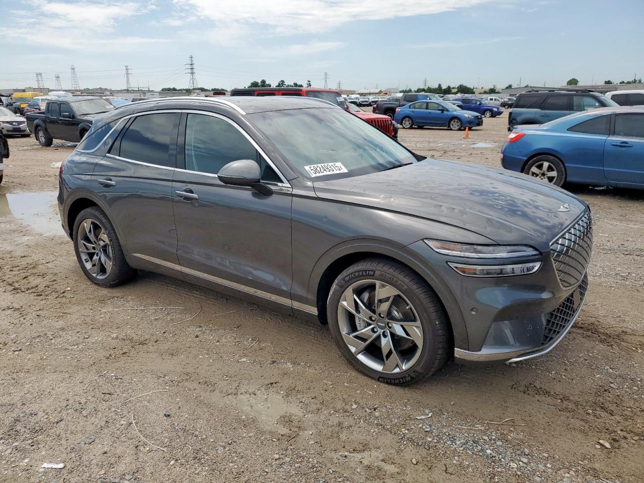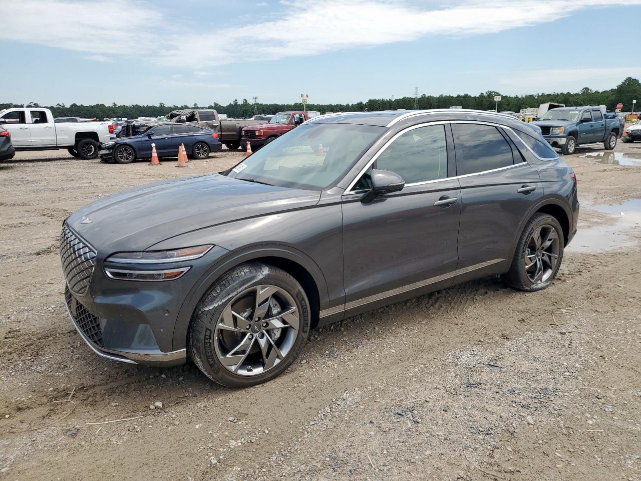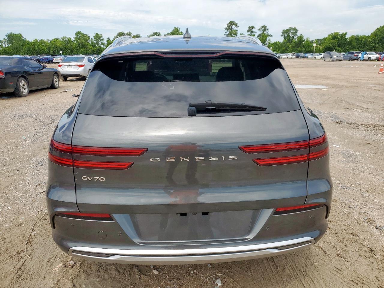 GoodThis is a 2023 GENESIS GV70 BASE in gray. The primary damage is HAIL with no secondary damage. The vehicle's body shows damage, and it appears drivable. The interior condition is very good. Damage Assessment: The car has sustained hail damage. The wheels, lights, and glasses appear to be in good condition. The interior shows minimal wear and tear. Damage Summary: GENESIS GV70 BASE 2023 with hail damage, body damage, in drivable state. Cosmetic issues, requiring some repair. Overall exterior condition is good, the interior is in very good shape, and the overall state is fair. No airbag deployment is visible.