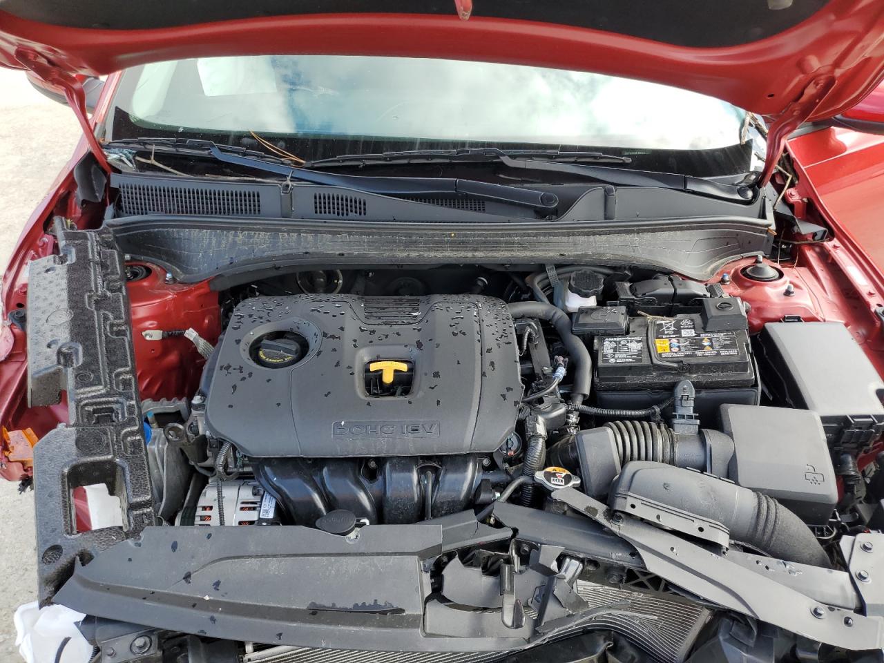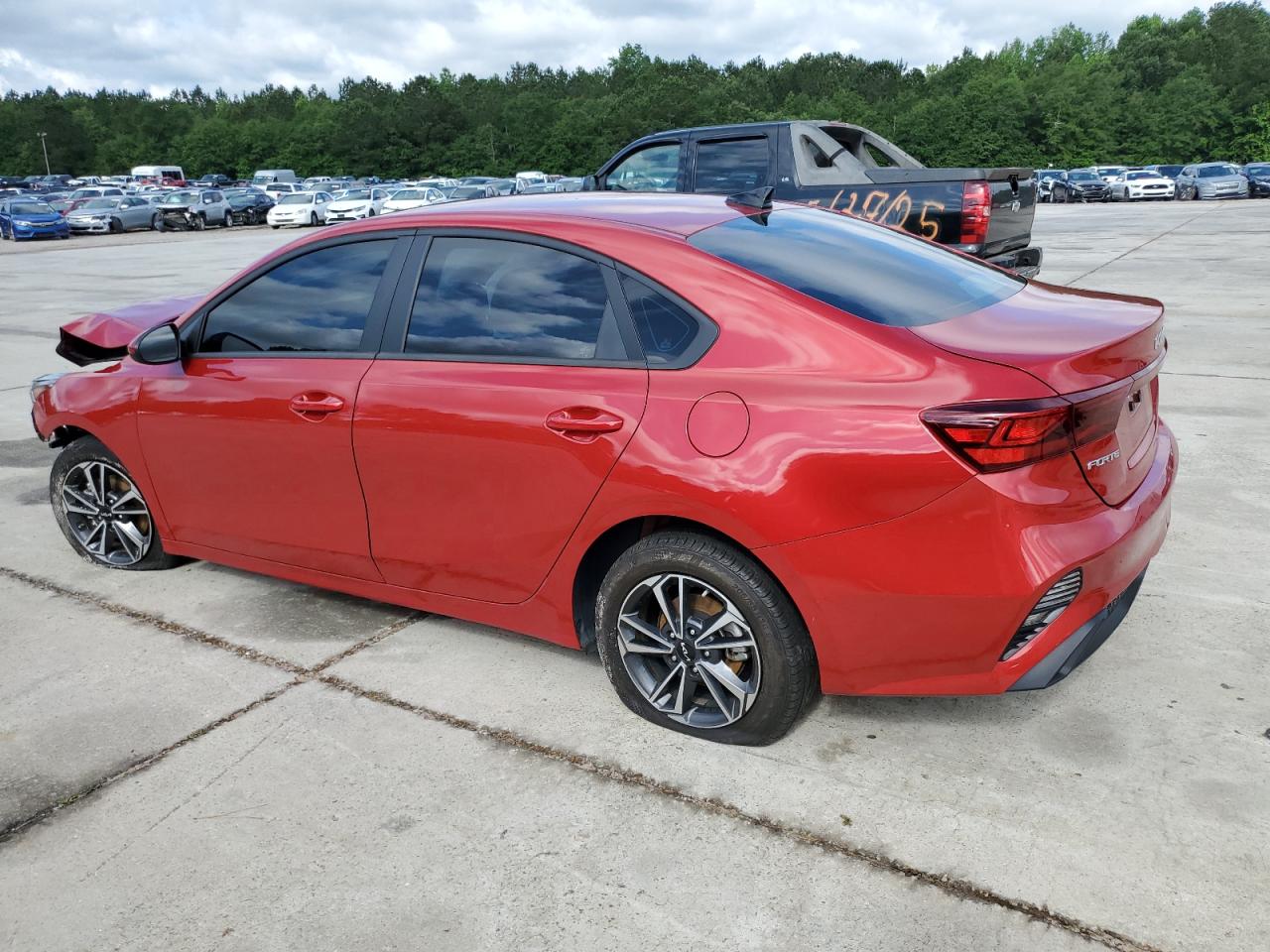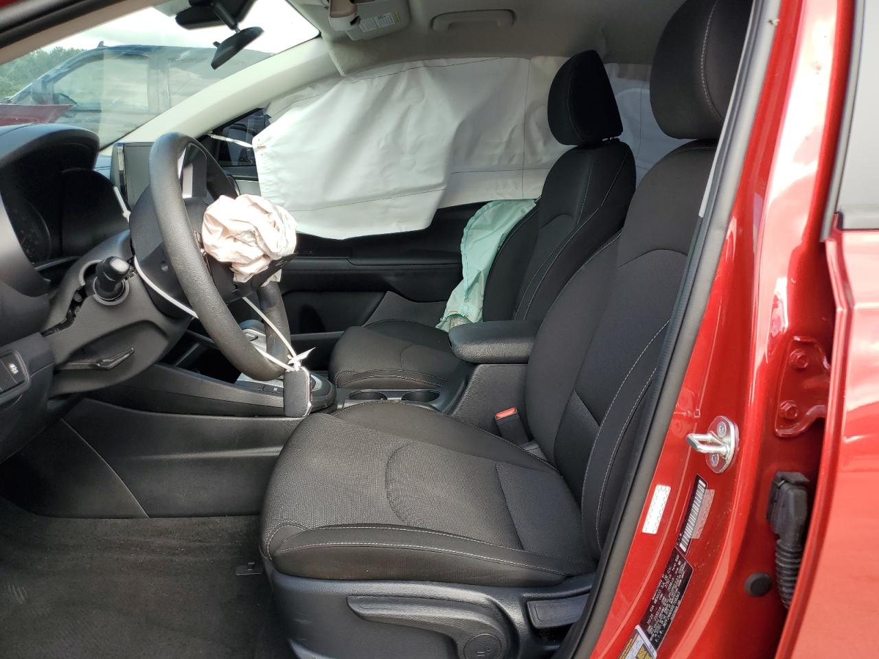 FairThis is a red 2024 KIA FORTE LX. The car's front end shows significant damage, indicating a collision. The airbags have deployed. The vehicle starts and runs, as indicated by the Run & Drive Verified status.