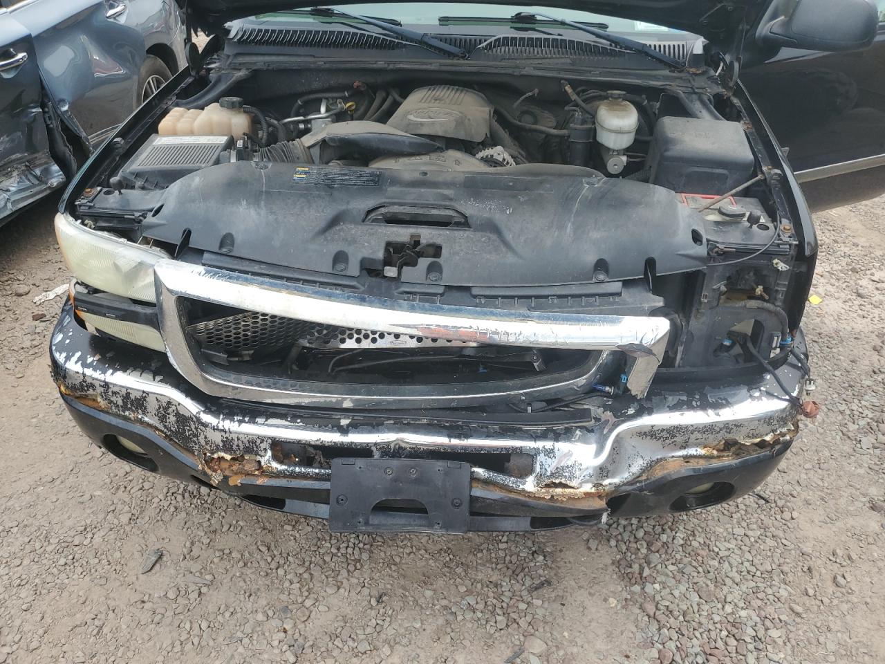 FairThe 2004 GMC Sierra is a black pickup truck with visible damage. It exhibits mechanical issues, but it starts. The exterior has significant damage, particularly to the front and rear body panels, and is in fair condition. The interior also shows wear and tear, with noticeable damage, and is in fair condition. The car's overall state is poor, requiring considerable repair and is not drivable. There is visible damage to the front lights and missing parts in the front. The wheels appear to be in okay condition.