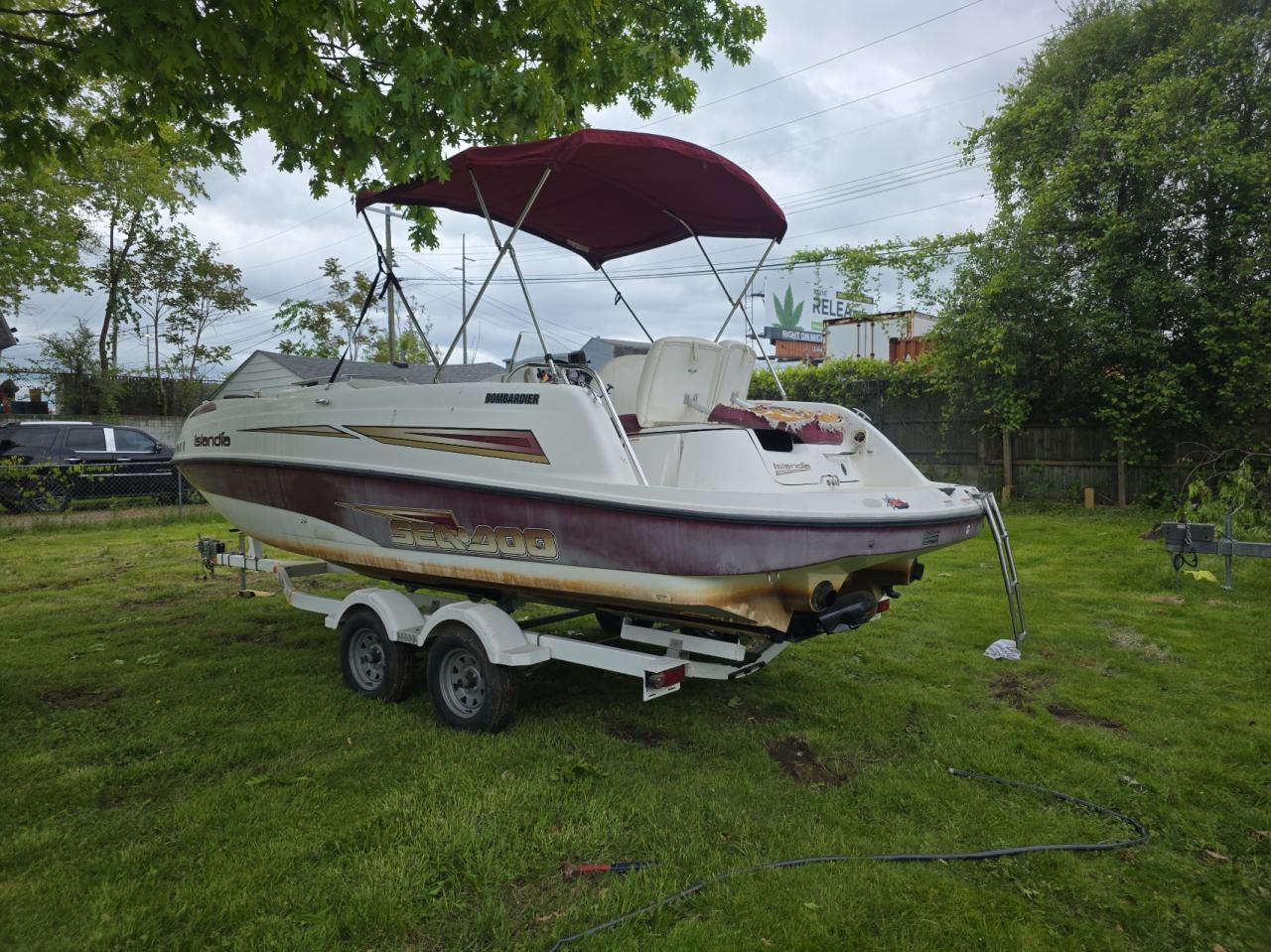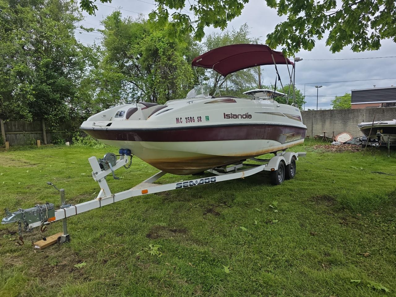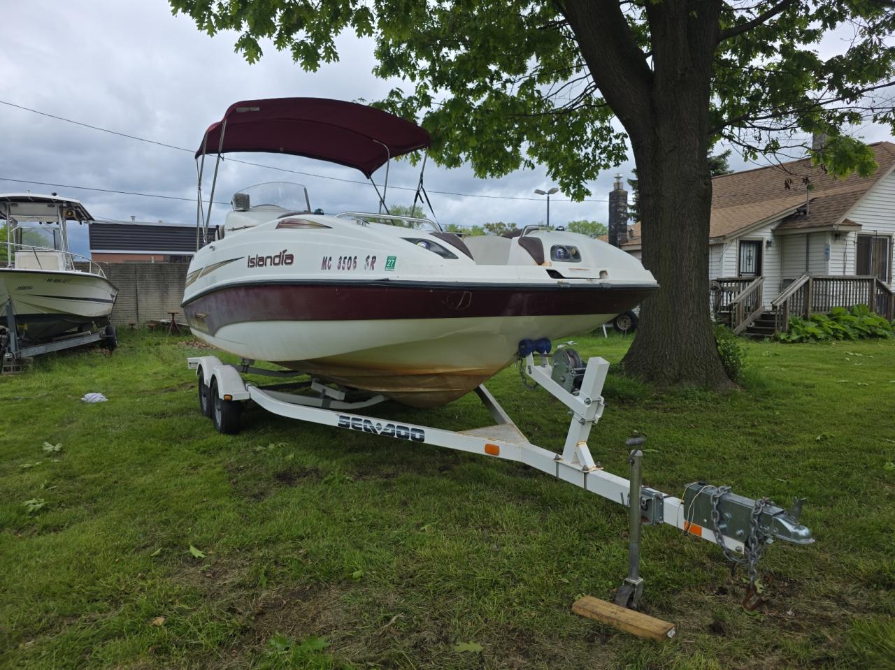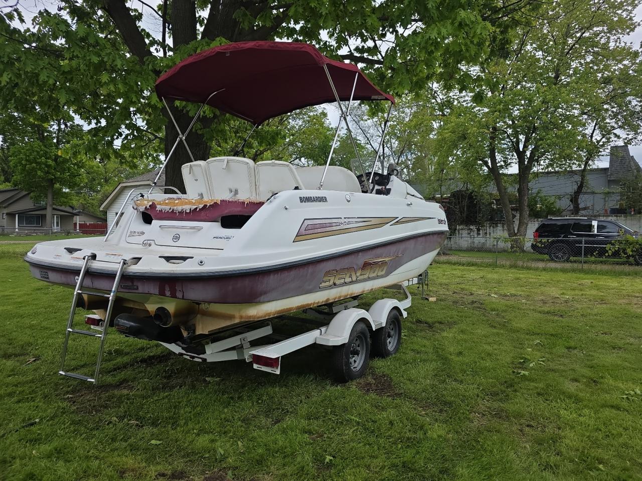 The boat has minor scratches and wear and tear. The interior shows some stains. Wheels and lights are in good condition.