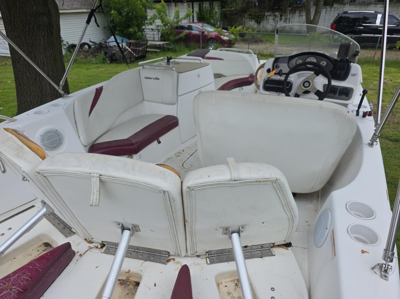 GoodThis is a 2004 boat with white exterior, the boat shows signs of wear and tear. Minor dents and scratches are visible. The boat is in good condition and drivable. The interior also shows signs of use.