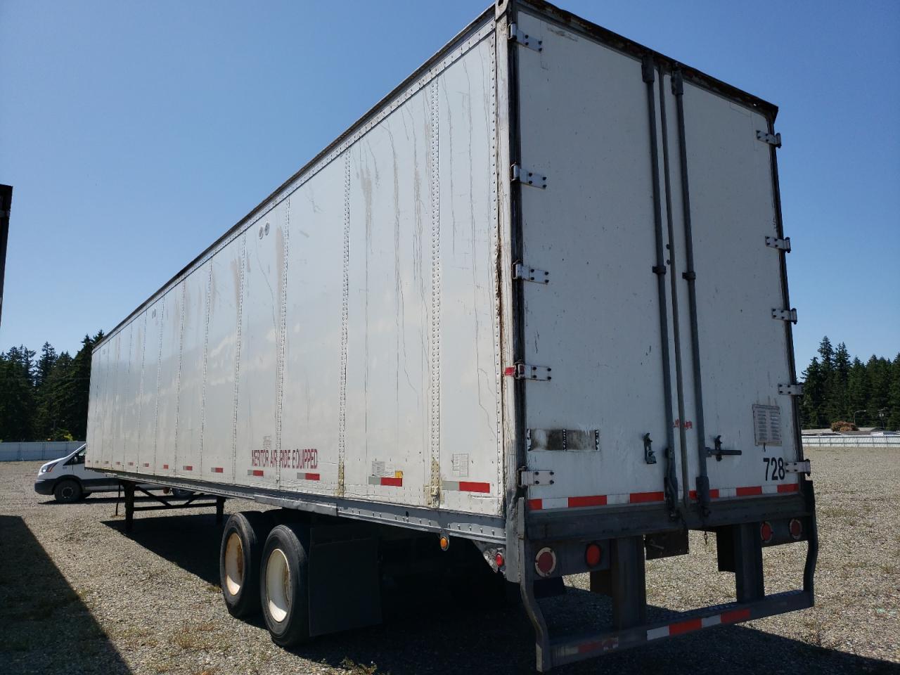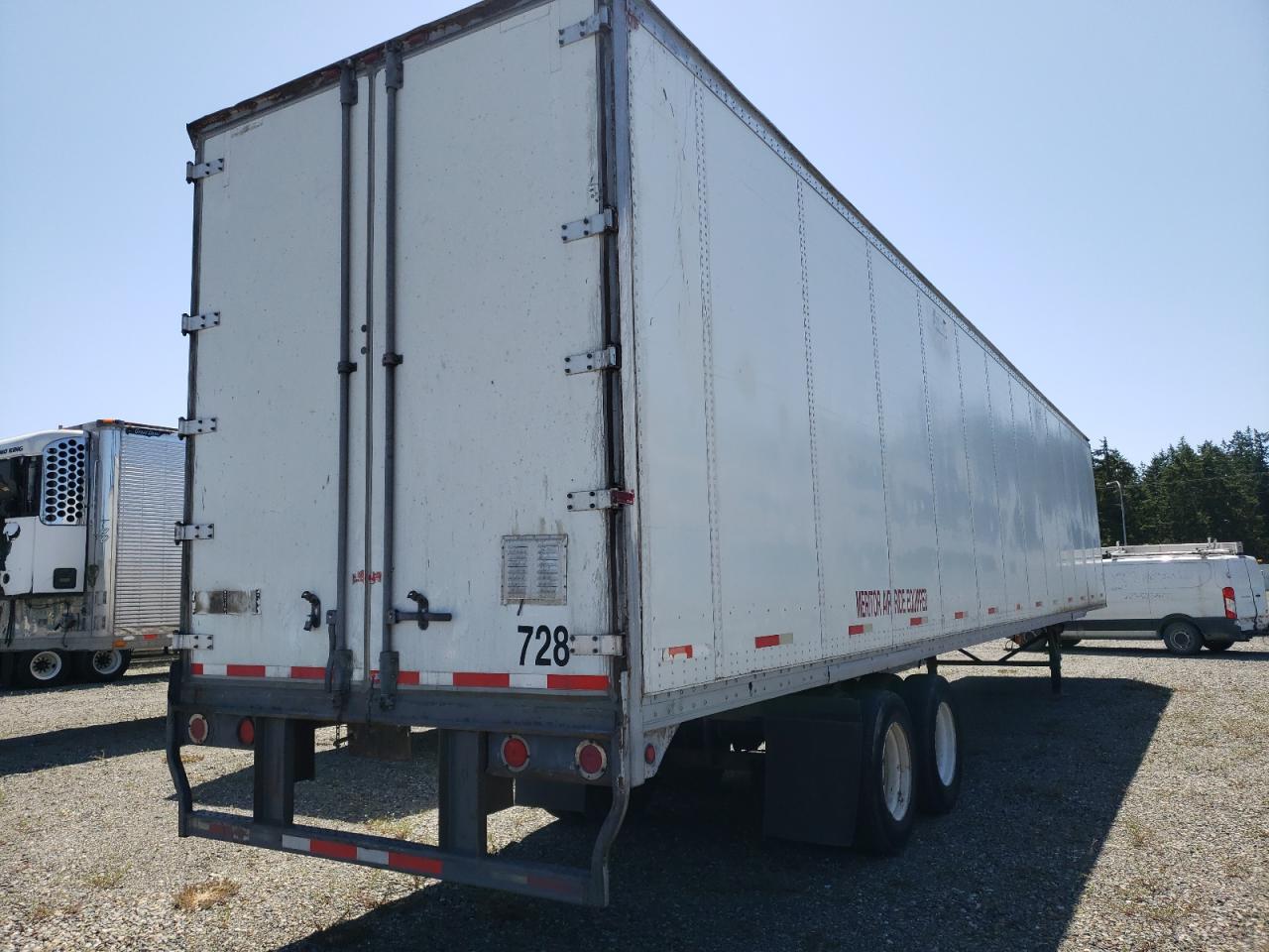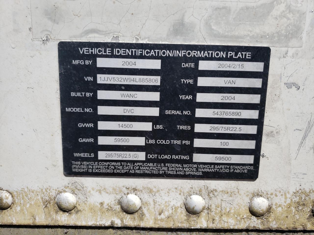 GoodThe WANC VAN 2004 appears to have rear-end damage. The vehicle is white. The trailer's interior seems to be in relatively good condition. The exterior shows moderate wear and tear consistent with its age.
