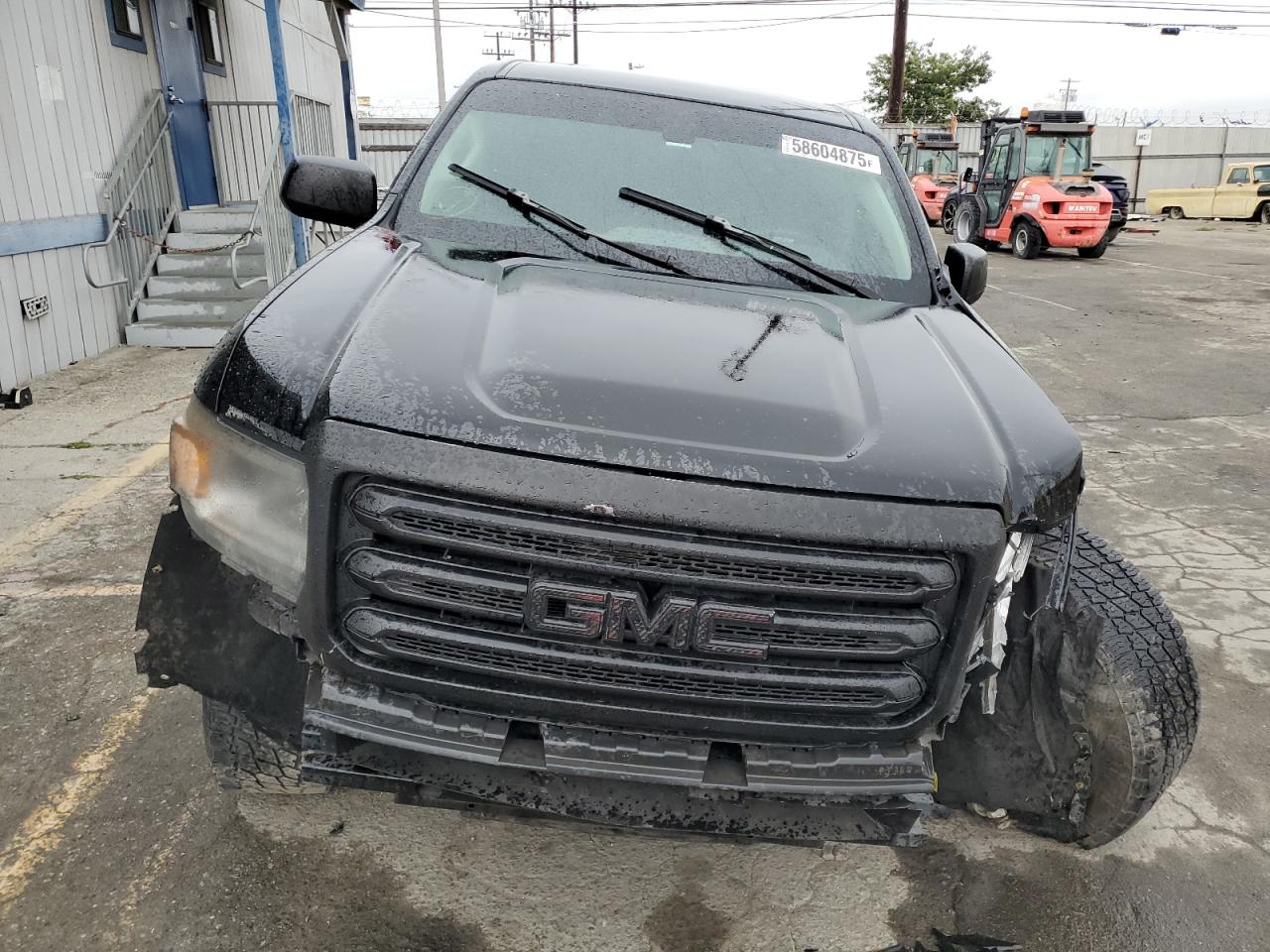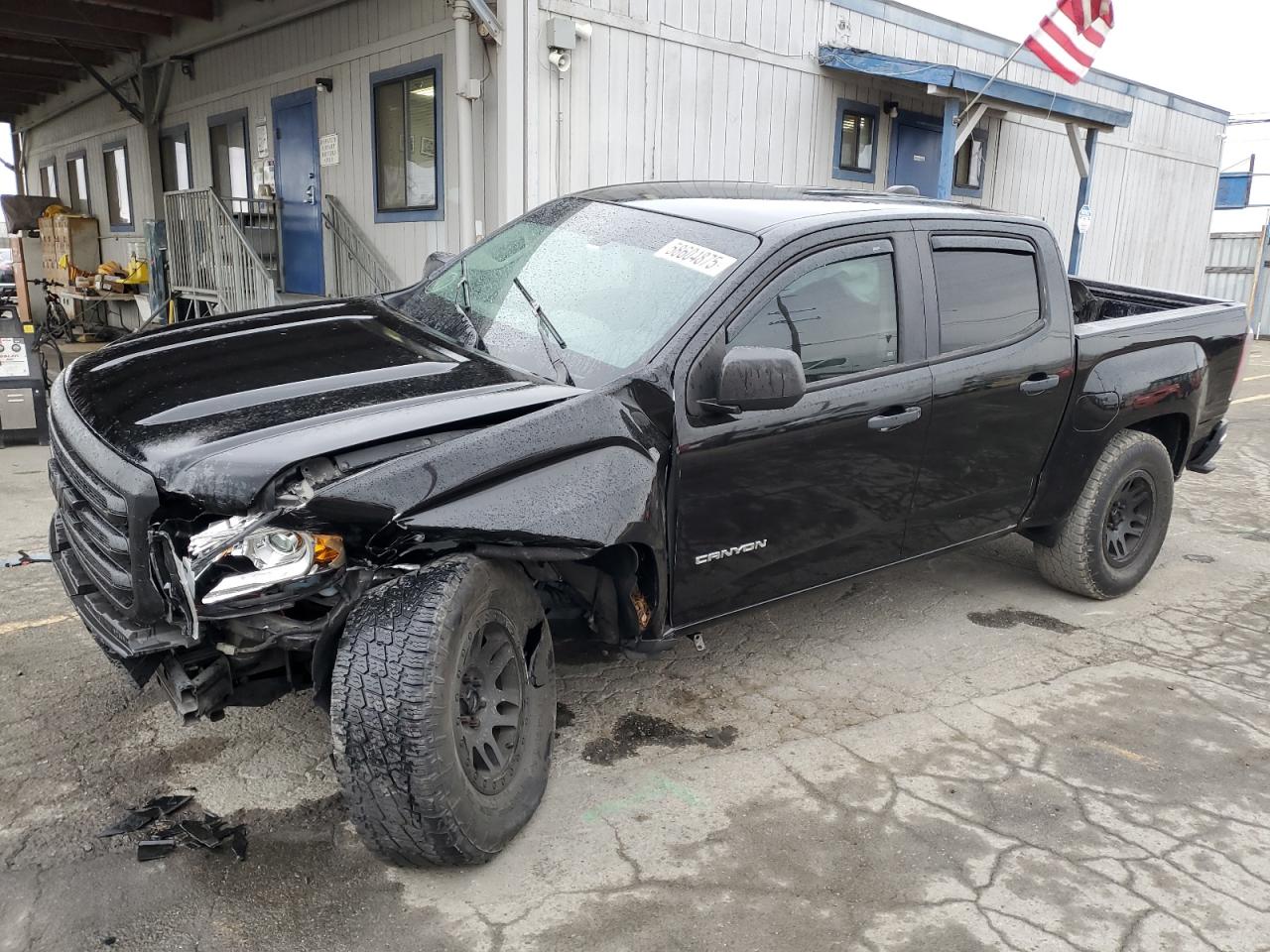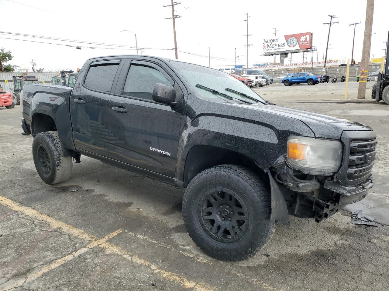 FairThe 2016 GMC Canyon is black and has suffered front-end damage, indicated by the visible crumpling of the front panels and the bent wheel. The vehicle is listed as 'Run & Drive Verified', suggesting it is still operational despite the front-end collision. Interior images reveal deployed airbags and other signs of impact. The vehicle's condition is categorized based on damage and functionality.