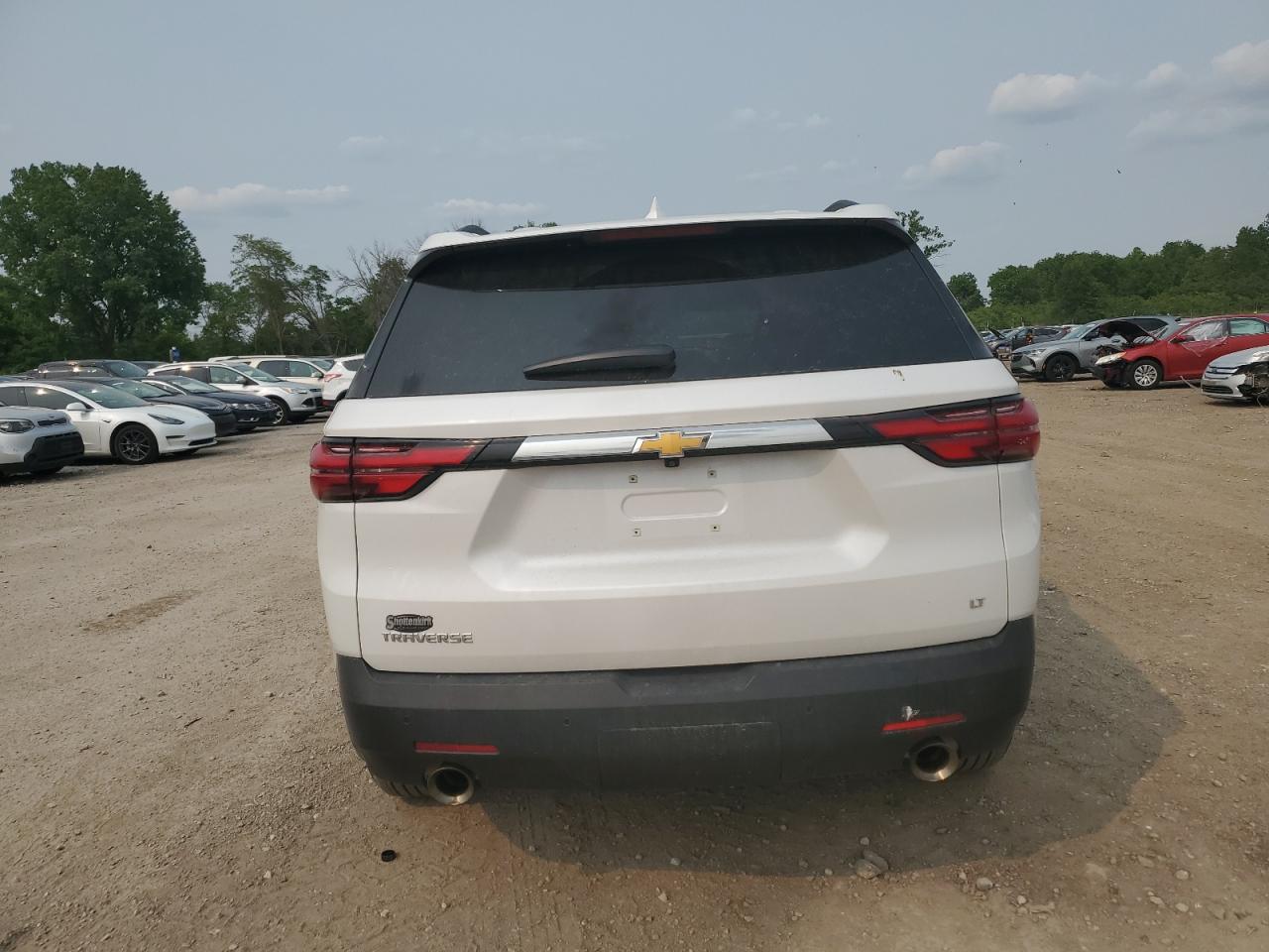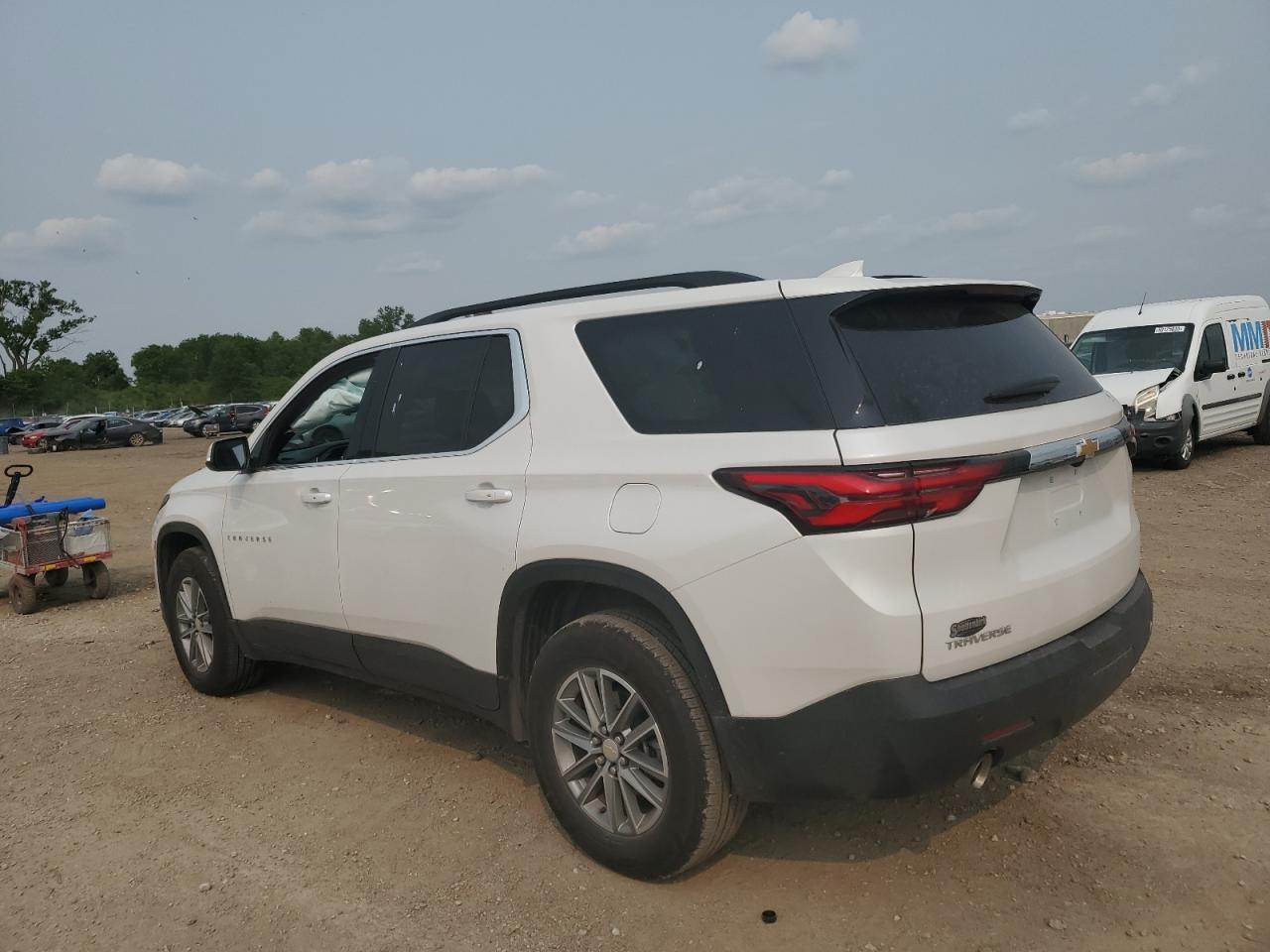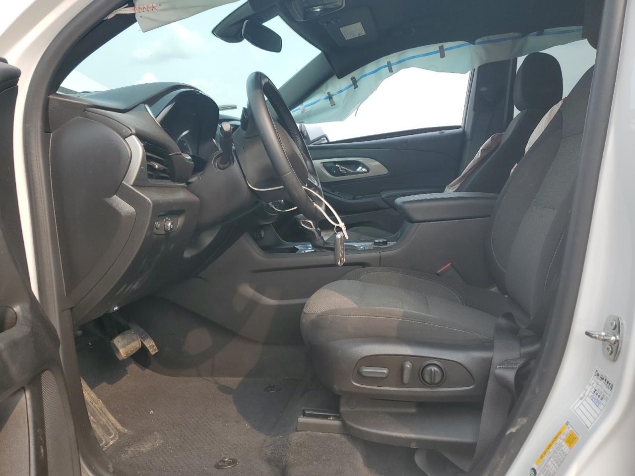 FairWhite 2023 CHEVROLET TRAVERSE L with side damage, Run & Drive Verified status. The vehicle's exterior shows significant damage to the side, but the interior appears to be in good condition. The vehicle is drivable. The wheels and lights appear to be intact. The car requires considerable repair. This SUV is in fair overall condition due to the body damage. The starting code is Run & Drive Verified.