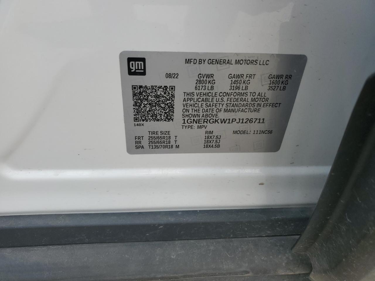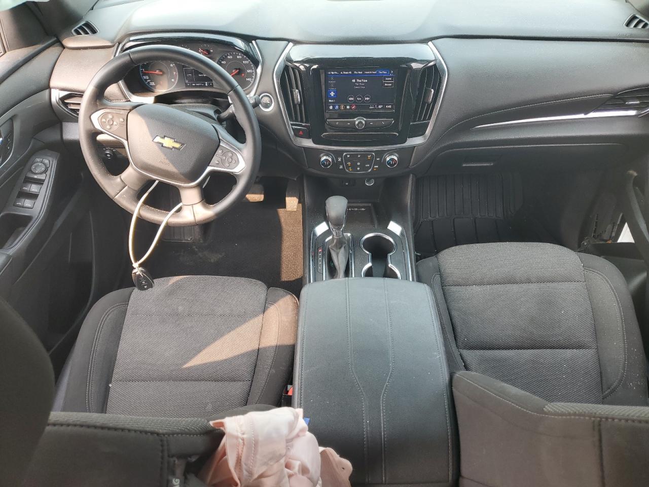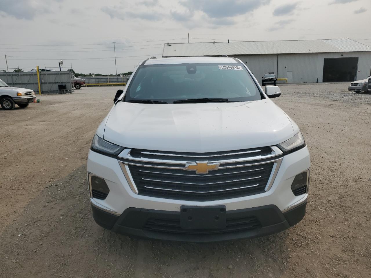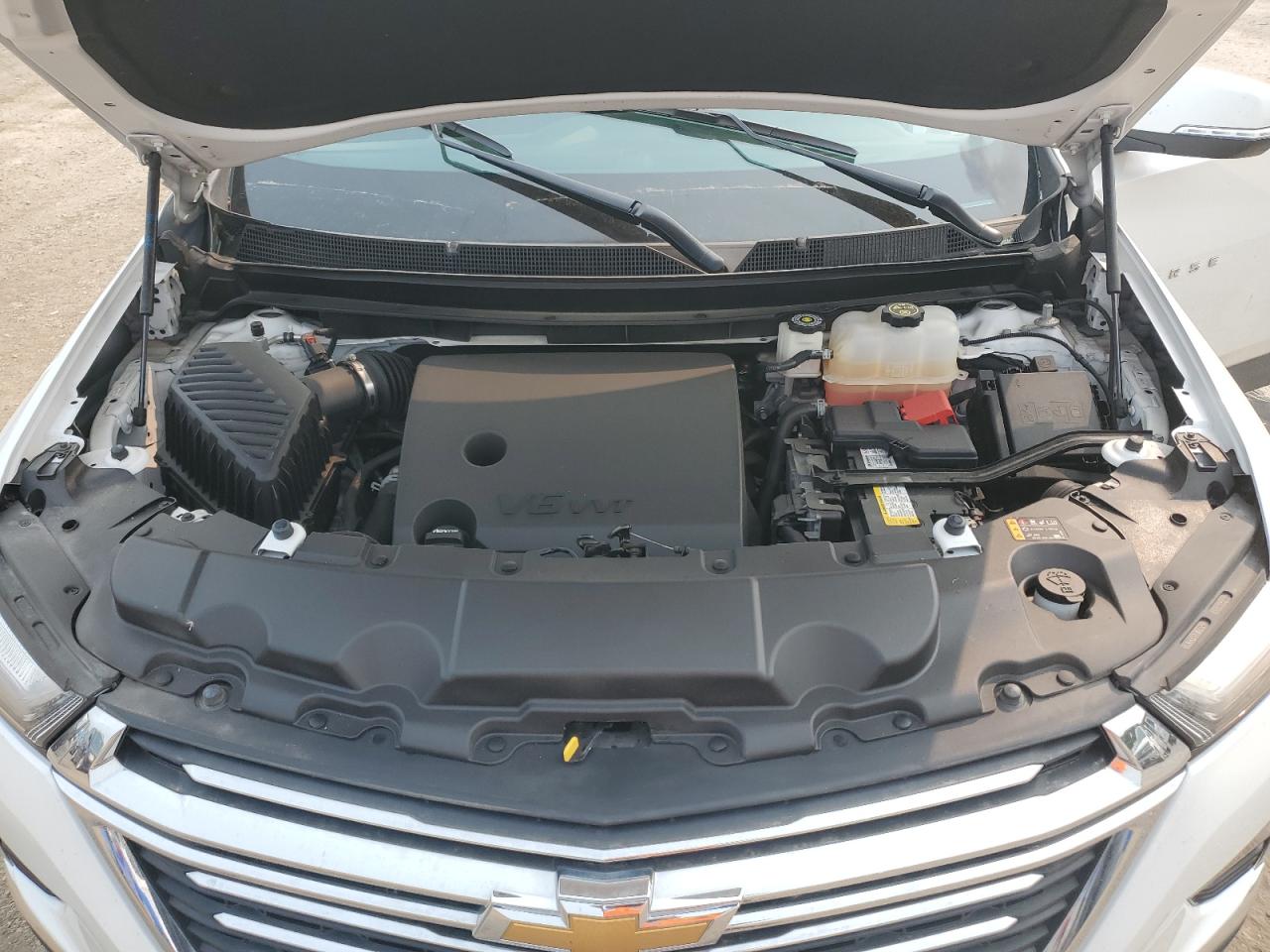 FairWhite 2023 CHEVROLET TRAVERSE L with side damage, Run & Drive Verified status. The vehicle's exterior shows significant damage to the side, but the interior appears to be in good condition. The vehicle is drivable. The wheels and lights appear to be intact. The car requires considerable repair. This SUV is in fair overall condition due to the body damage. The starting code is Run & Drive Verified.