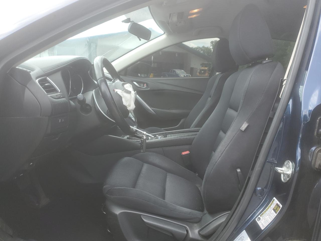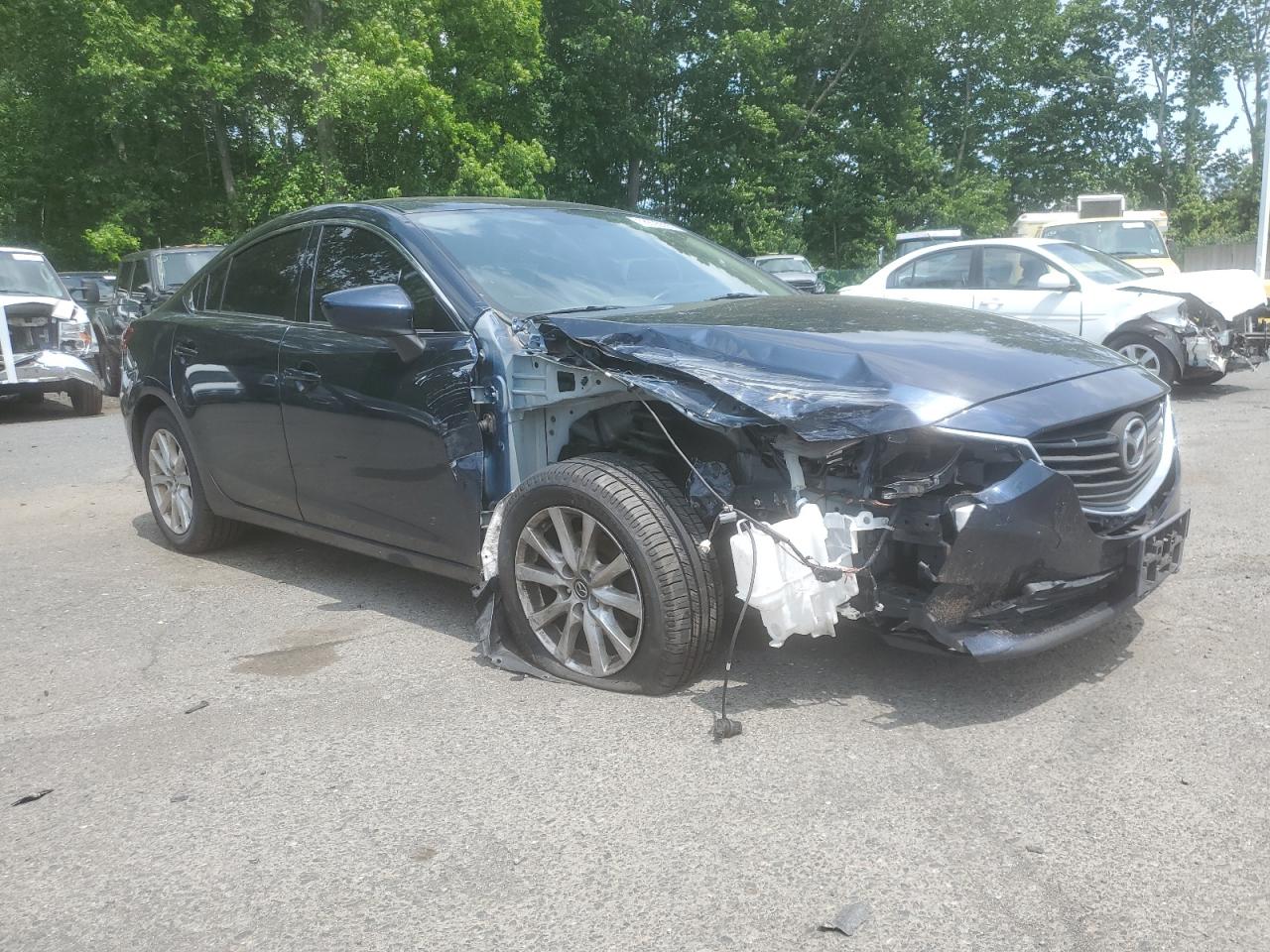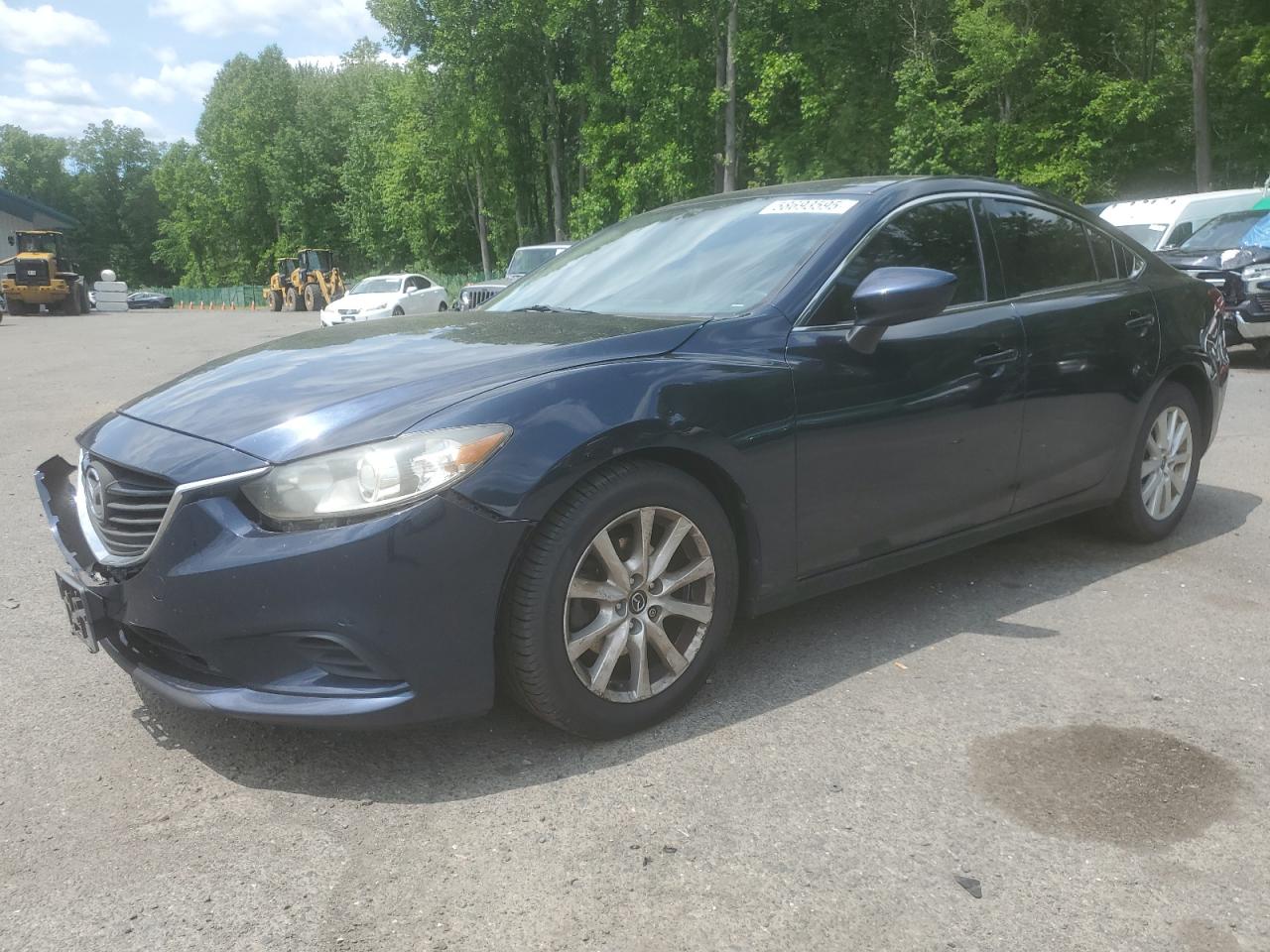 FairMAZDA 6 SPORT 2016, blue, with front-end damage, minor dents and scratches. The vehicle is a Run & Drive Verified. The car's exterior shows significant damage, primarily to the front end. The interior appears to be in relatively good condition. The airbags are deployed.