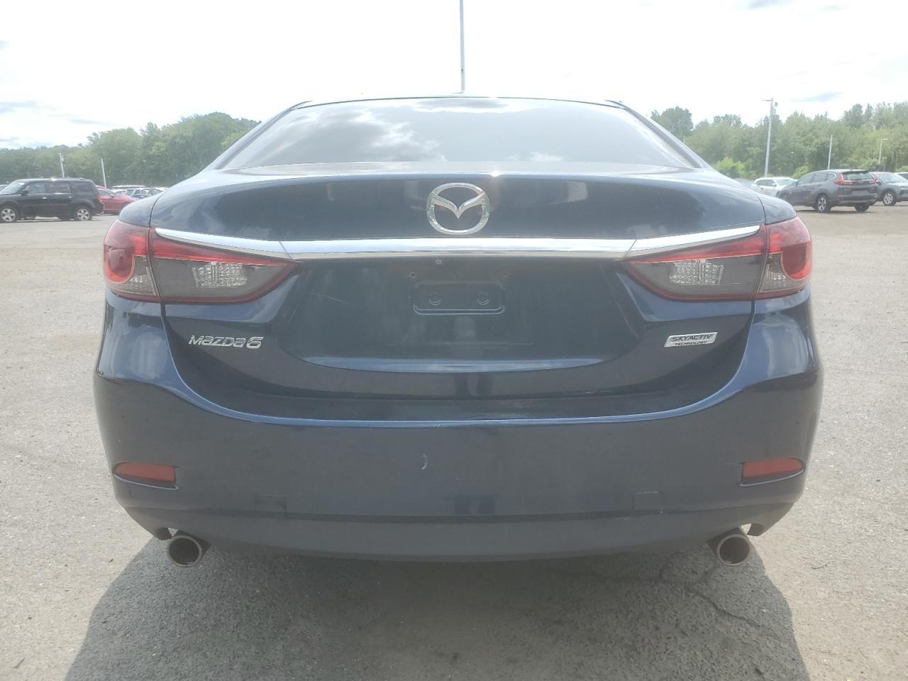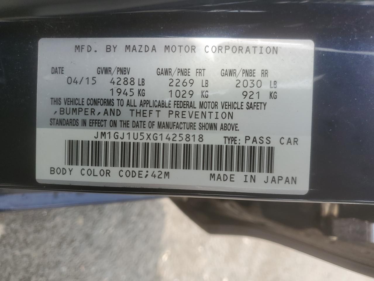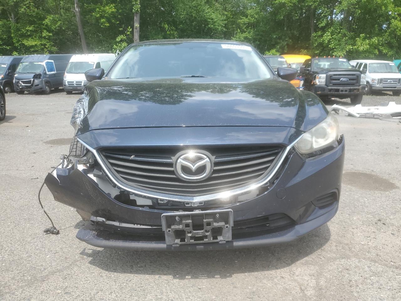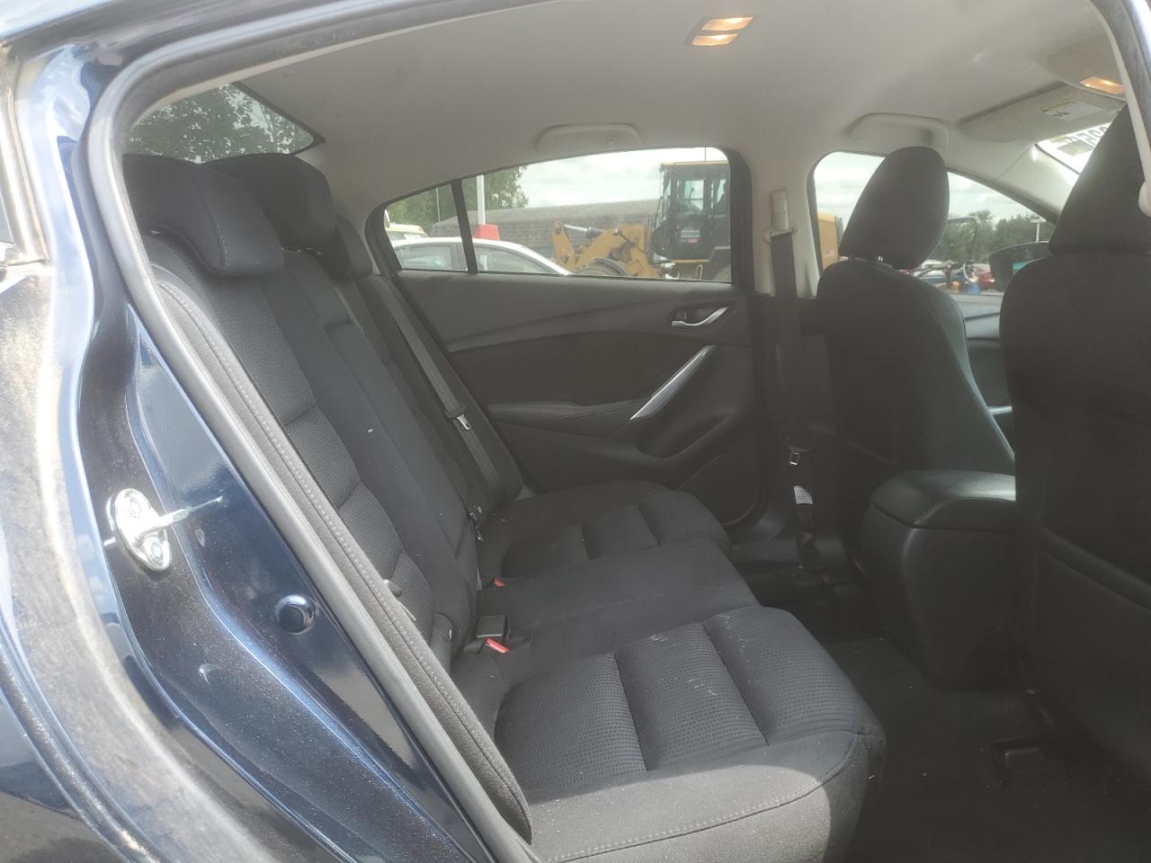 FairMAZDA 6 SPORT 2016, blue, with front-end damage, minor dents and scratches. The vehicle is a Run & Drive Verified. The car's exterior shows significant damage, primarily to the front end. The interior appears to be in relatively good condition. The airbags are deployed.