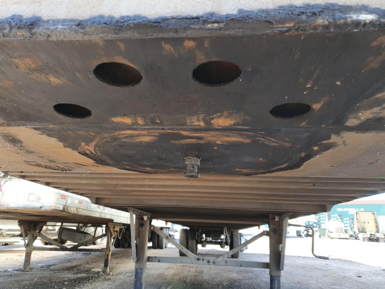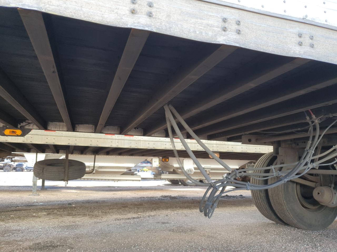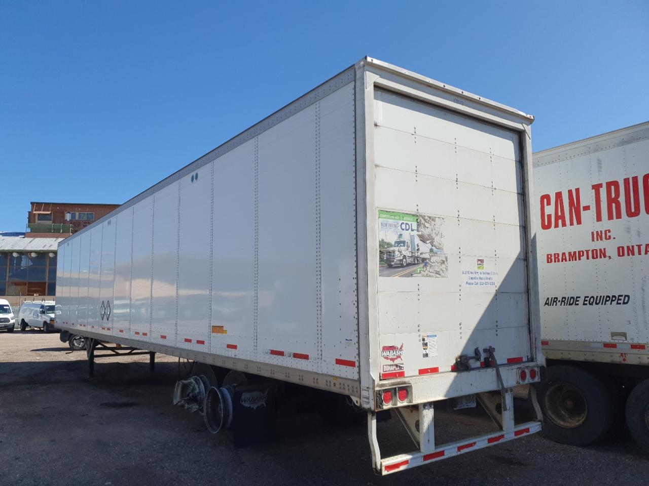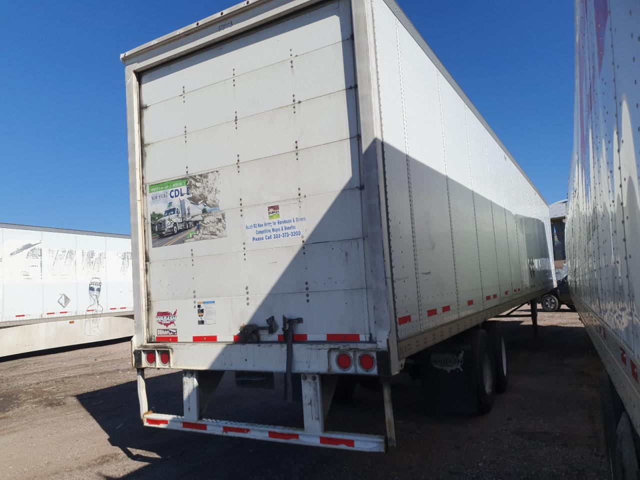 The trailer exhibits side body damage. The wheels are damaged, requiring potential repair or replacement. The exterior condition is fair, indicating some degree of damage.